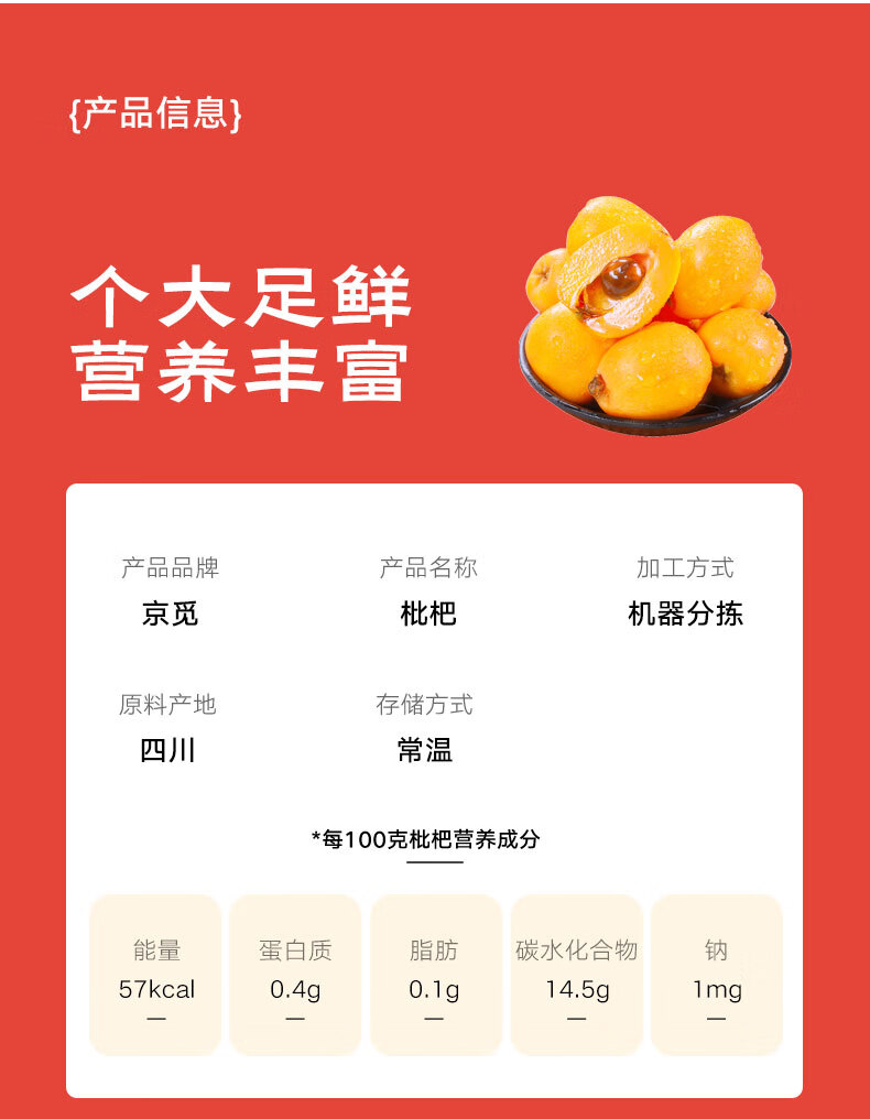 京觅四川米易枇杷新鲜水果当季甜枇杷净重2斤单果20g+源头直发包邮