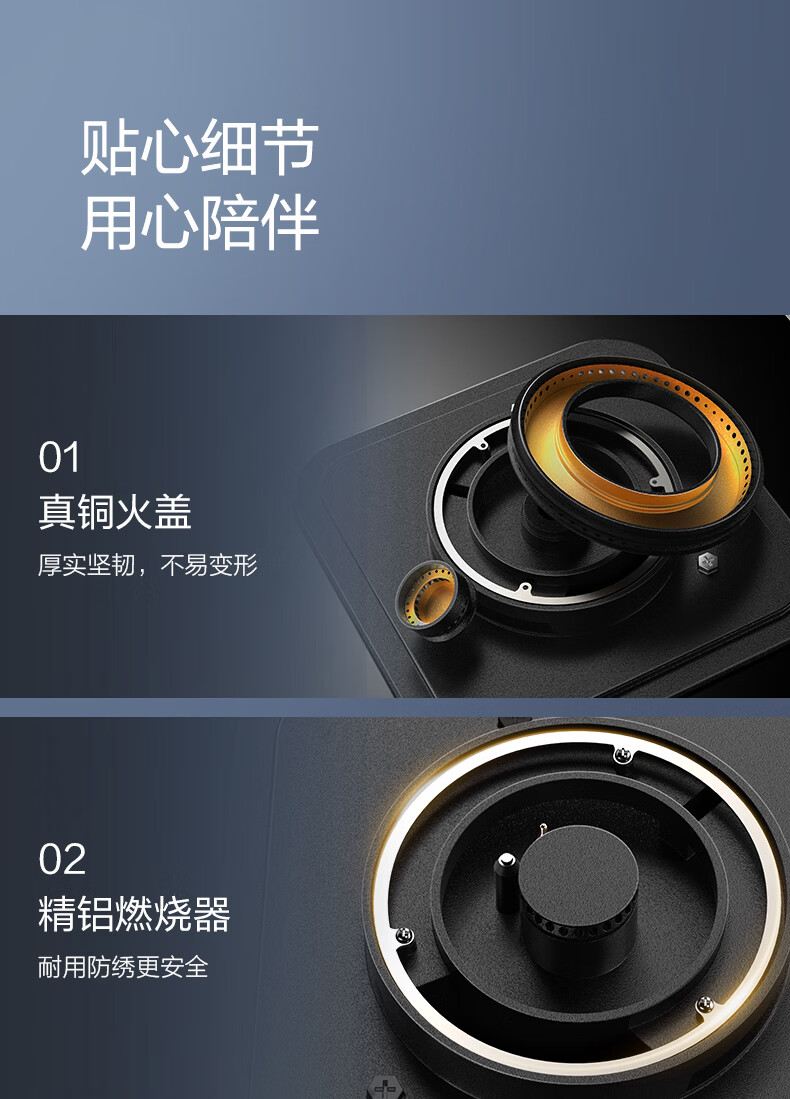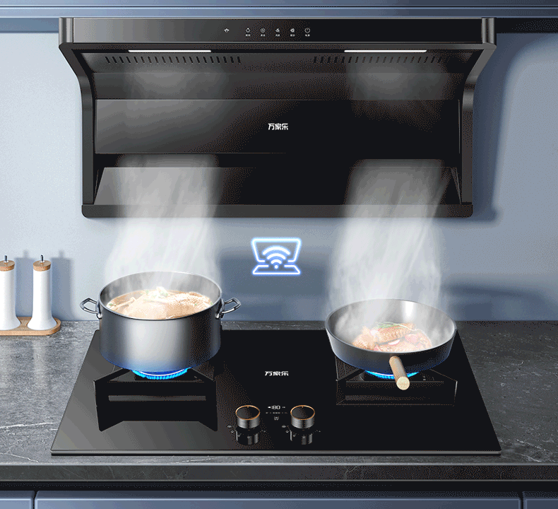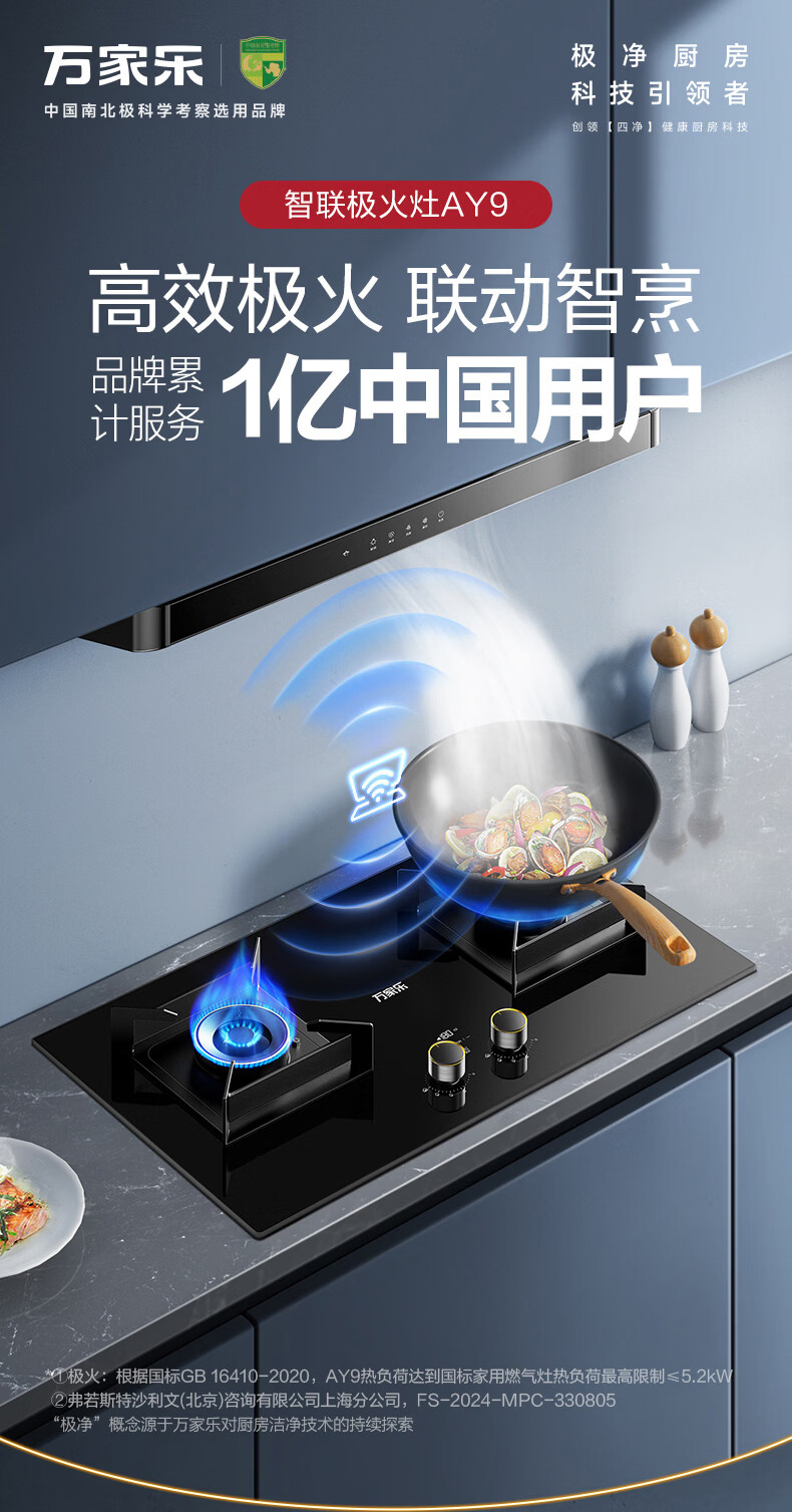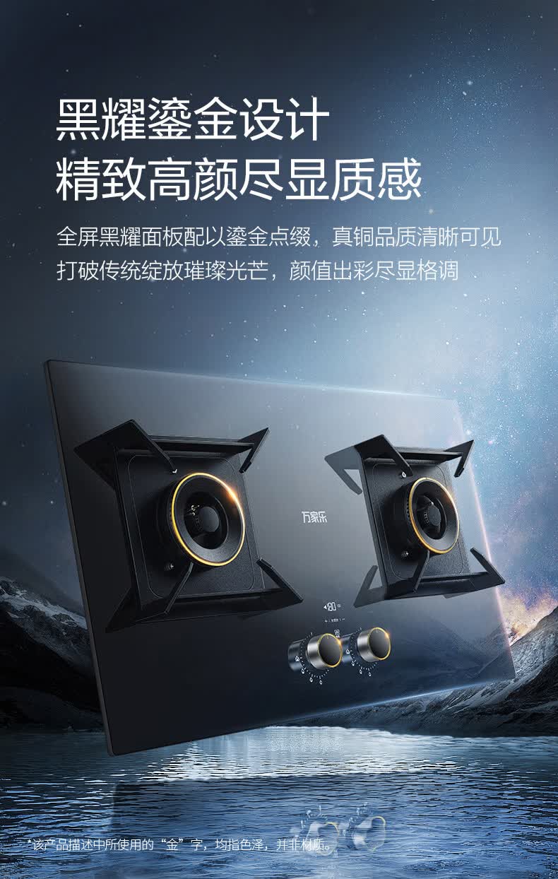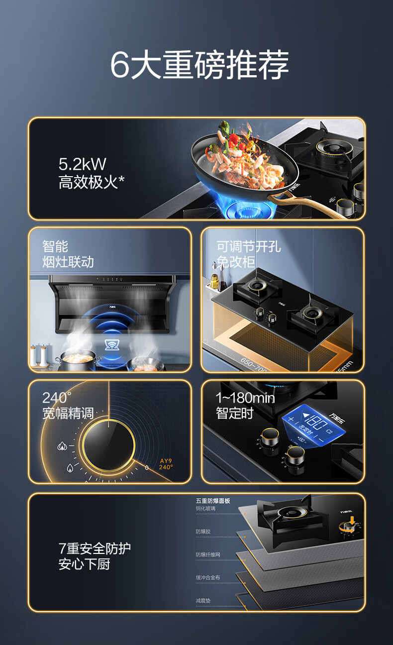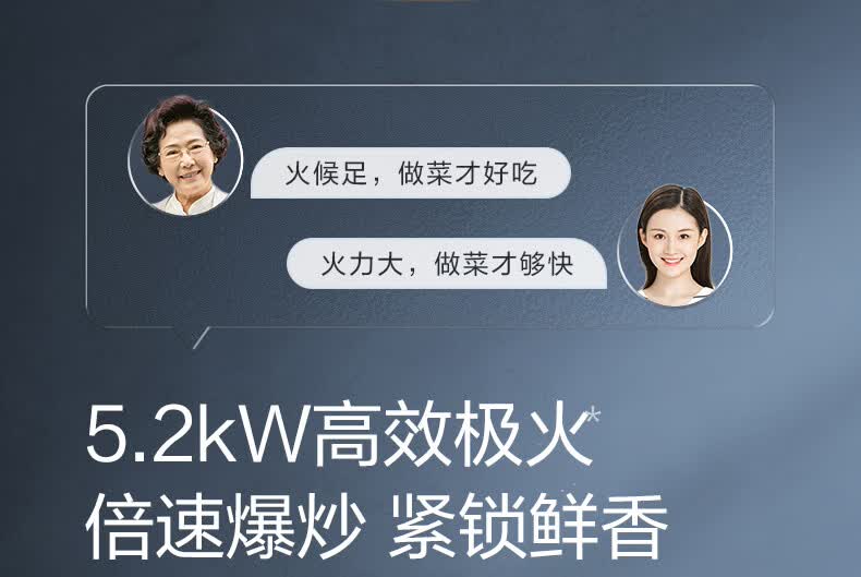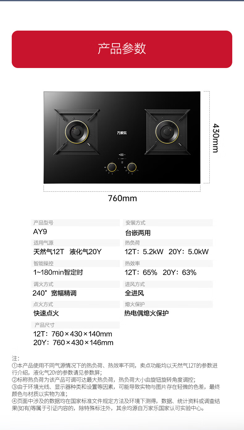 万家乐燃气灶【小鲸喜AY9】180min定时灶 5.2kw大火力嵌入式台式两用灶 全进风烟灶联动智能定时天然气灶