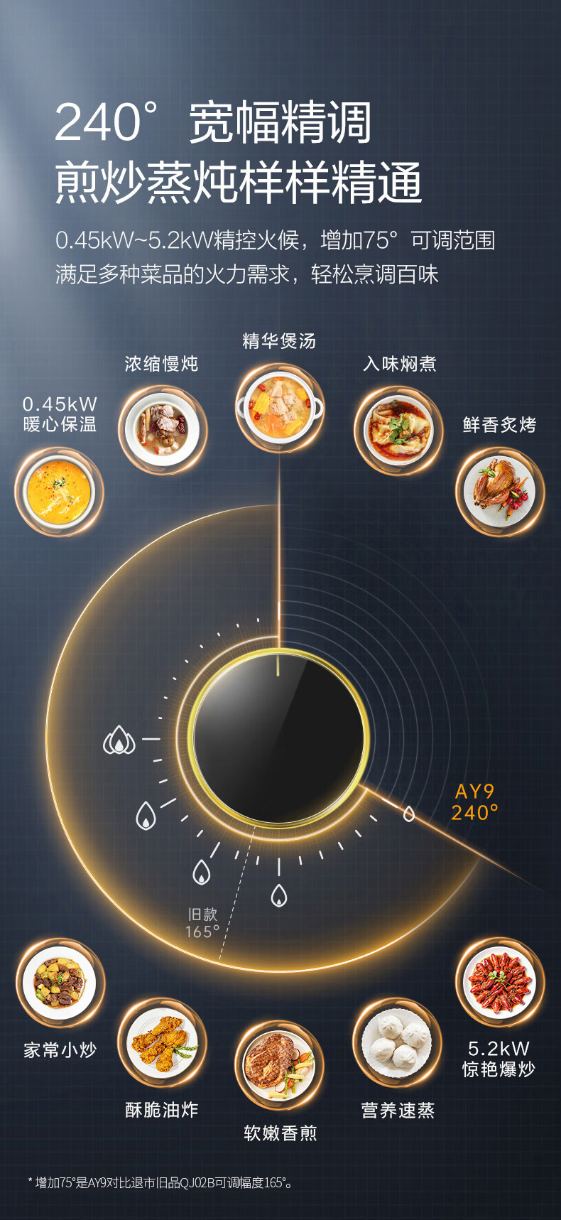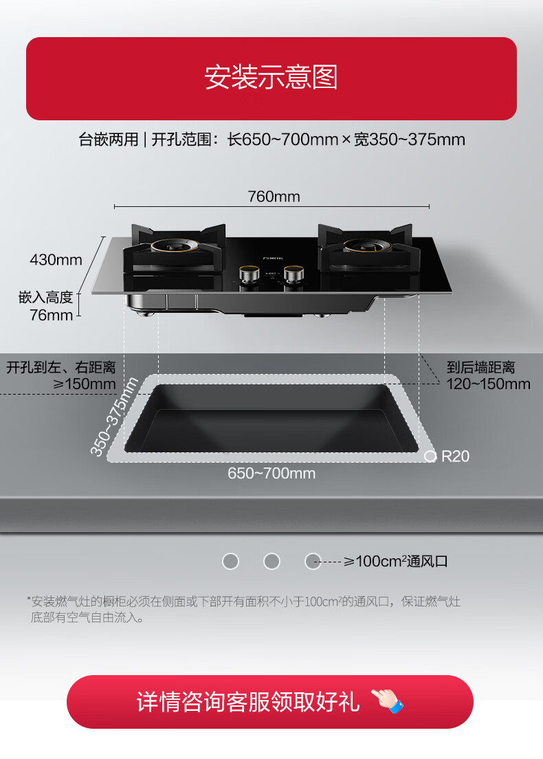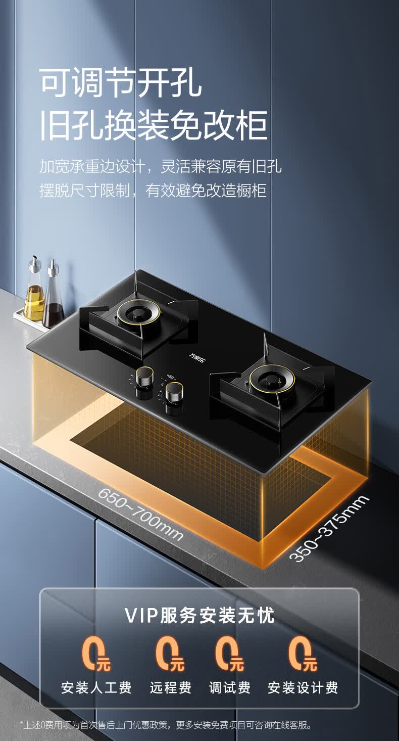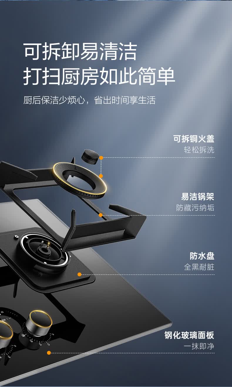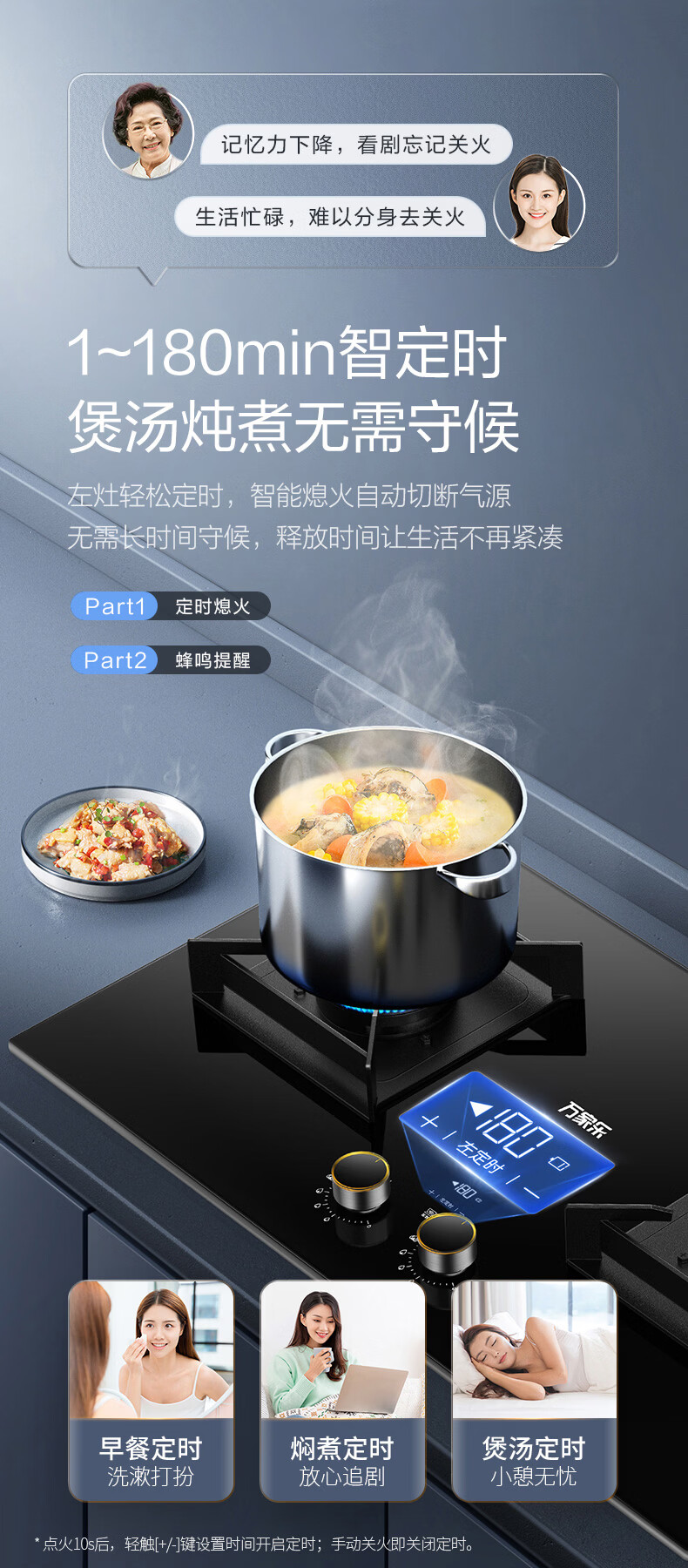 万家乐燃气灶【小鲸喜AY9】180min定时灶 5.2kw大火力嵌入式台式两用灶 全进风烟灶联动智能定时天然气灶