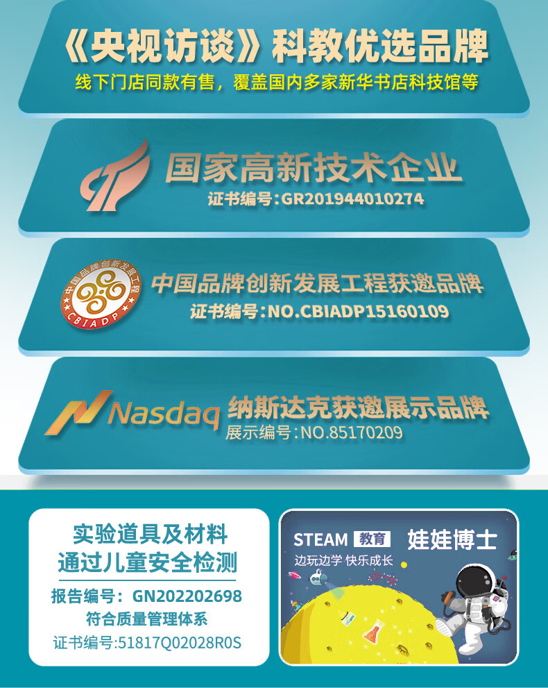 娃娃博士儿童科学实验套装6-14岁小学生化学课男女孩益智玩具生日礼物