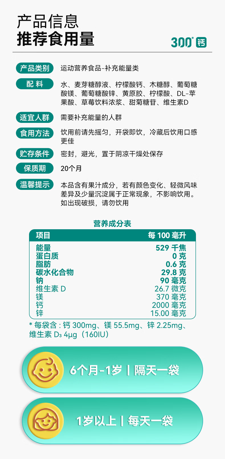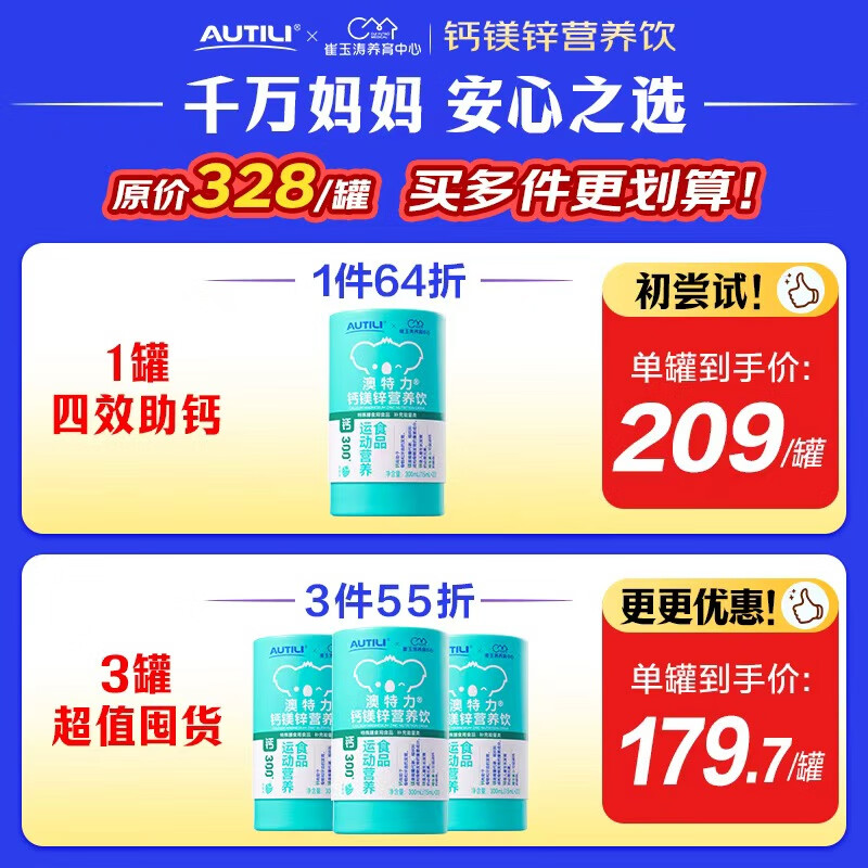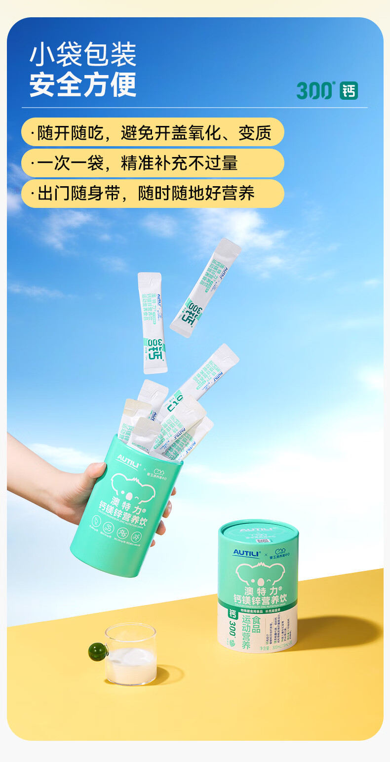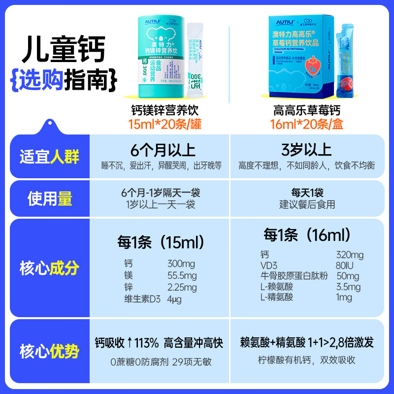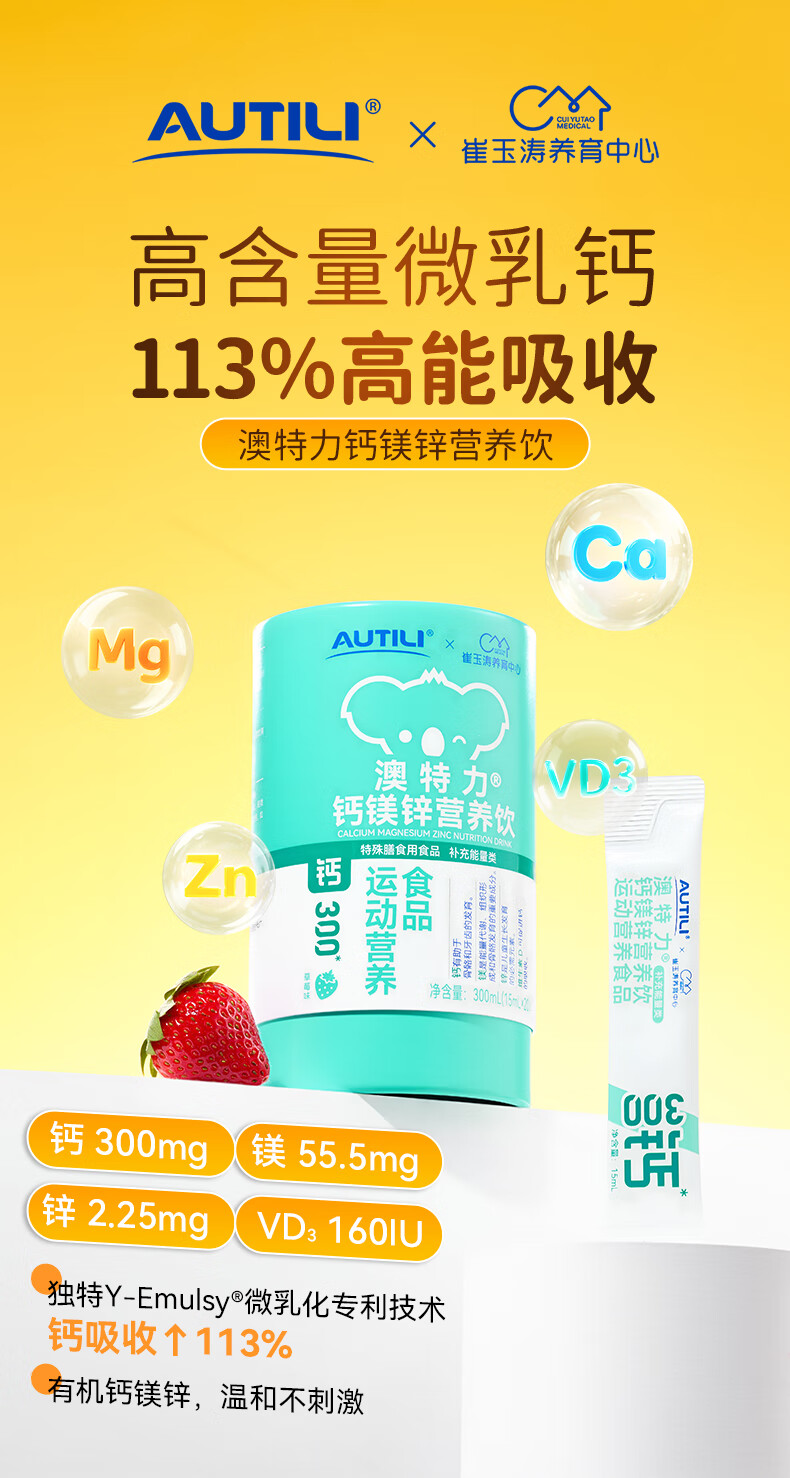 AUTILI澳特力【崔玉涛团队亲研】钙镁锌营养饮儿童钙液体钙维生素d3 15mL*20条