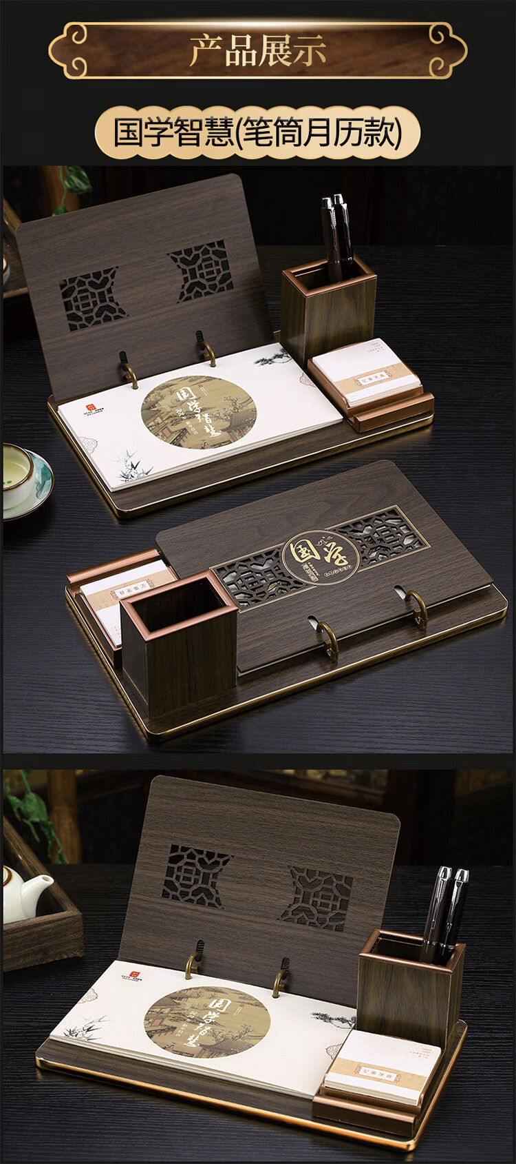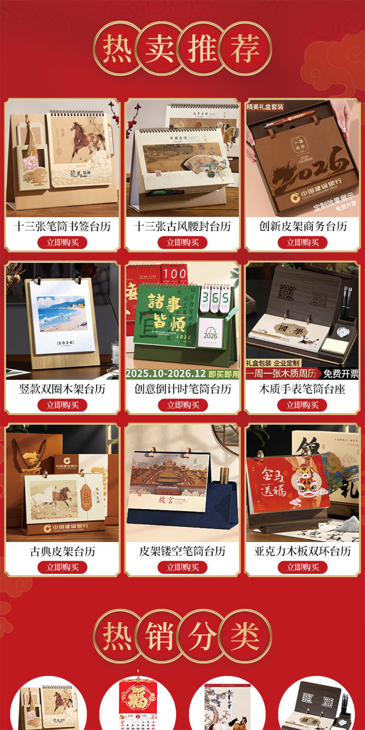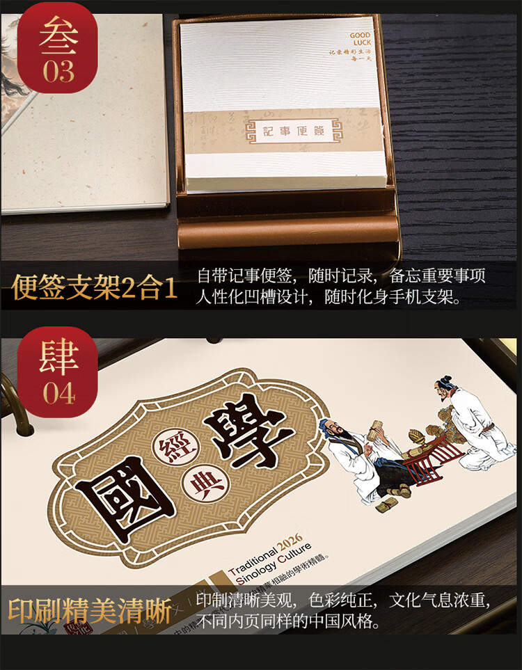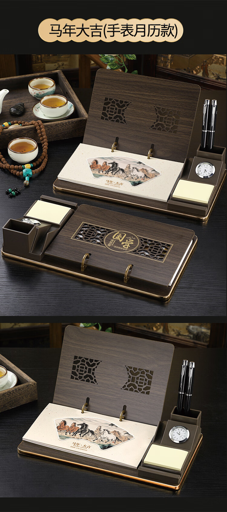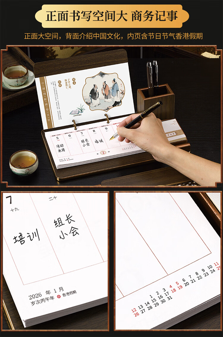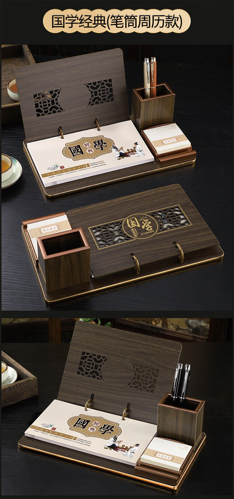 筏芯台历2026年新款手表笔筒周历办公室木质桌面记事创意时钟日历马年商务办公台座摆件企业订制logo 国学经典-手表笔筒款(54张周历款)
