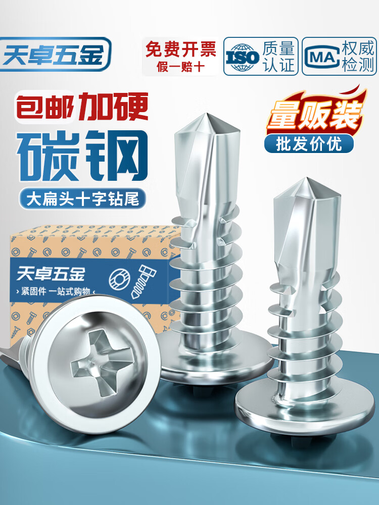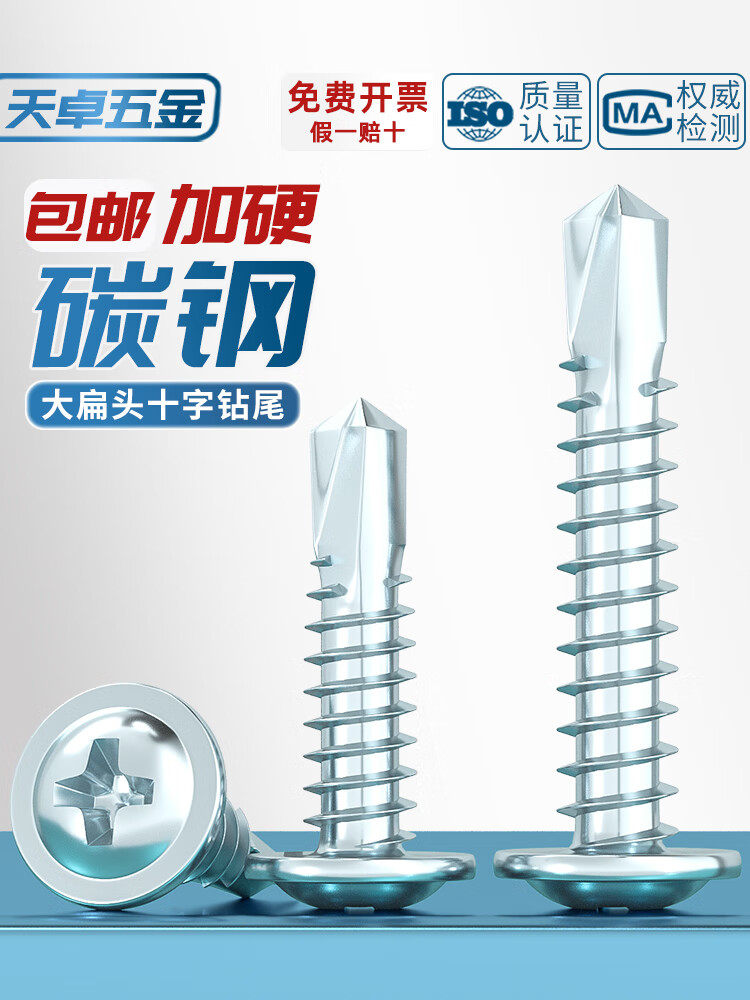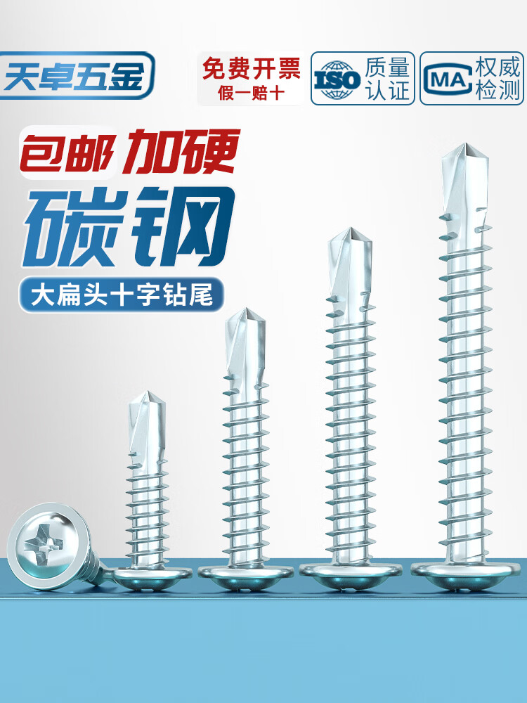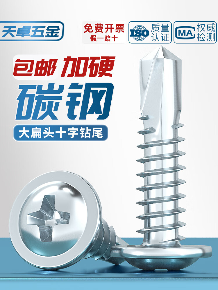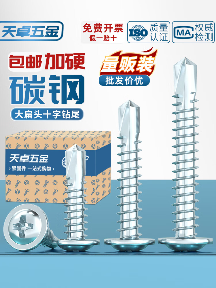 天卓五金国标加硬 镀锌大扁头十字钻尾螺丝 圆头带垫华司自钻自攻燕尾螺钉 批头【2个】