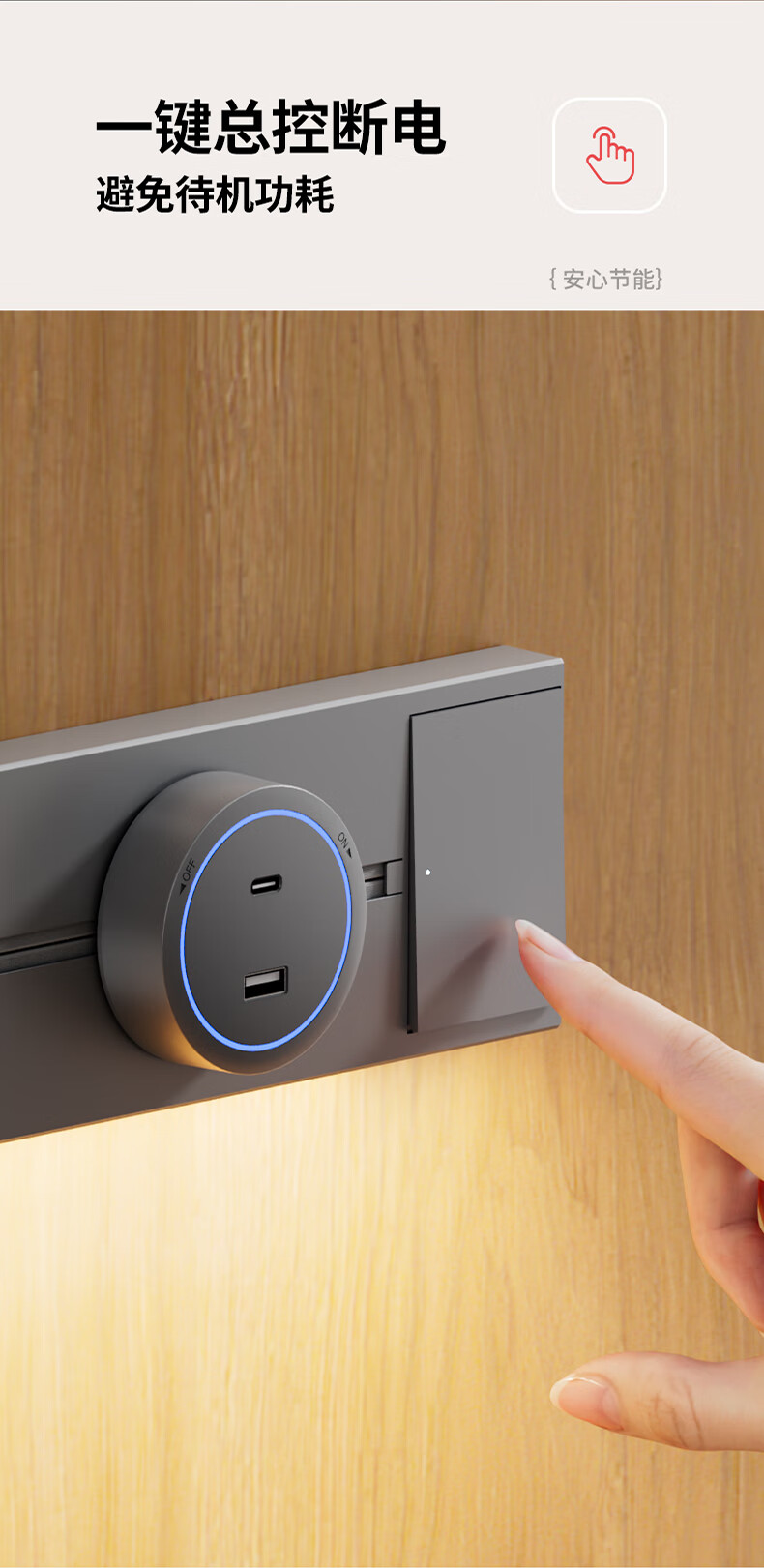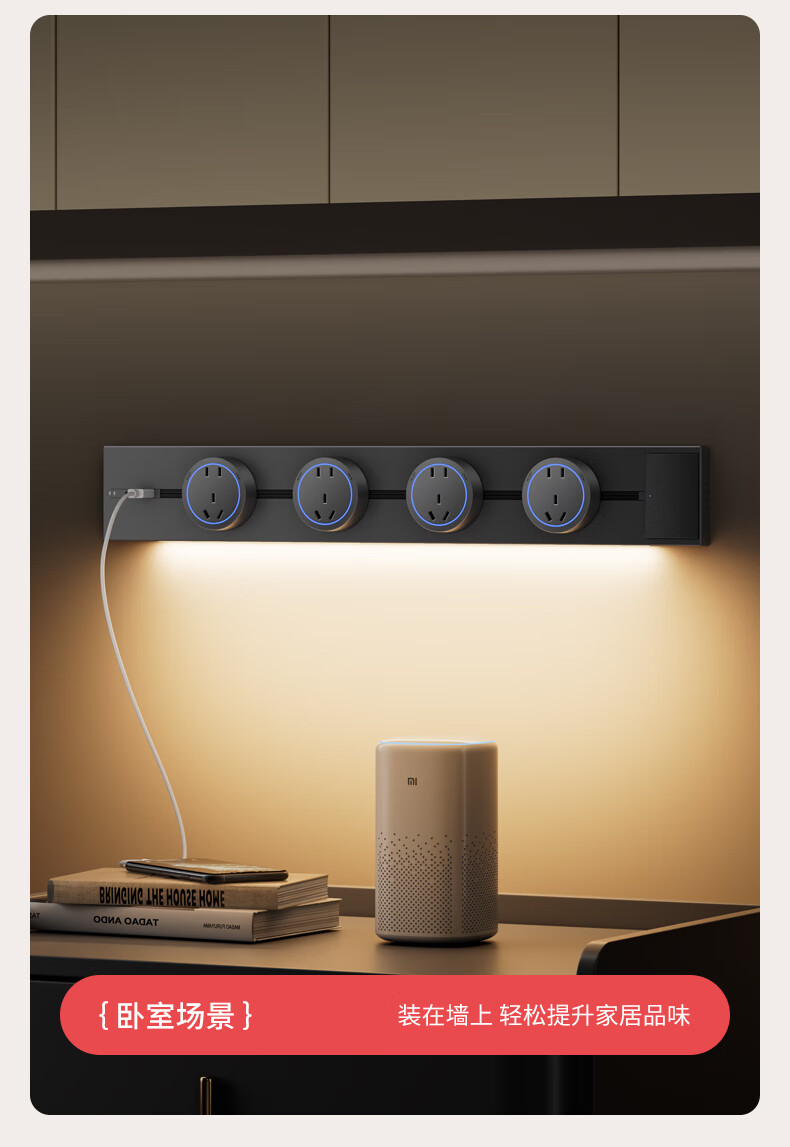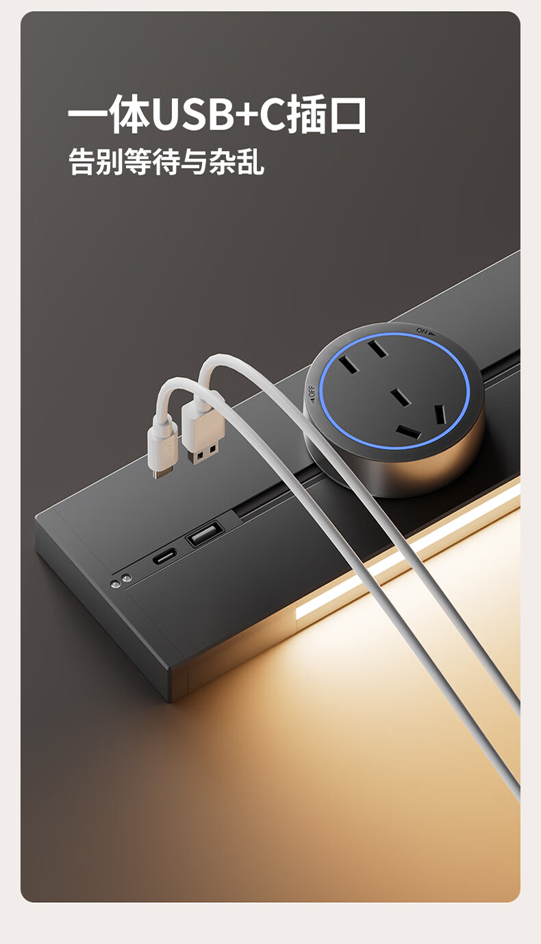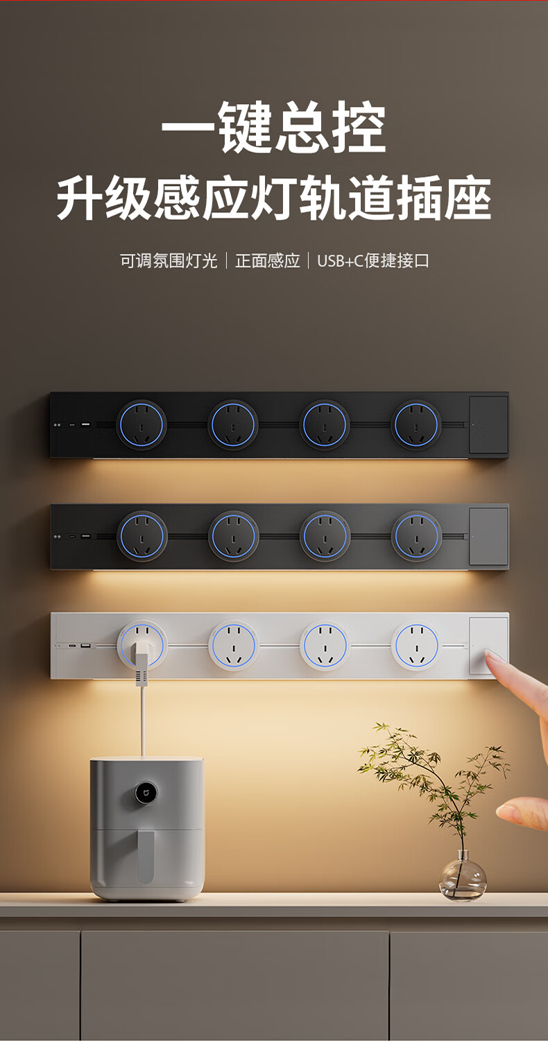 国际电工智能感应灯轨道插座可移动插排壁挂式电力导轨插座UC一体轨道插板 挥手感应轨道 50cm +4个大五孔(蓝灯)