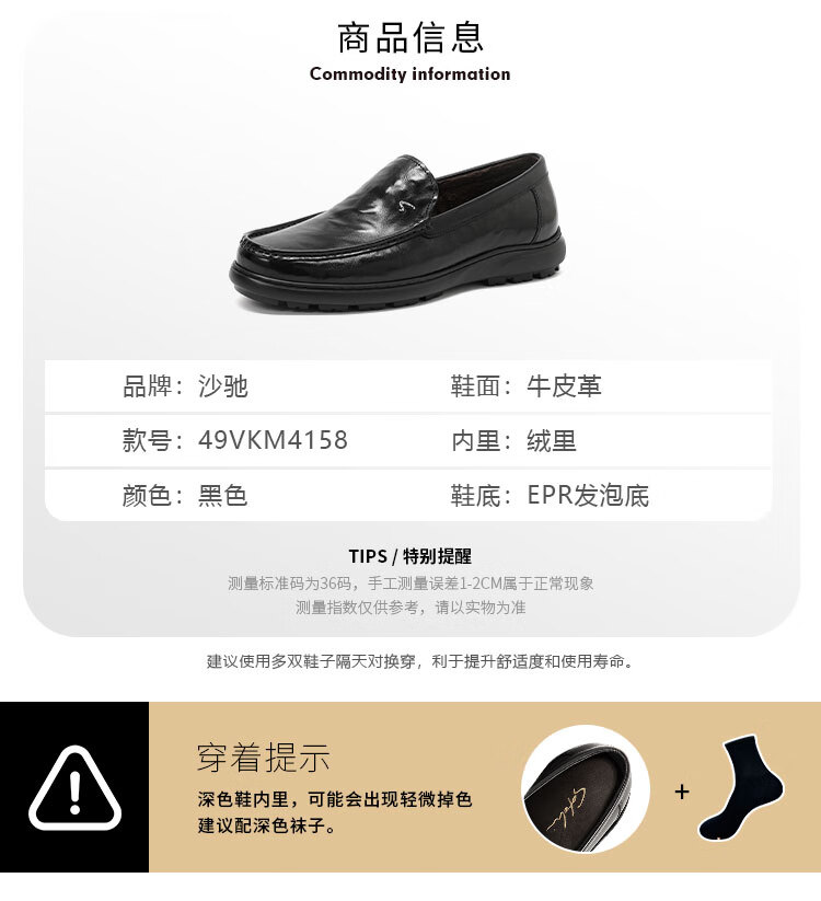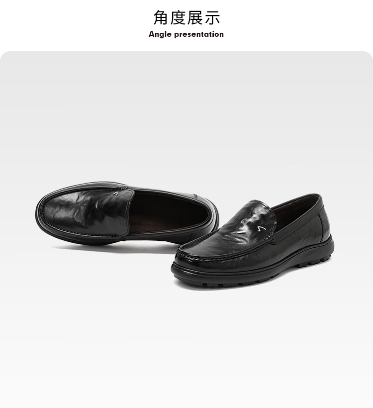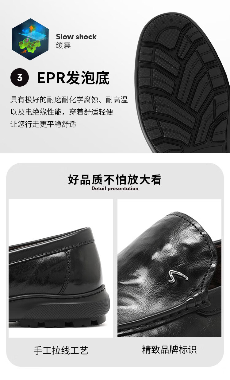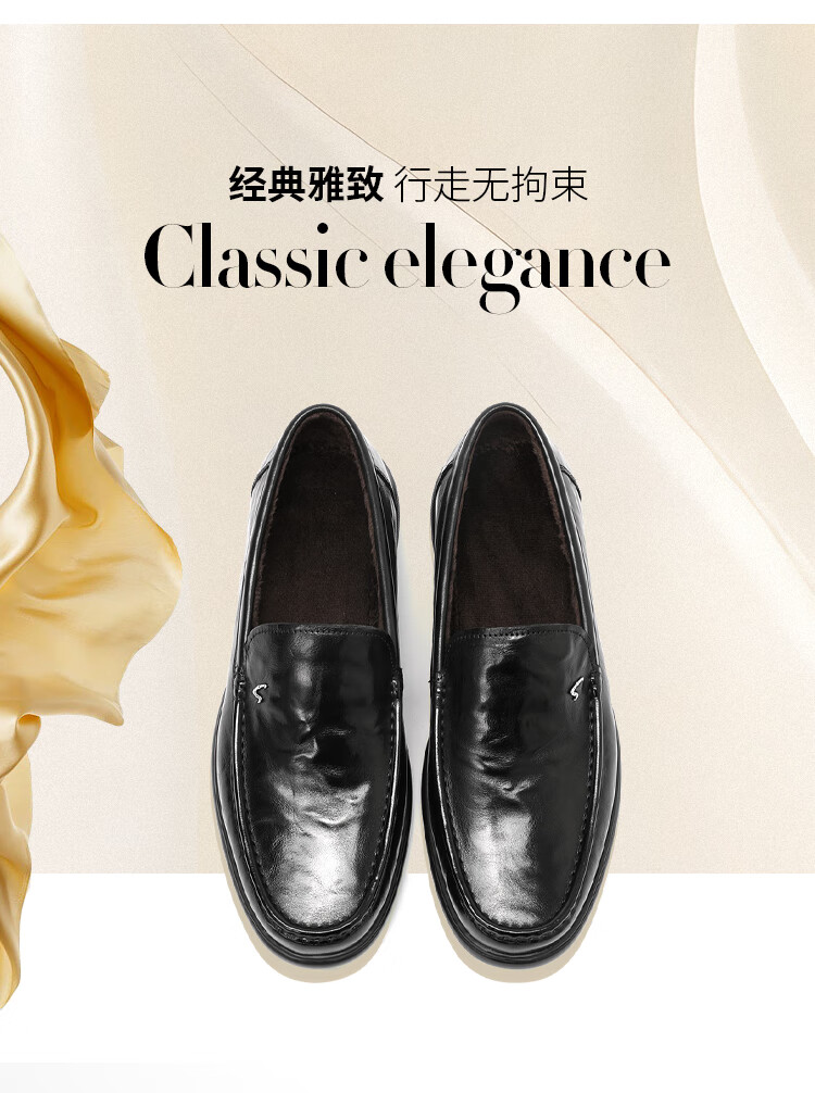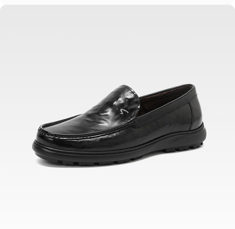 沙驰(SATCHI)男鞋【加绒保暖】胎牛皮商务休闲皮鞋轻便棉鞋爸爸鞋乐福鞋豆豆鞋 黑色(49VKM4158) 加绒 39 欧码(选小一码)
