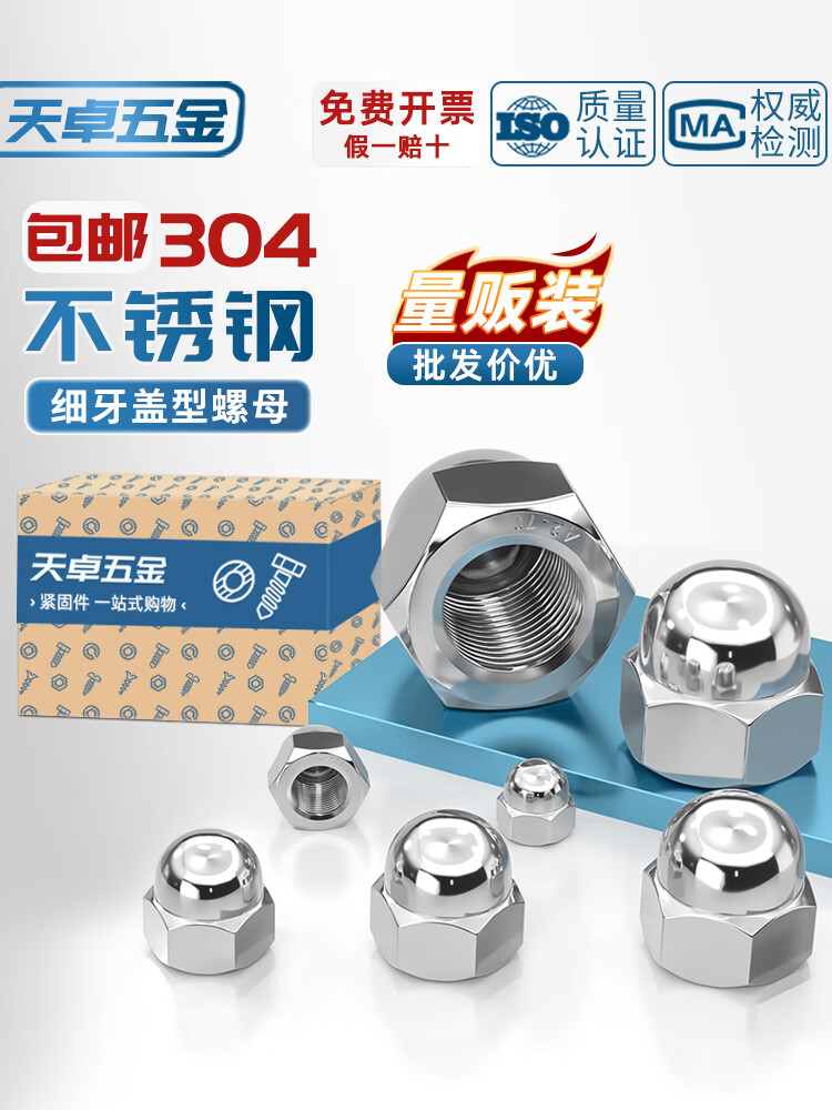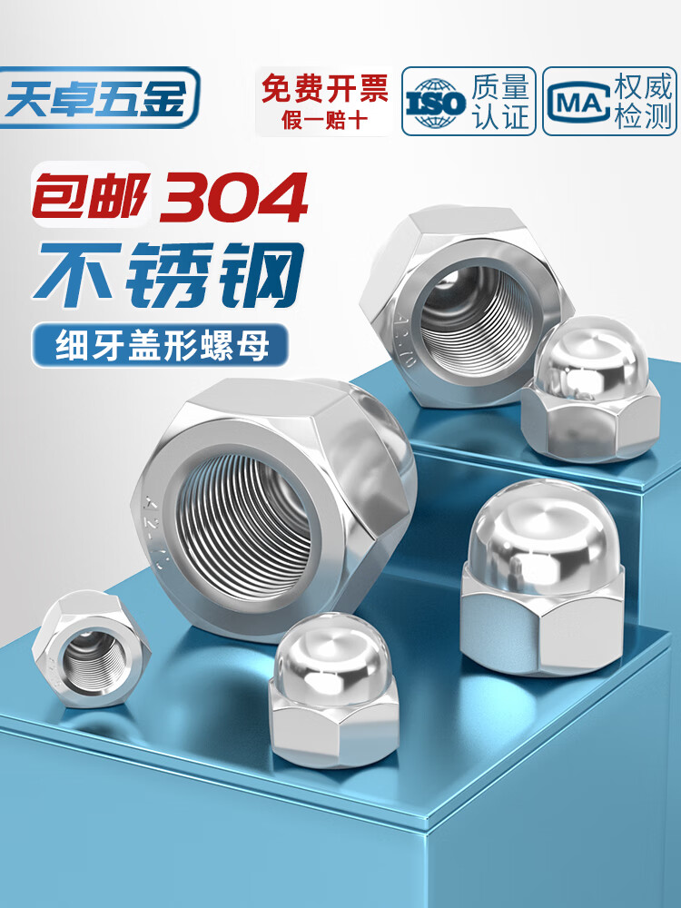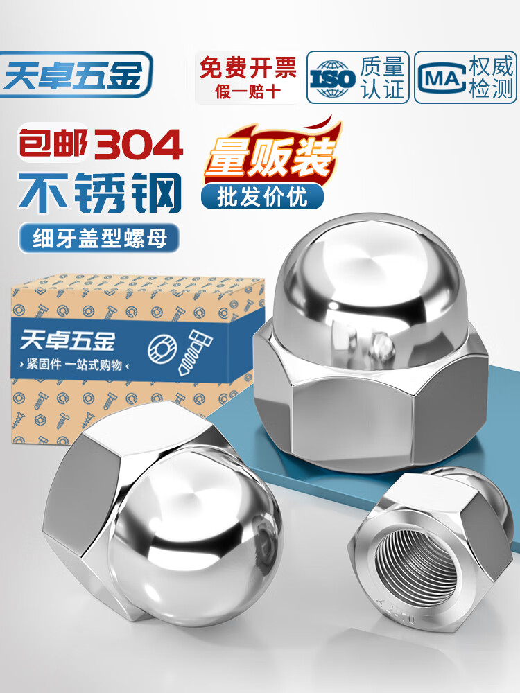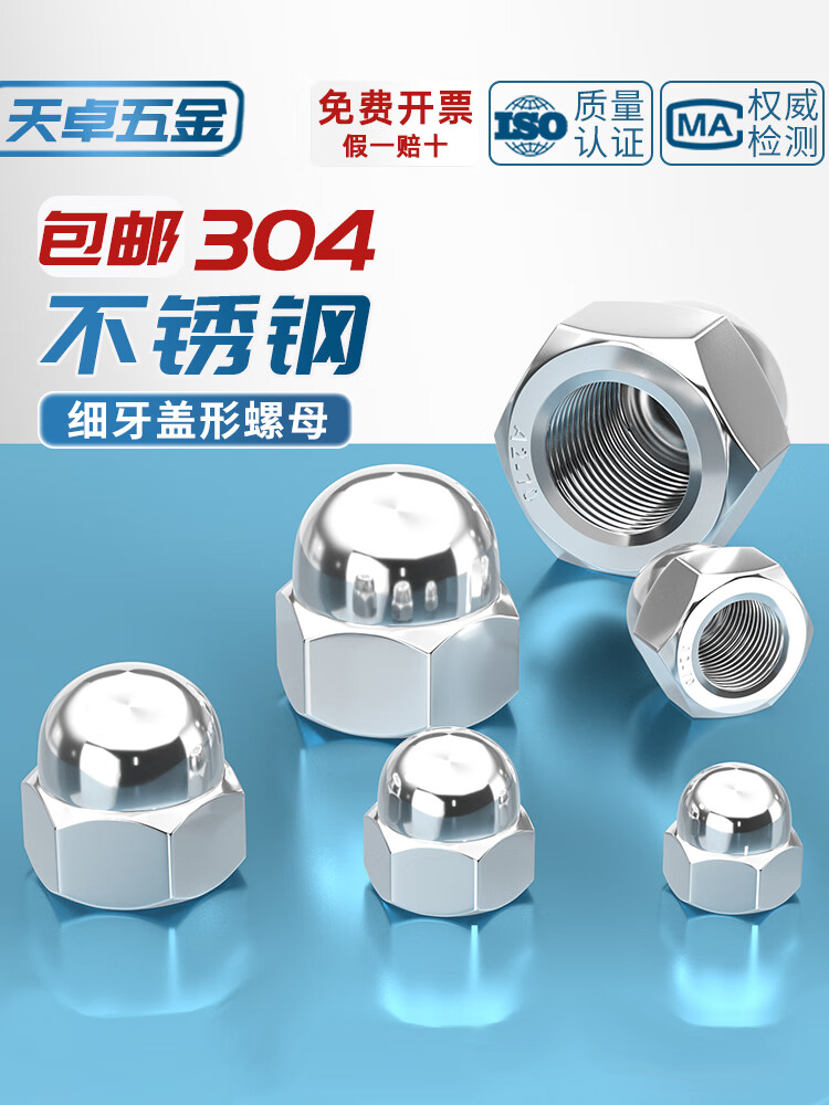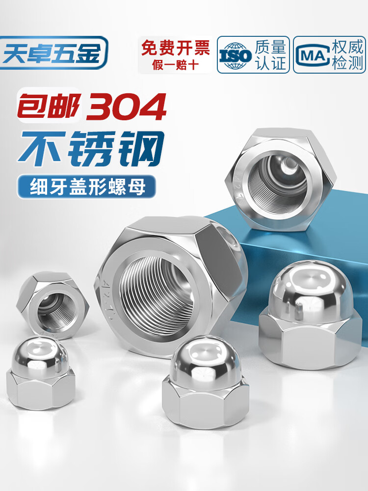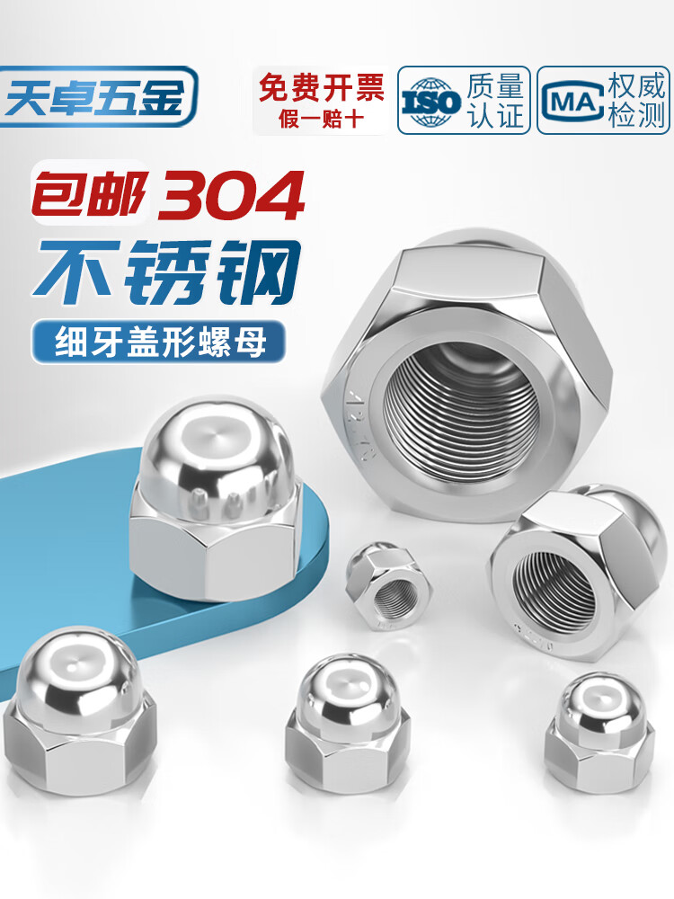 天卓五金304不锈钢细牙盖型形螺母细牙盖帽M10M12M14M16M18M20*1*1.25*1.5 ---以下为【304细牙系列】---