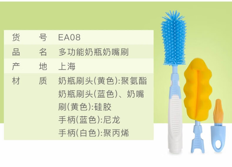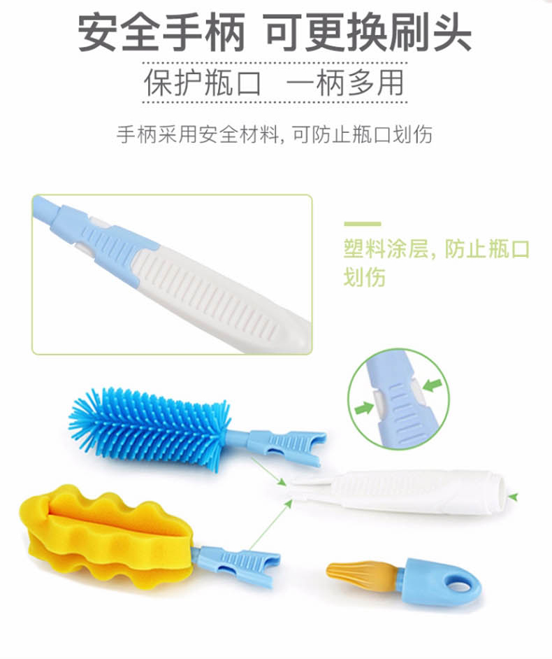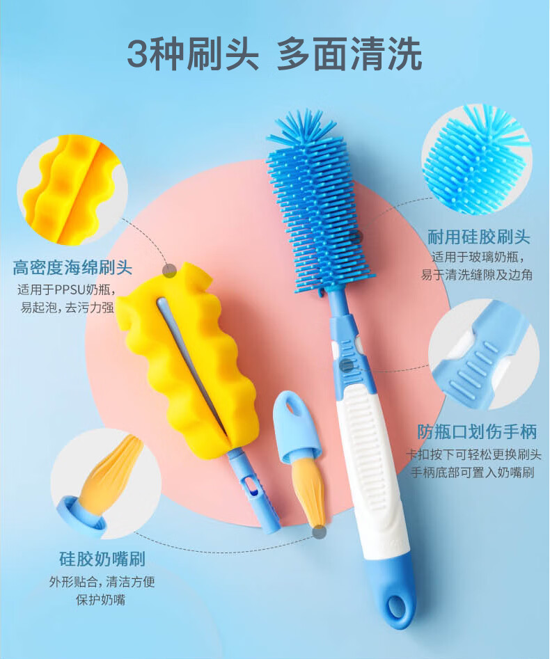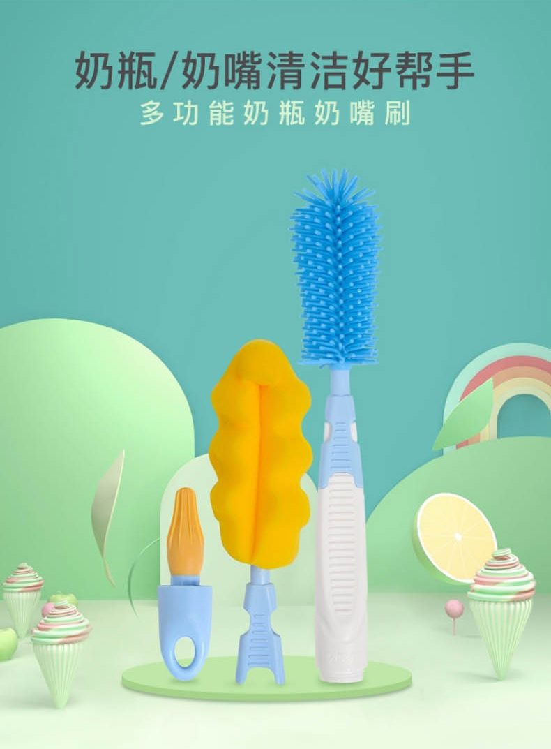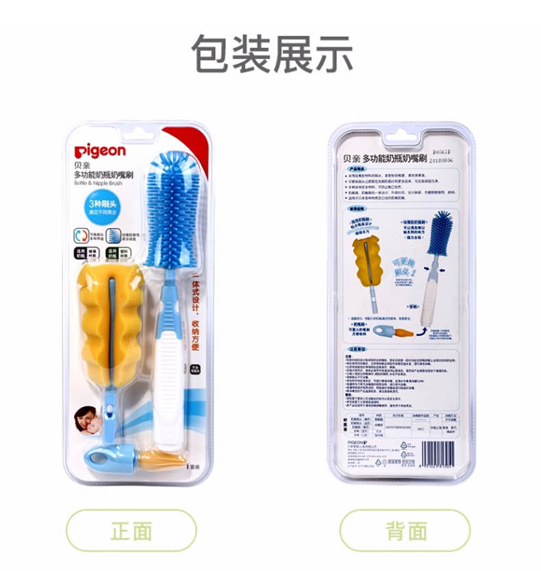 贝亲(Pigeon)奶瓶奶嘴刷套装便携多功能硅橡胶奶瓶刷+海绵奶瓶刷+奶嘴刷 EA08