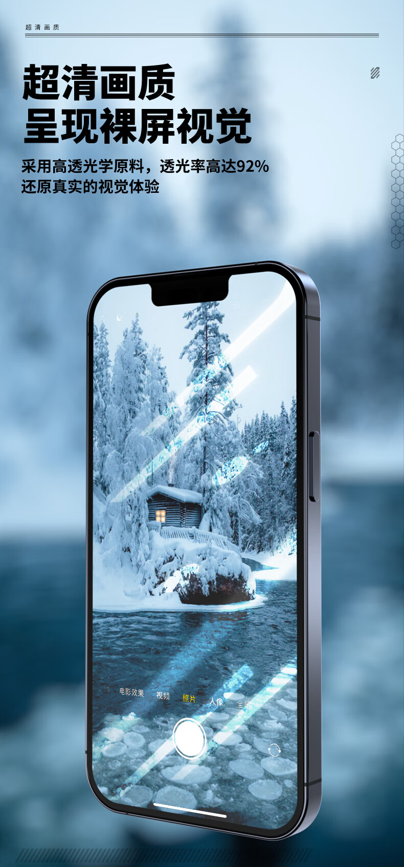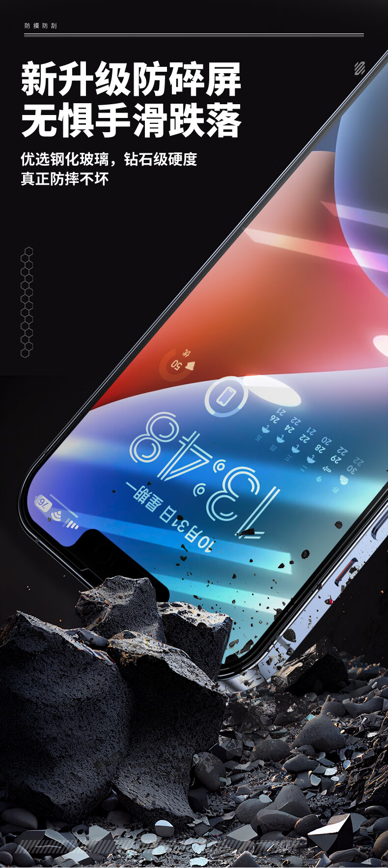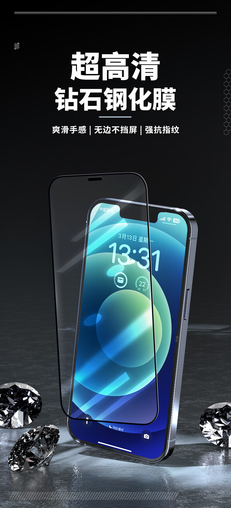 【严选好物】适用 苹果13 pro max mini 61 67 全屏钢化膜 八强膜 黑色边(1片装) 苹果13pro6.1寸
