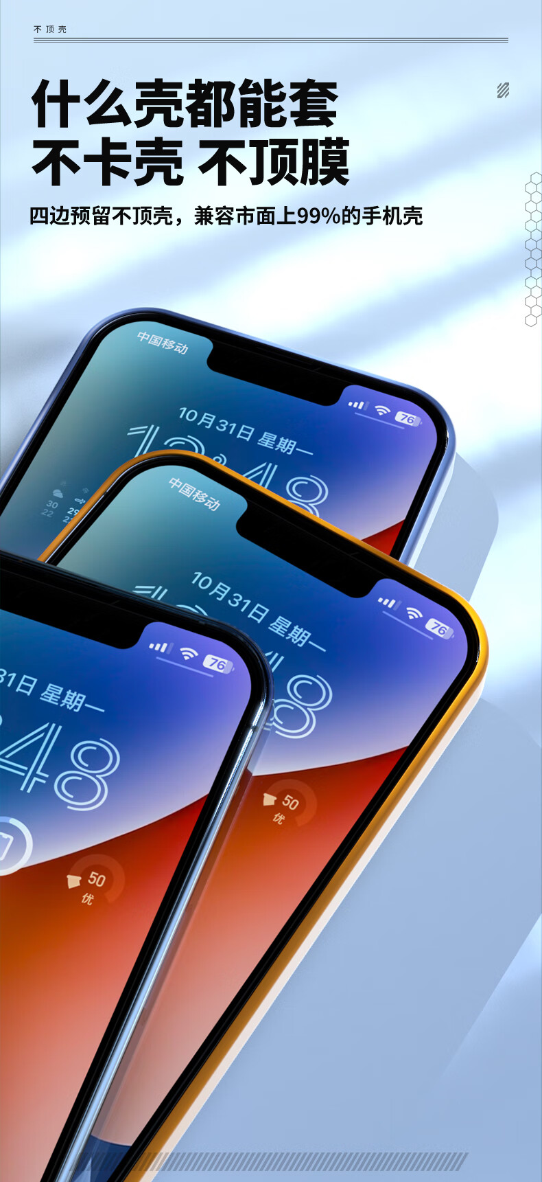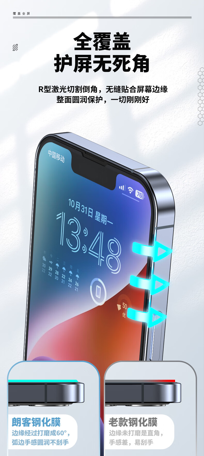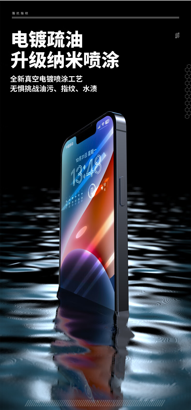 【严选好物】适用 苹果13 pro max mini 61 67 全屏钢化膜 八强膜 黑色边(1片装) 苹果13pro6.1寸