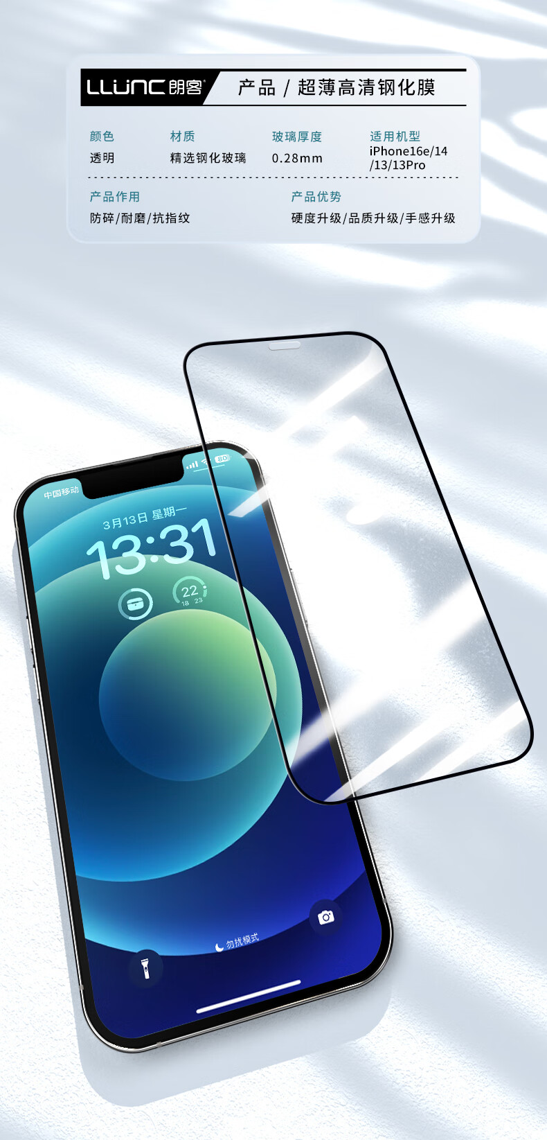 朗客【特惠2片】苹果16e/14 /13/13Pro钢化膜iPhone14/13手机膜超薄全屏覆盖高清玻璃防摔超薄保护贴膜