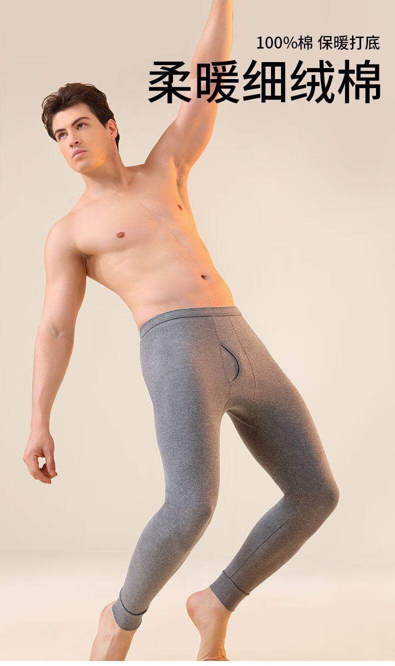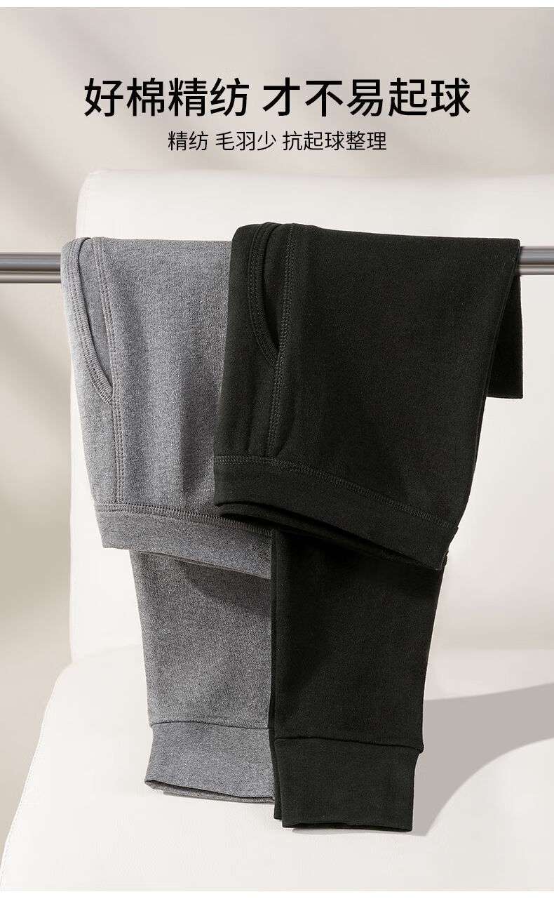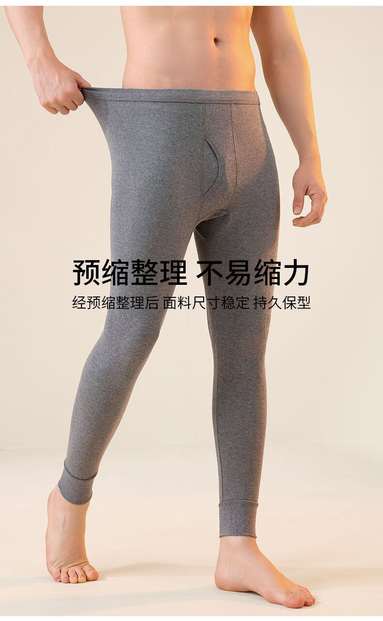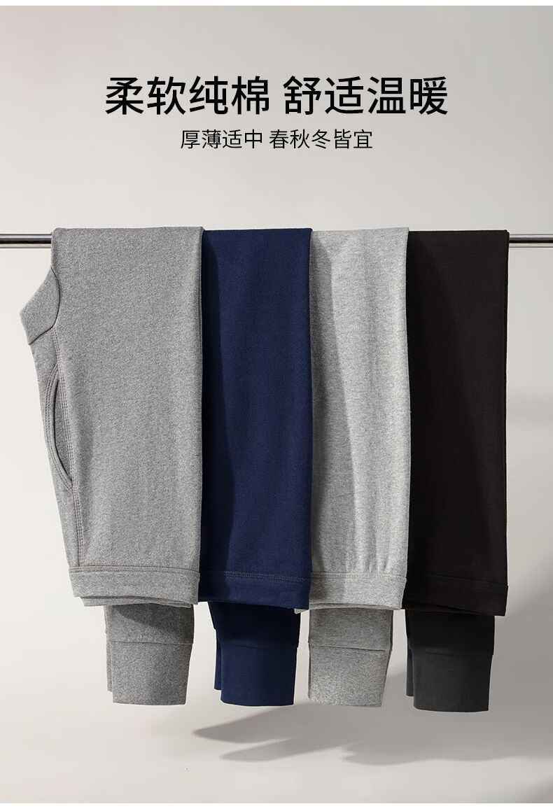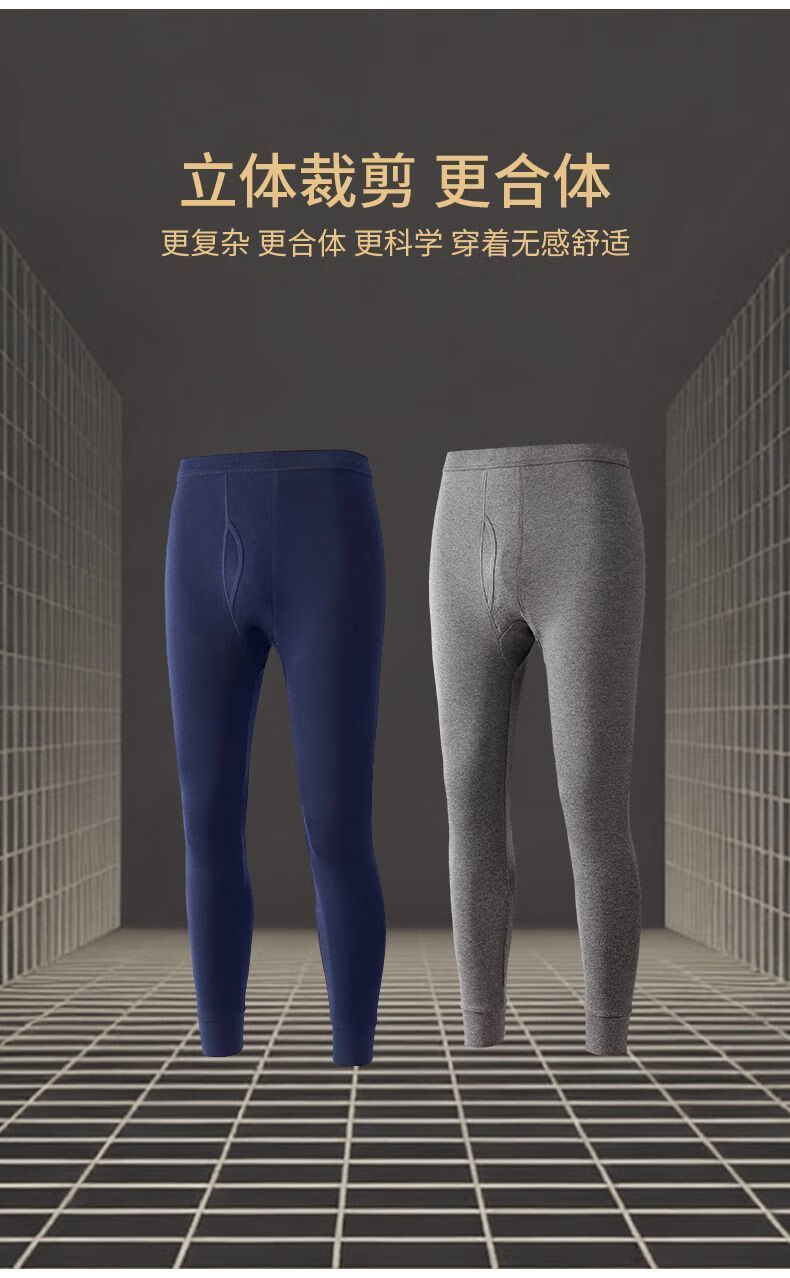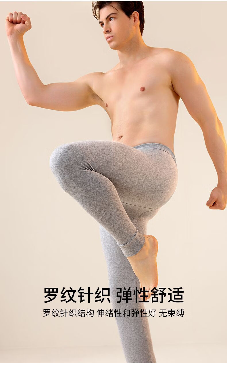 真维斯(Jeanswest)男士秋裤男100%纯棉全棉毛线裤薄款打底裤保暖裤 【100%全棉纯棉】浅花灰+深花灰 4XL 180-210斤