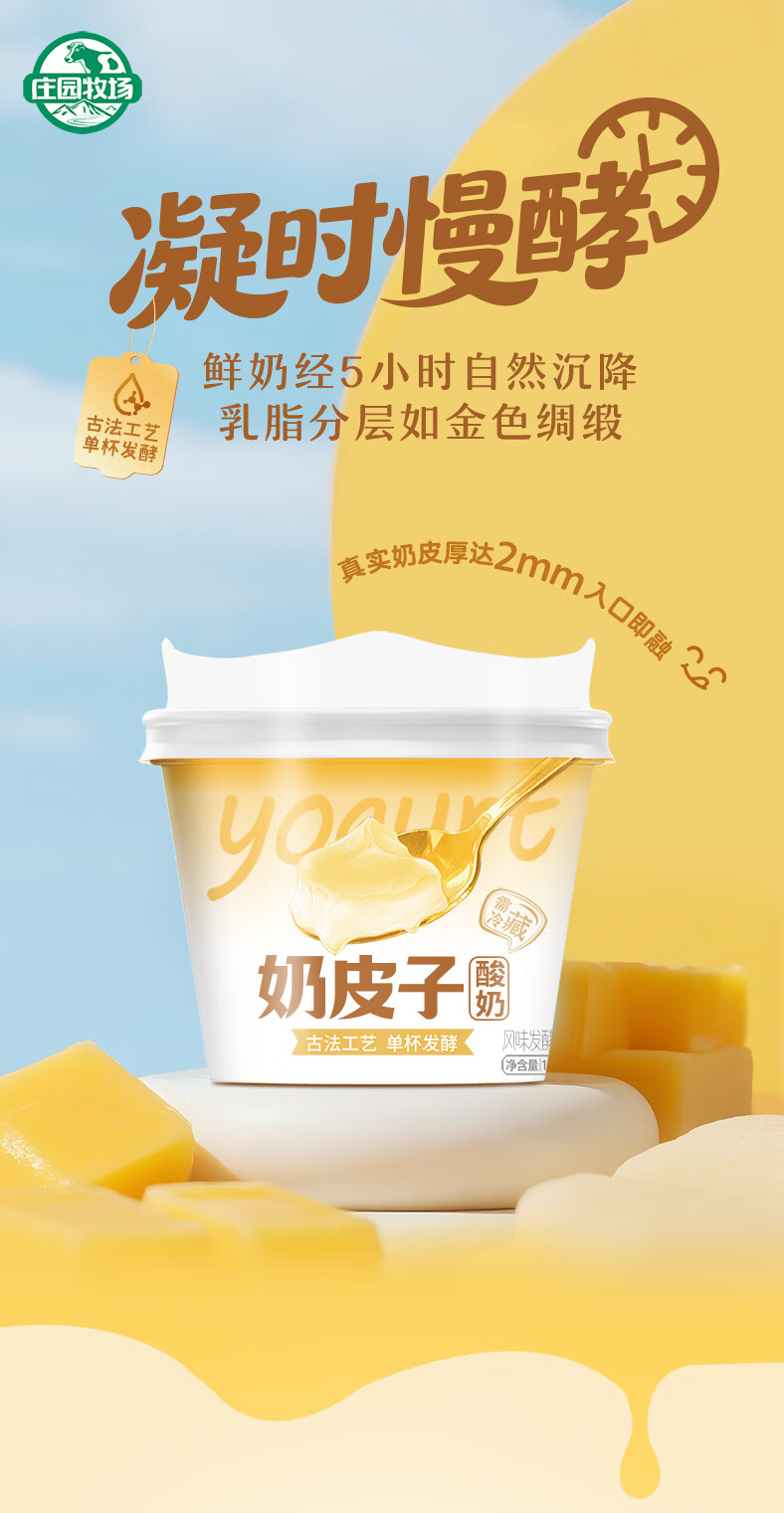 庄园牧场新品奶皮子酸奶135g*12杯甘肃特产低温酸奶源头直发包邮