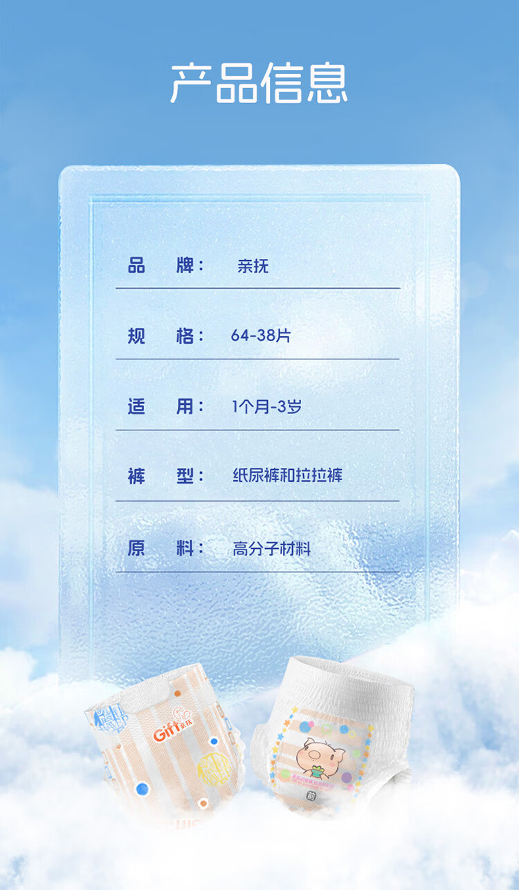 亲抚【安心国货 】gift薄系列拉拉裤透气干爽纸尿裤亲肤尿不湿NB 拉拉裤 2XL码 42片/包