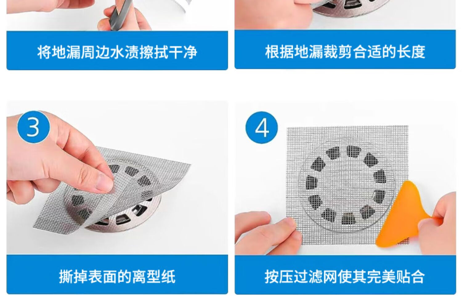 优品卫卫生间地漏贴防堵厕所防头发一次性浴室下水道毛发过滤网防虫通用 1卷宽7cm长5m