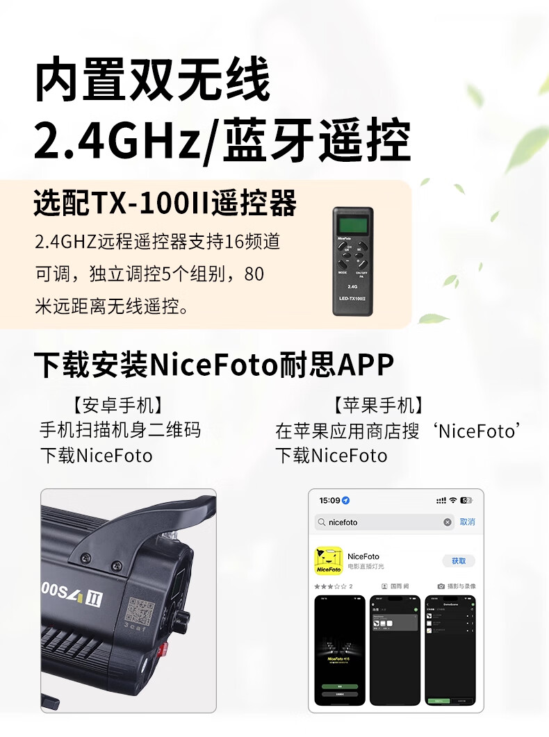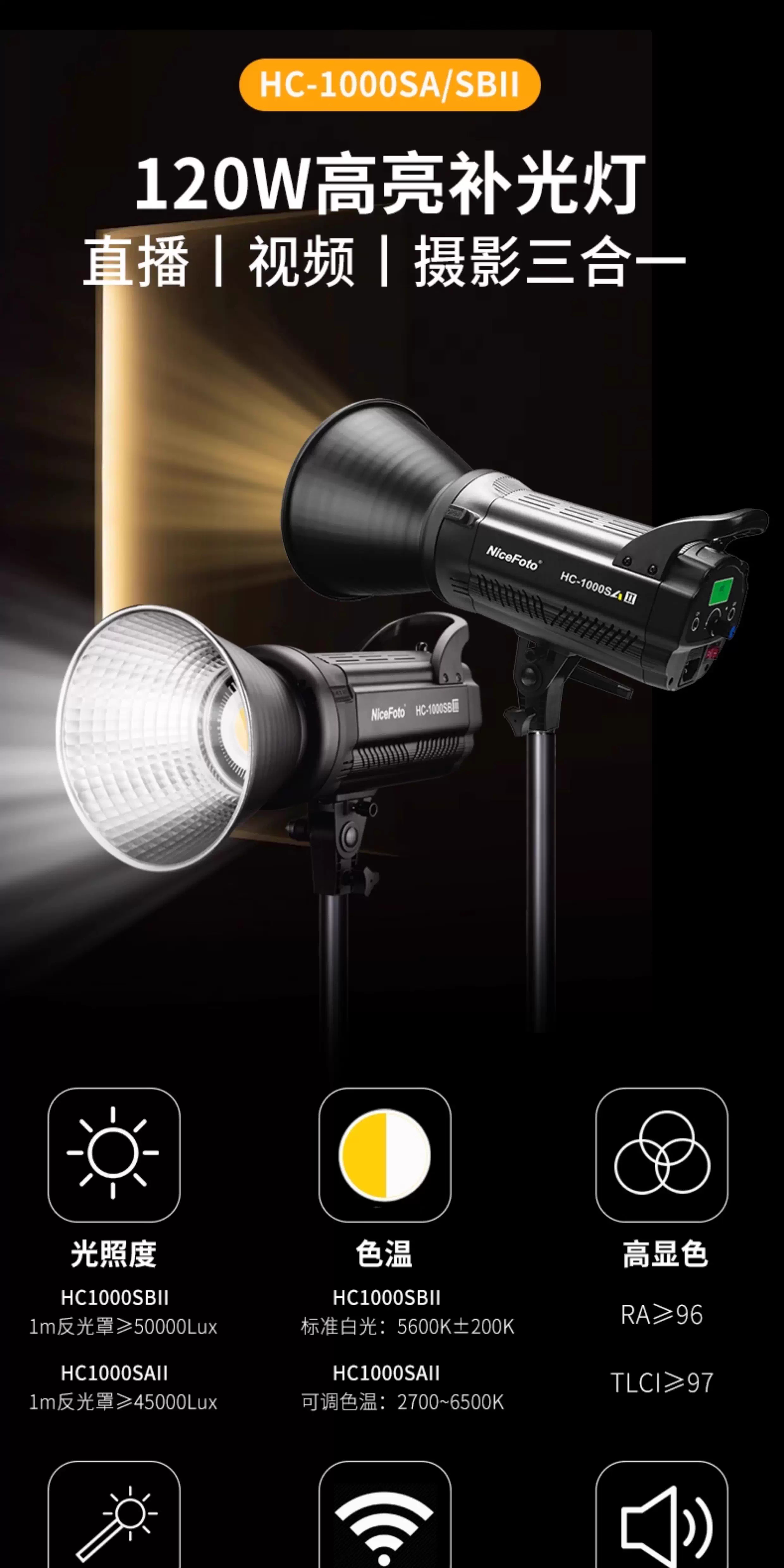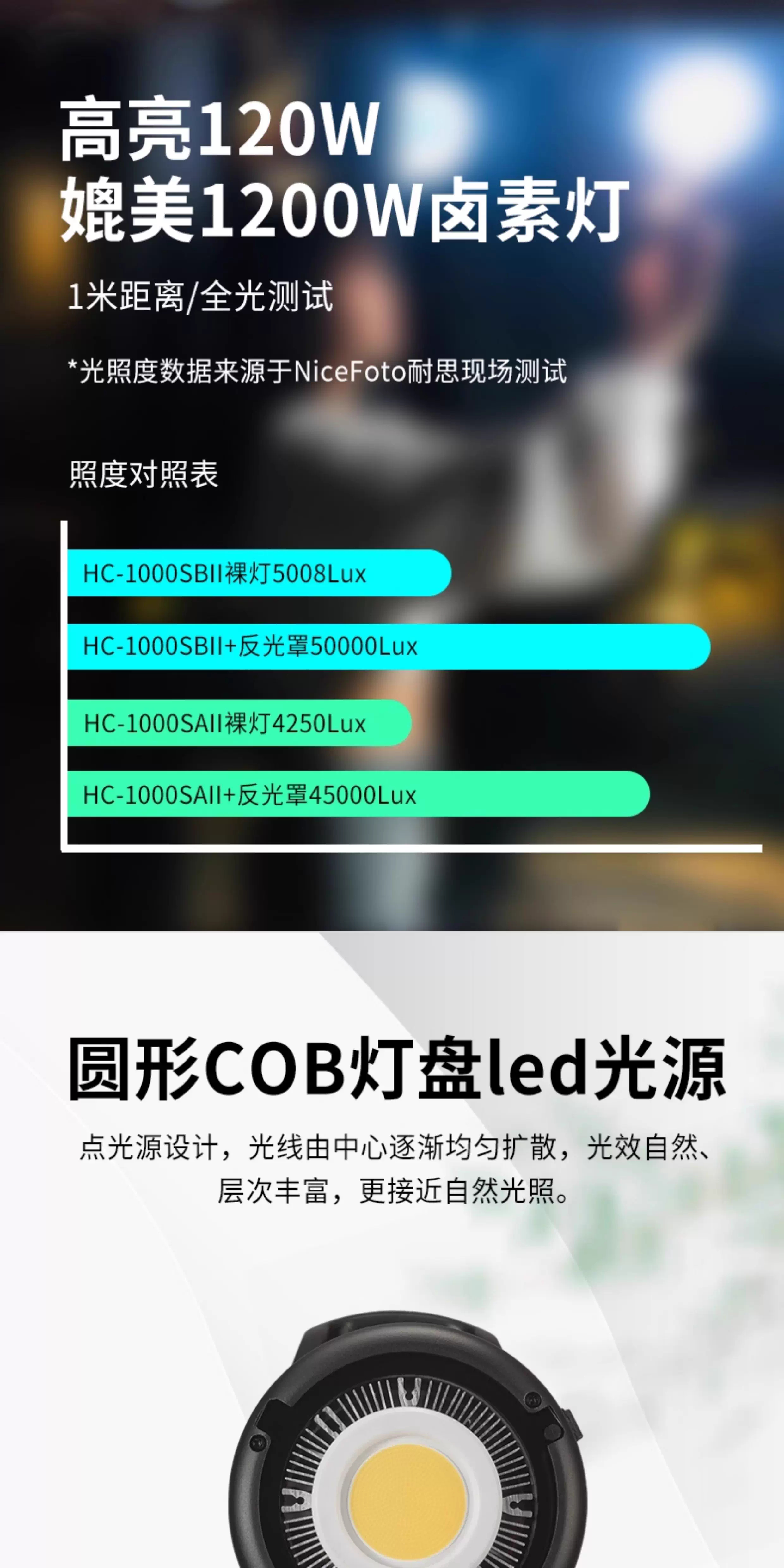 NiceFoto耐思补光灯100W双色温专业COB拍摄灯直播视频拍照人像漫展手持户外便携氛围摄影灯 轮廓灯120w白光四页挡板套HC-1000SBII