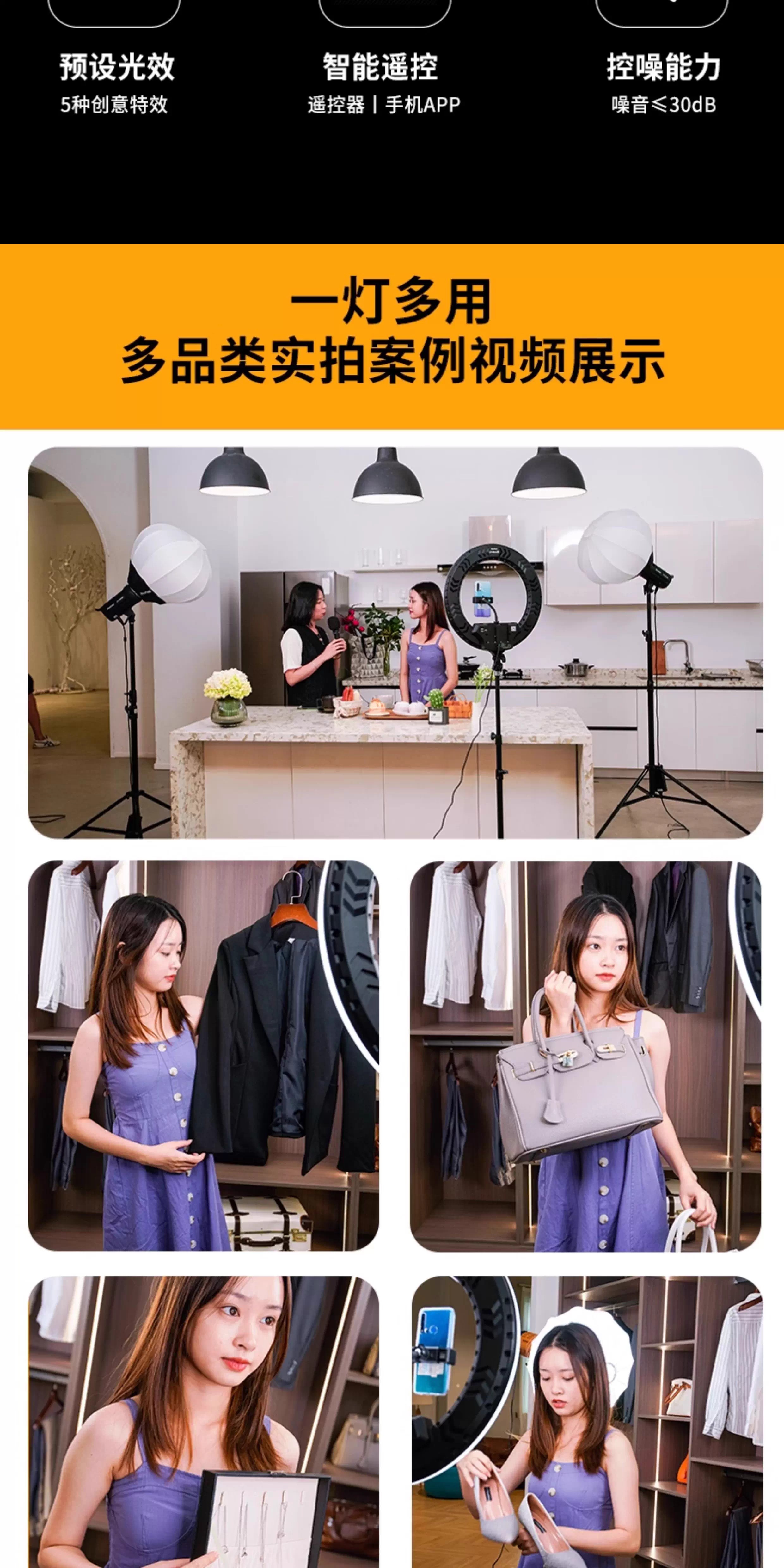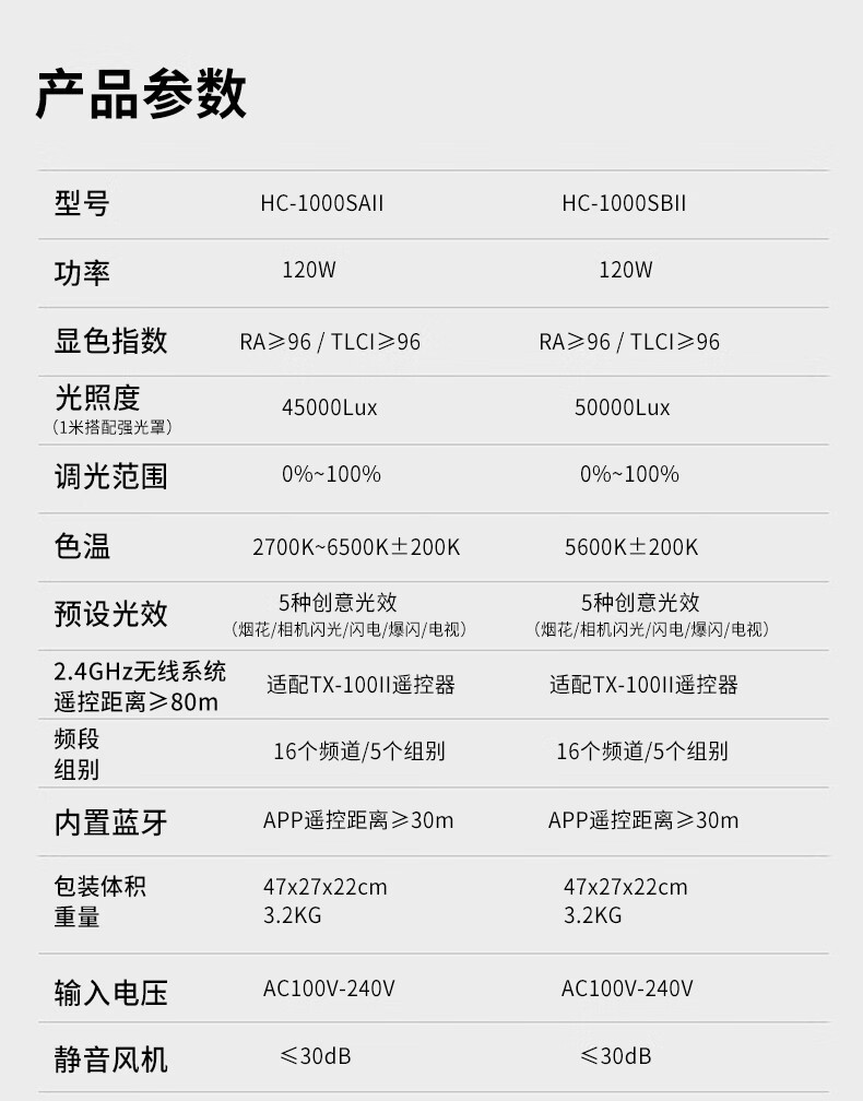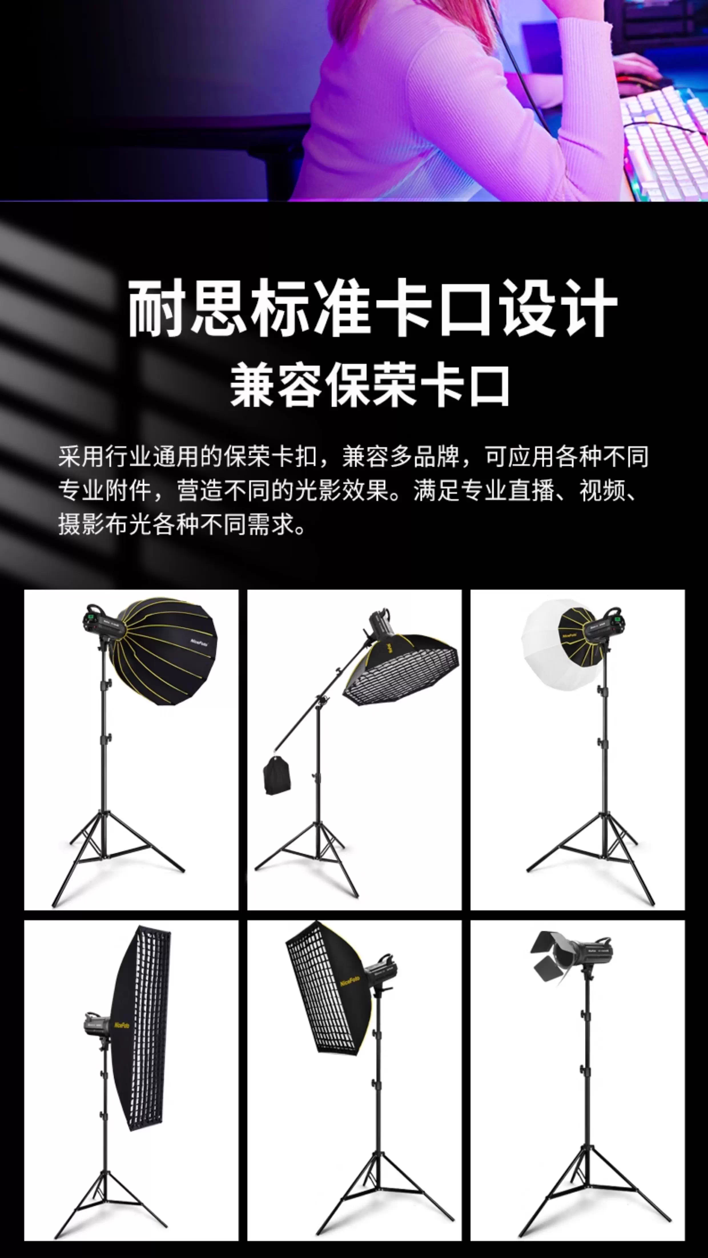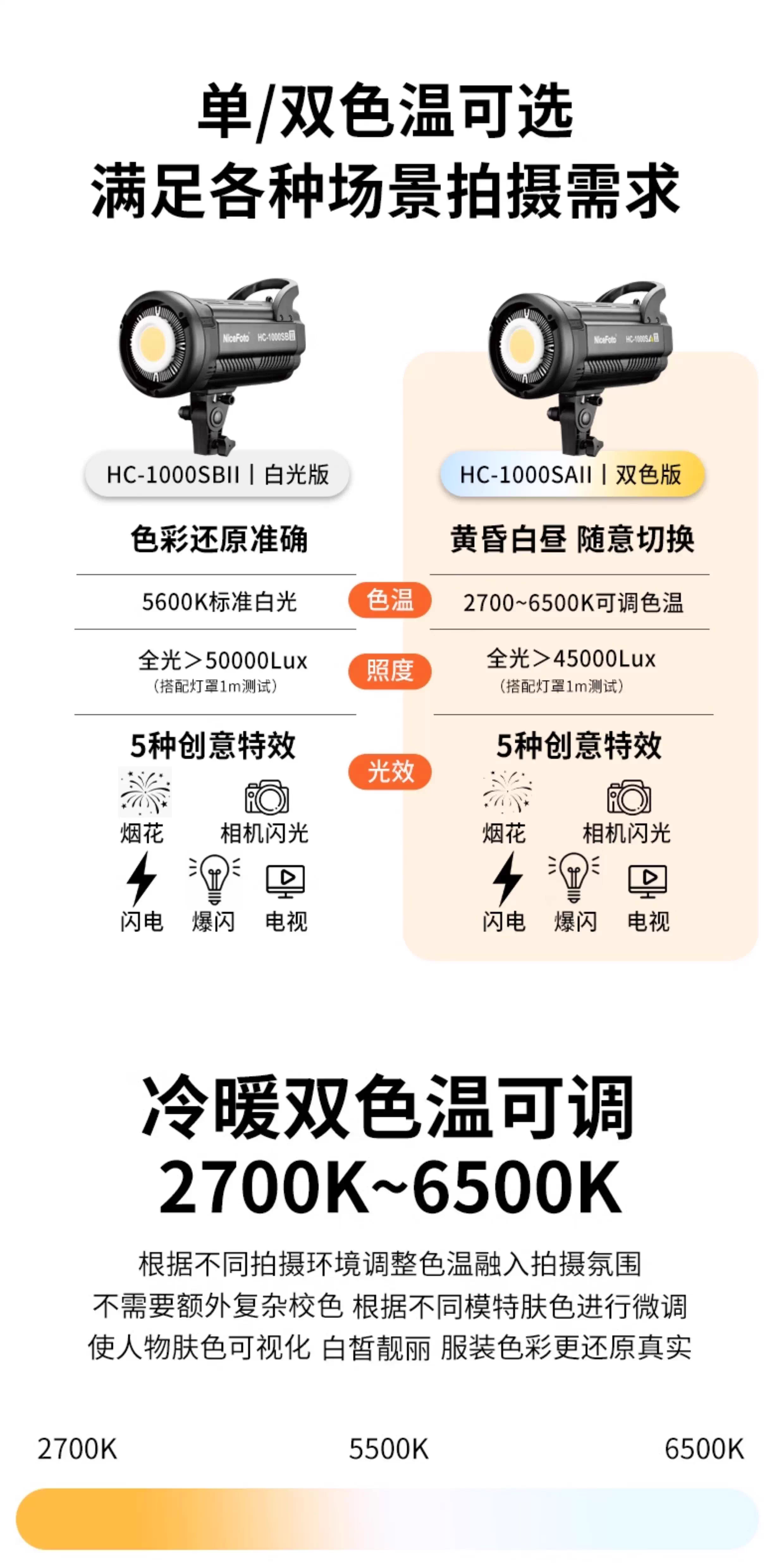 NiceFoto耐思补光灯100W双色温专业COB拍摄灯直播视频拍照人像漫展手持户外便携氛围摄影灯 轮廓灯120w白光四页挡板套HC-1000SBII