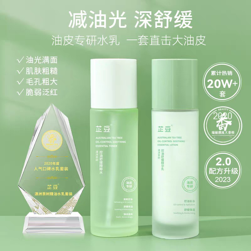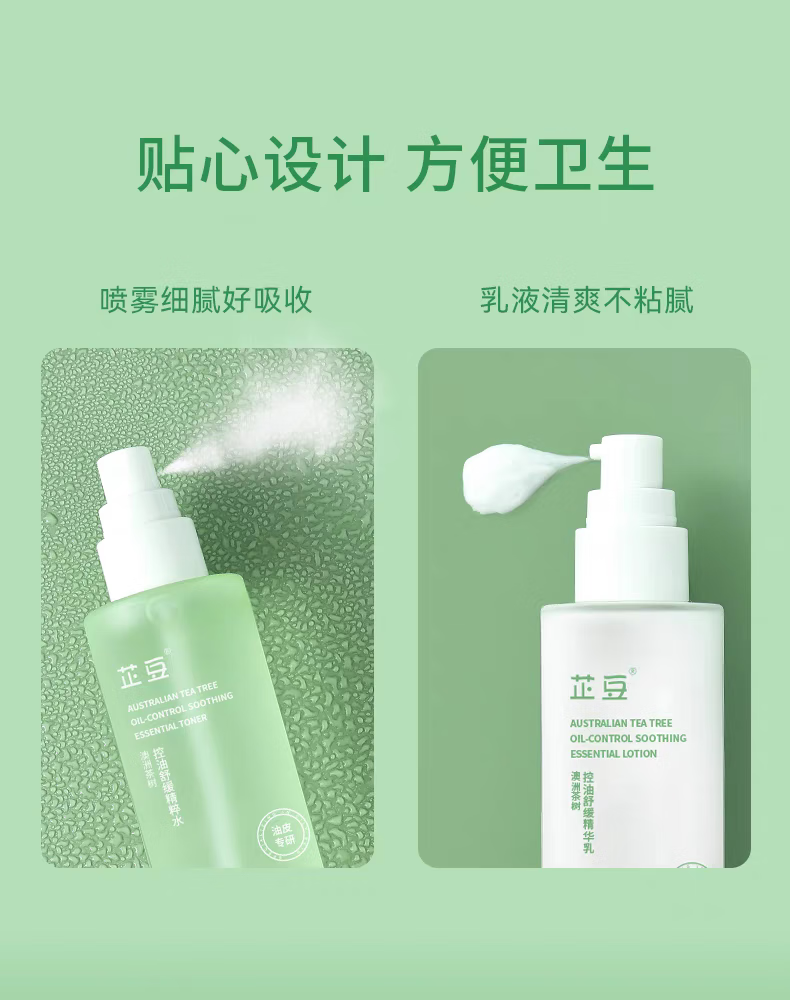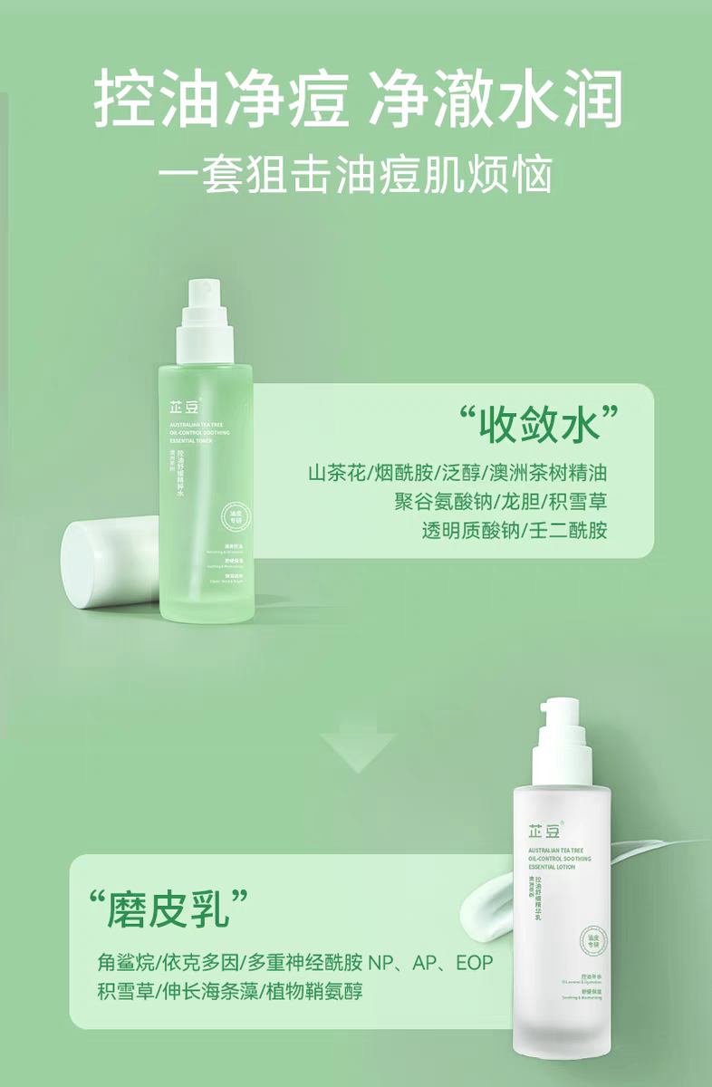 芷豆水乳茶树精华油皮痘肌修护控油收毛孔补水保湿青少年学生护肤套装 【控油套装】芷豆水乳套装100ml*2瓶