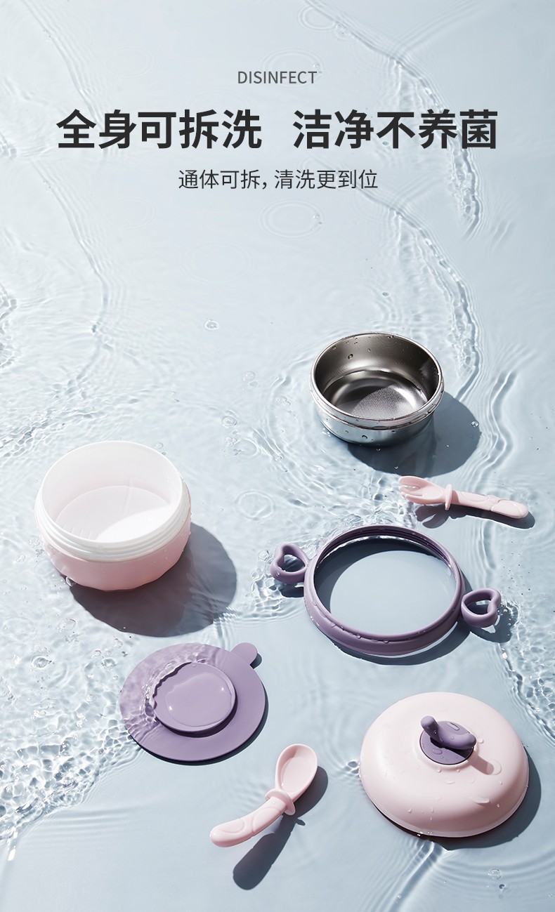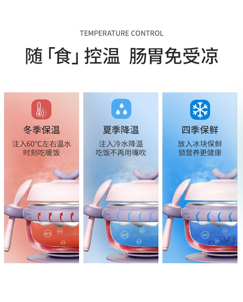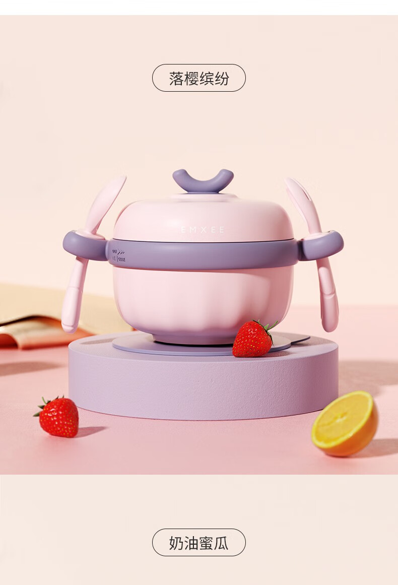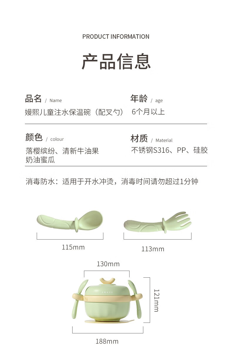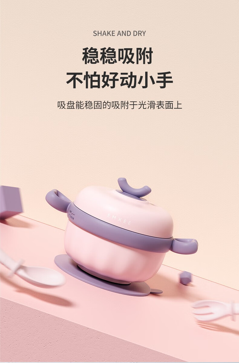 嫚熙(EMXEE)儿童餐具 婴儿注水保温碗 宝宝防摔可拆卸碗吸盘碗辅食碗勺3件套 落英缤纷
