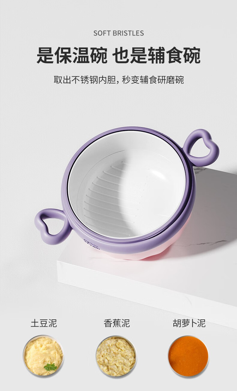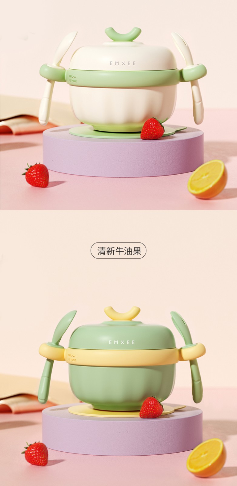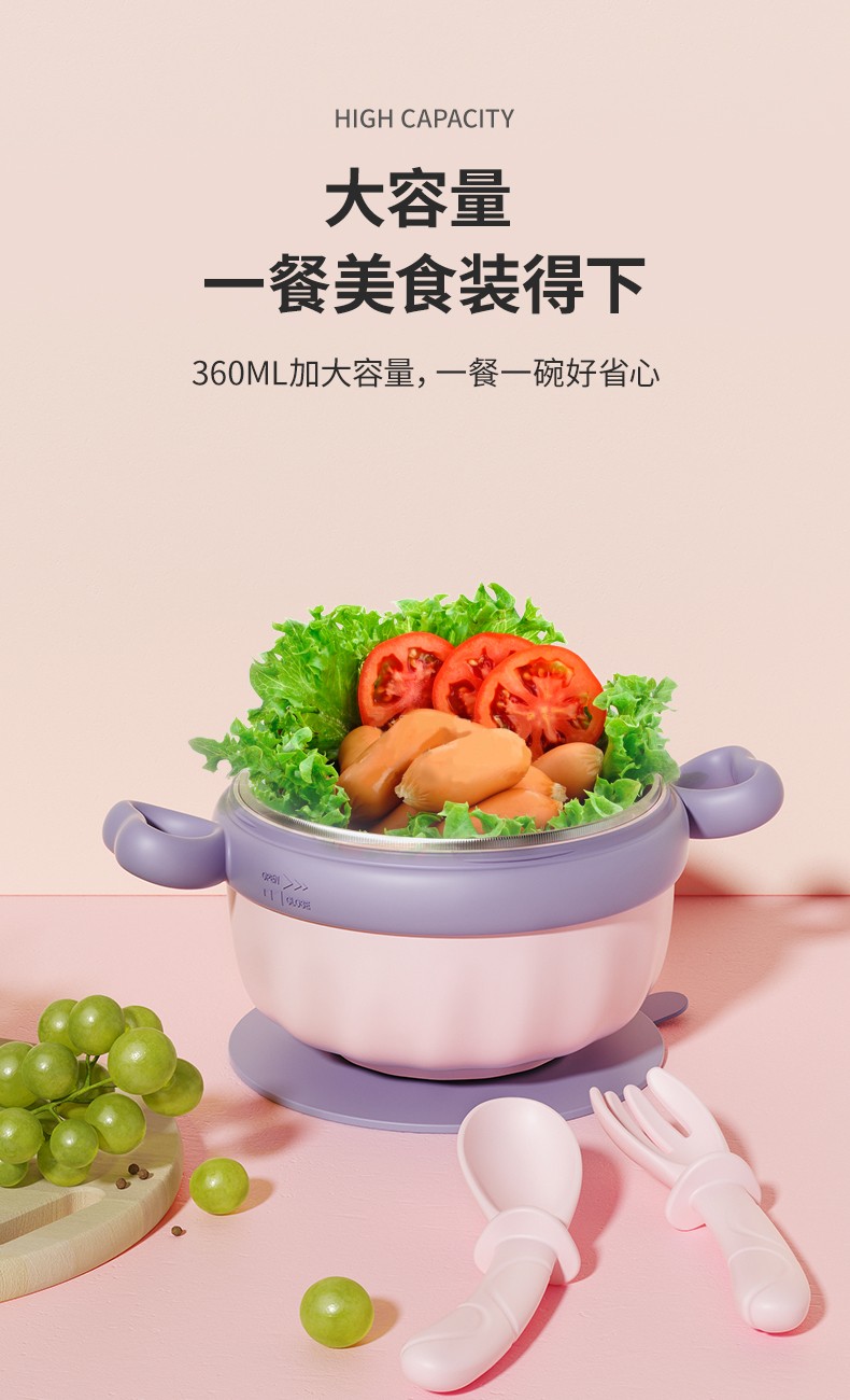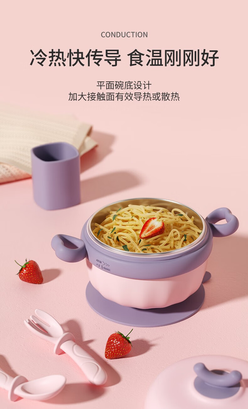 嫚熙(EMXEE)儿童餐具 婴儿注水保温碗 宝宝防摔可拆卸碗吸盘碗辅食碗勺3件套 落英缤纷