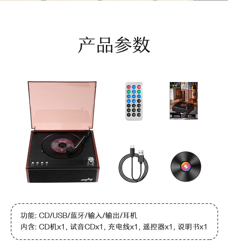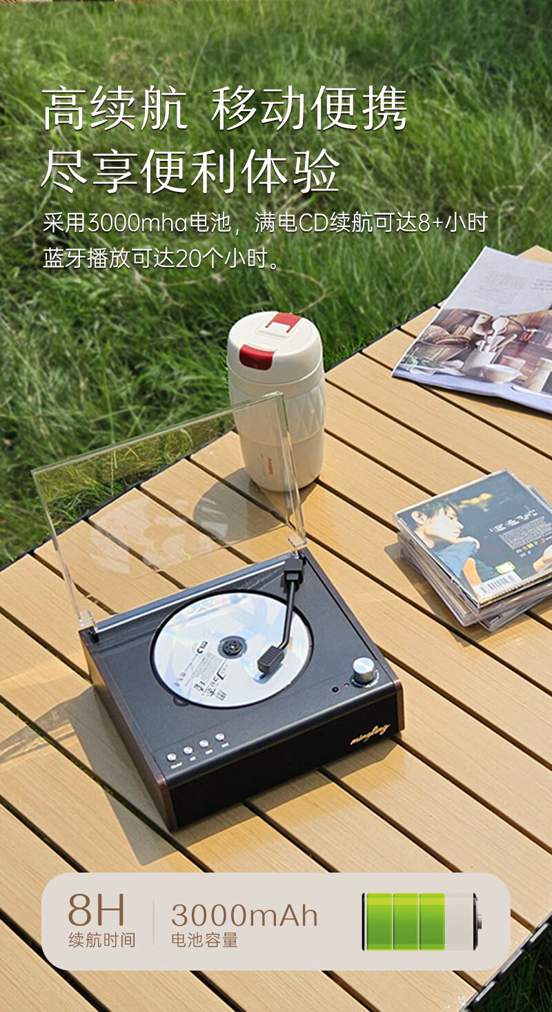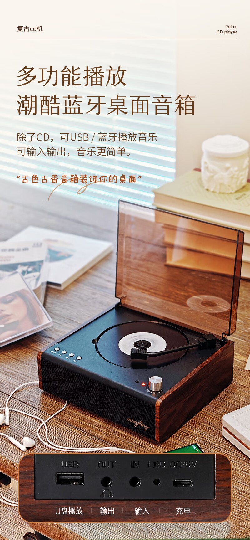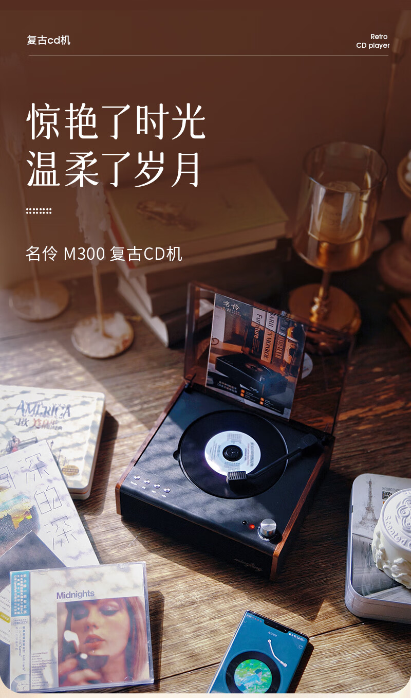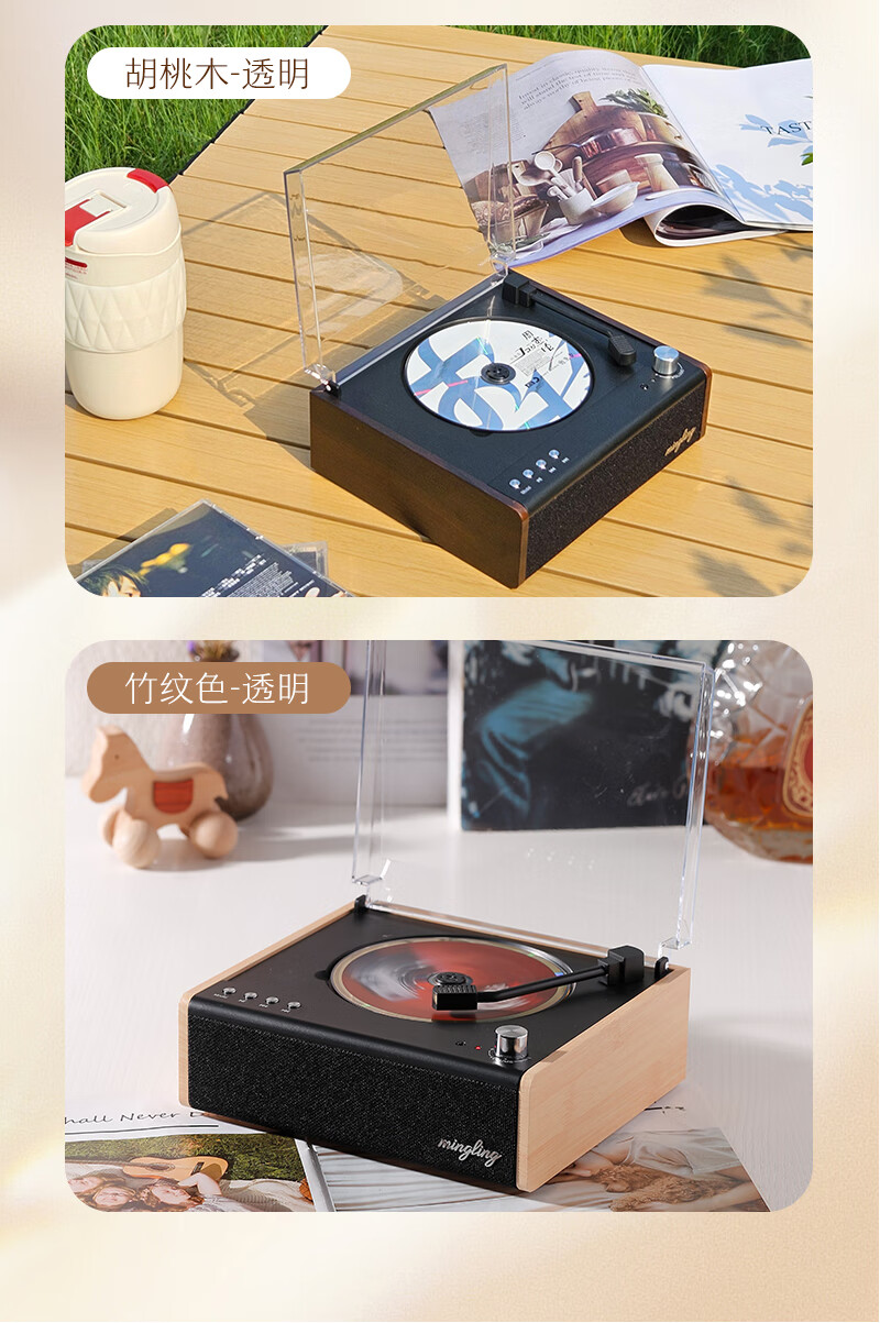 名伶M300黑胶复古CD机播放机听专辑蓝牙播放多功能桌面音箱生日礼物精致摆设 湖水蓝