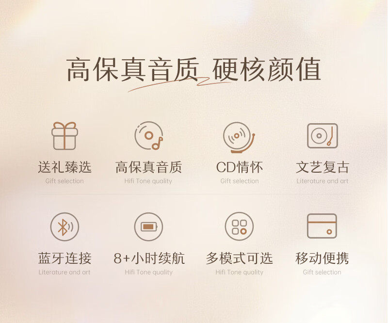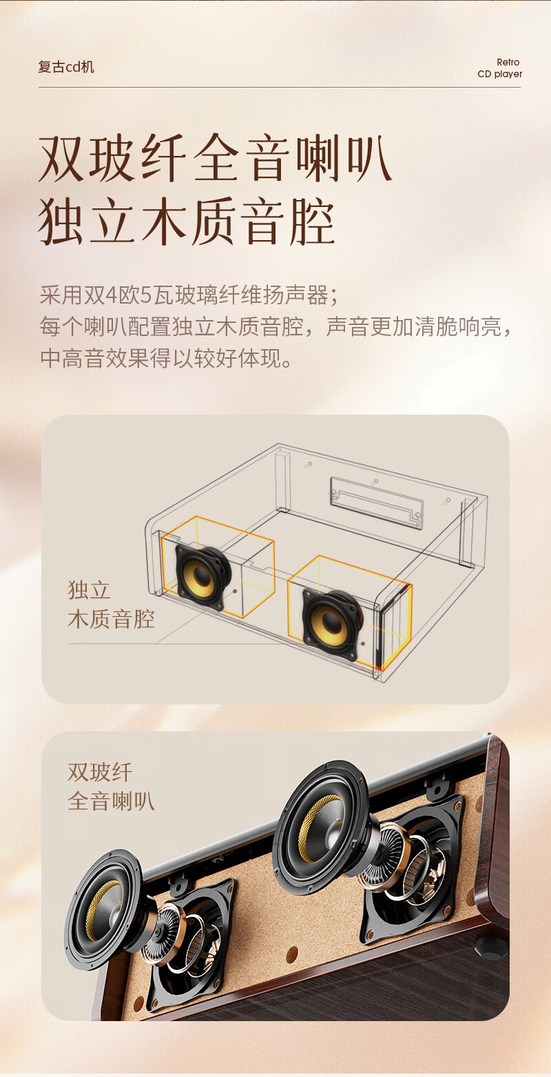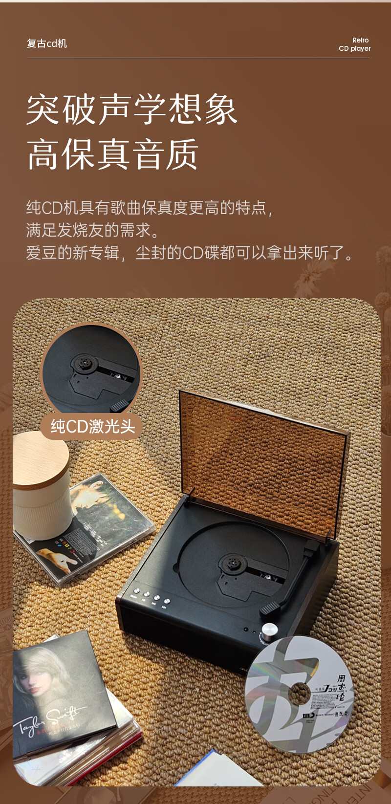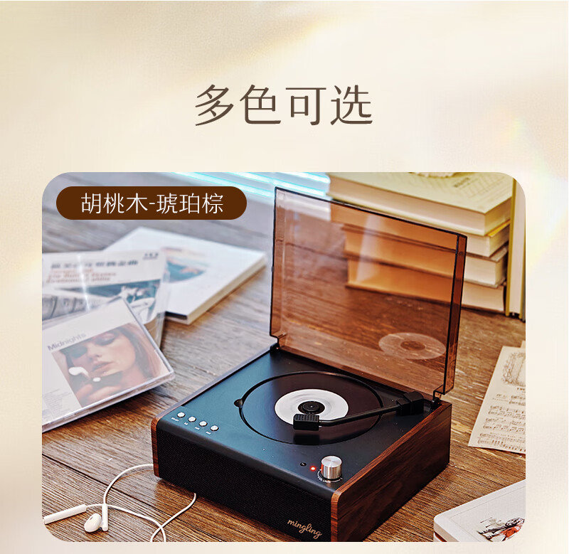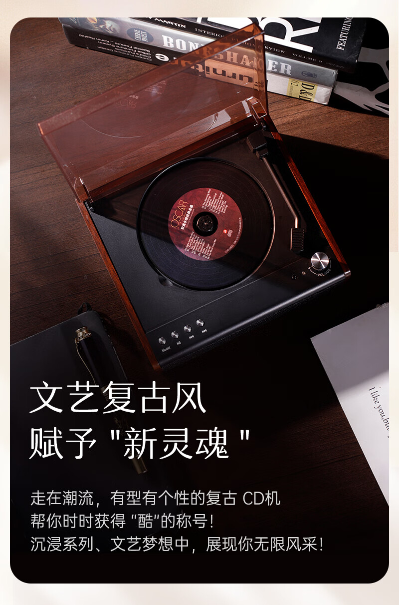 名伶M300黑胶复古CD机播放机听专辑蓝牙播放多功能桌面音箱生日礼物精致摆设 湖水蓝