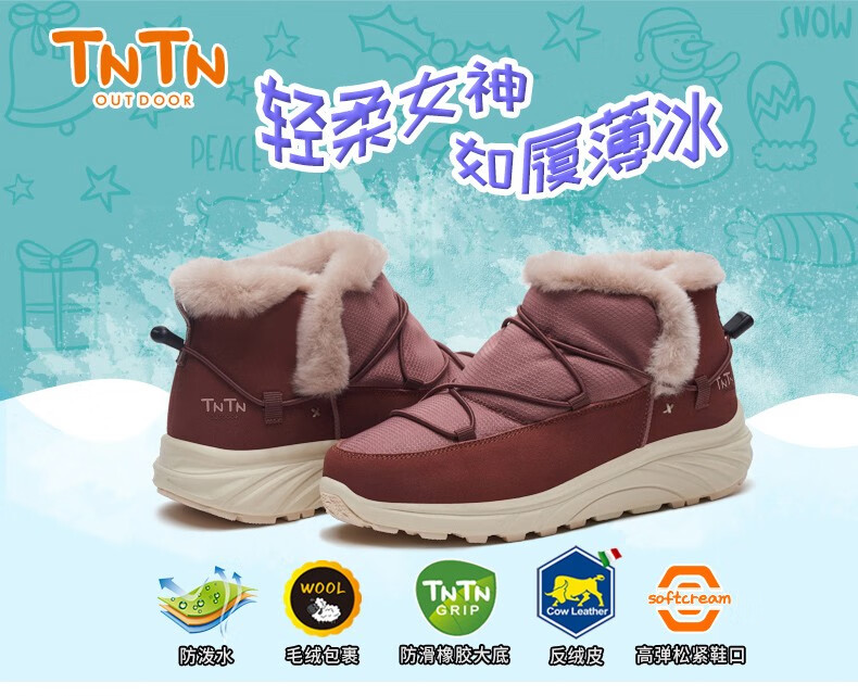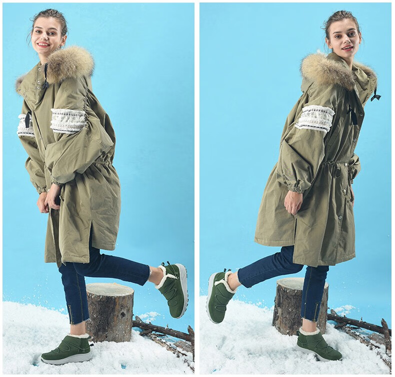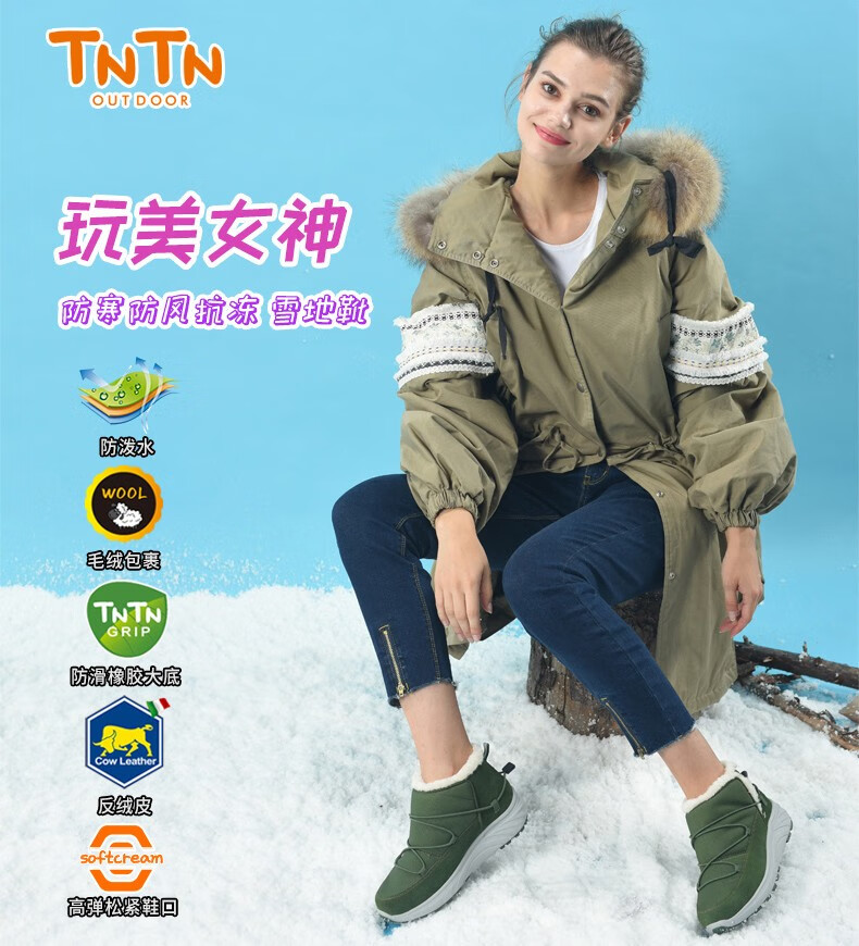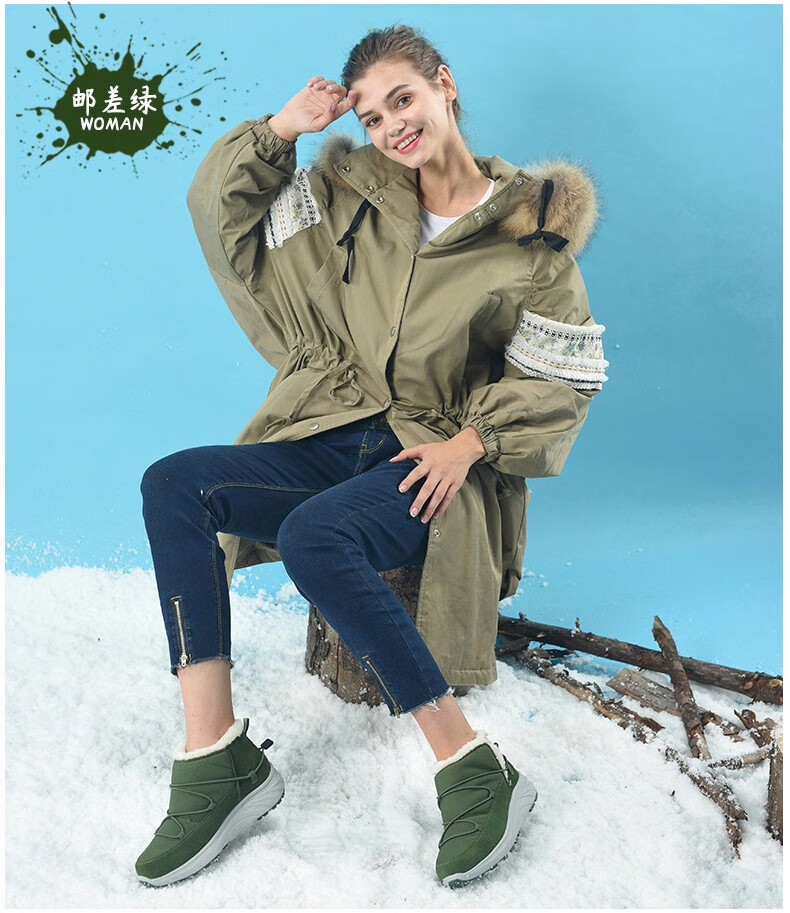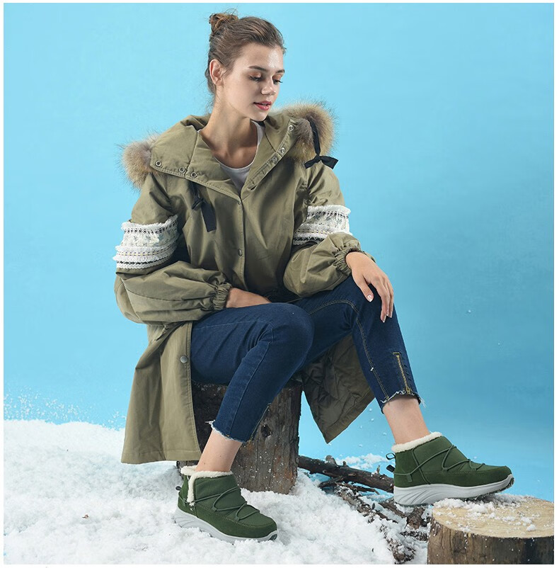 TNTN户外马丁冬季保暖防寒防水哈尔滨东北羊毛加厚绒女士雪地靴棉鞋子 邮差绿 36 偏小请买大1码