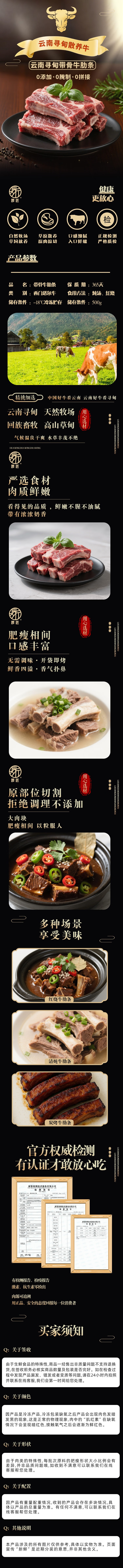 啰匠云南高山寻甸谷饲西门塔尔牛肋条肉新鲜去骨牛肋肉清真500g 带骨牛肋条3袋