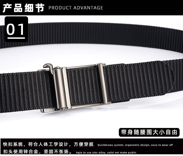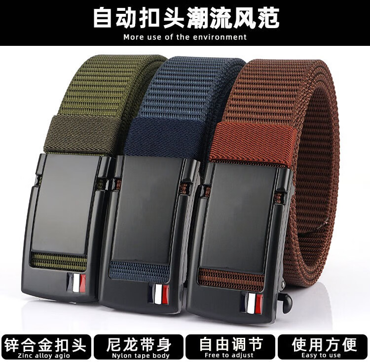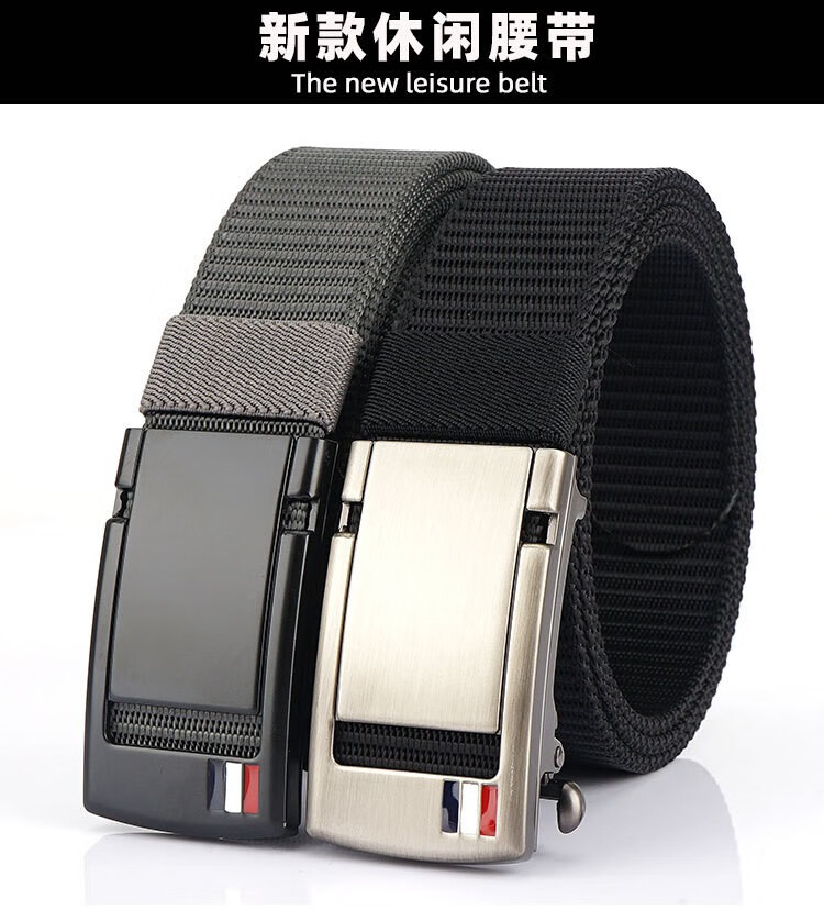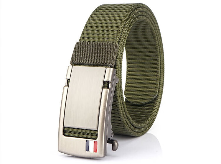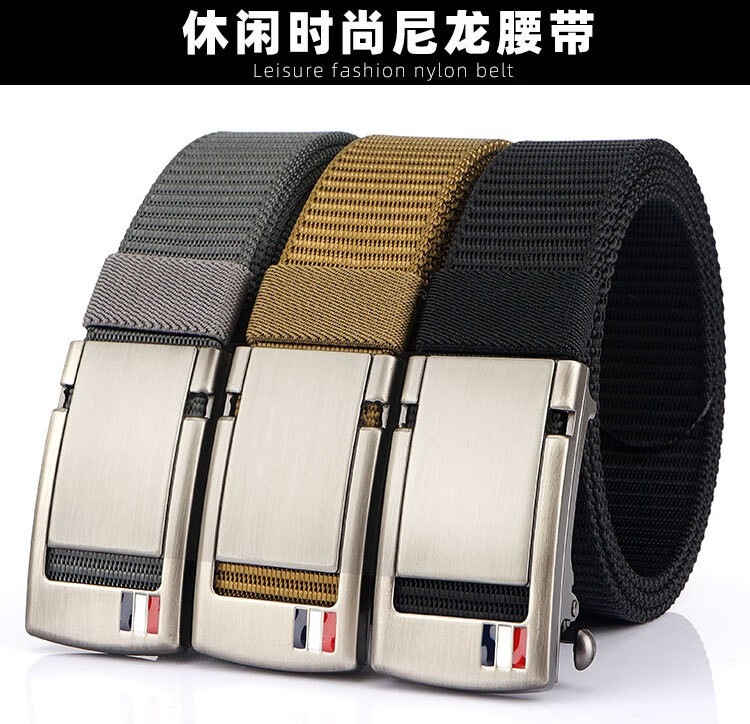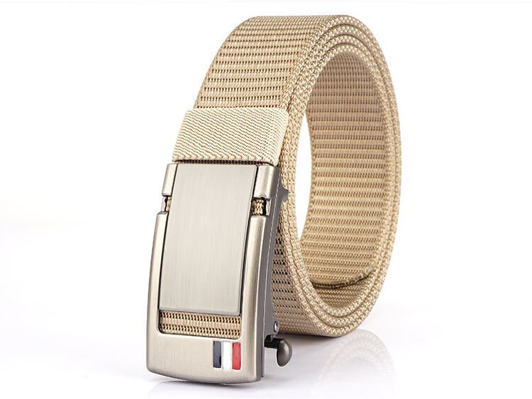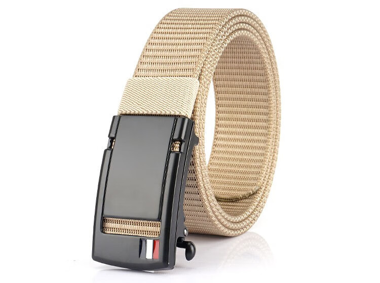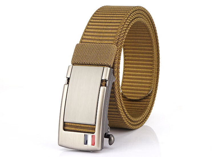 JEEP SPIRIT男士休闲加厚尼龙腰带布质无牙情人节皮带帆布裤带青年内扣内穿式 银扣--卡其色 120cm