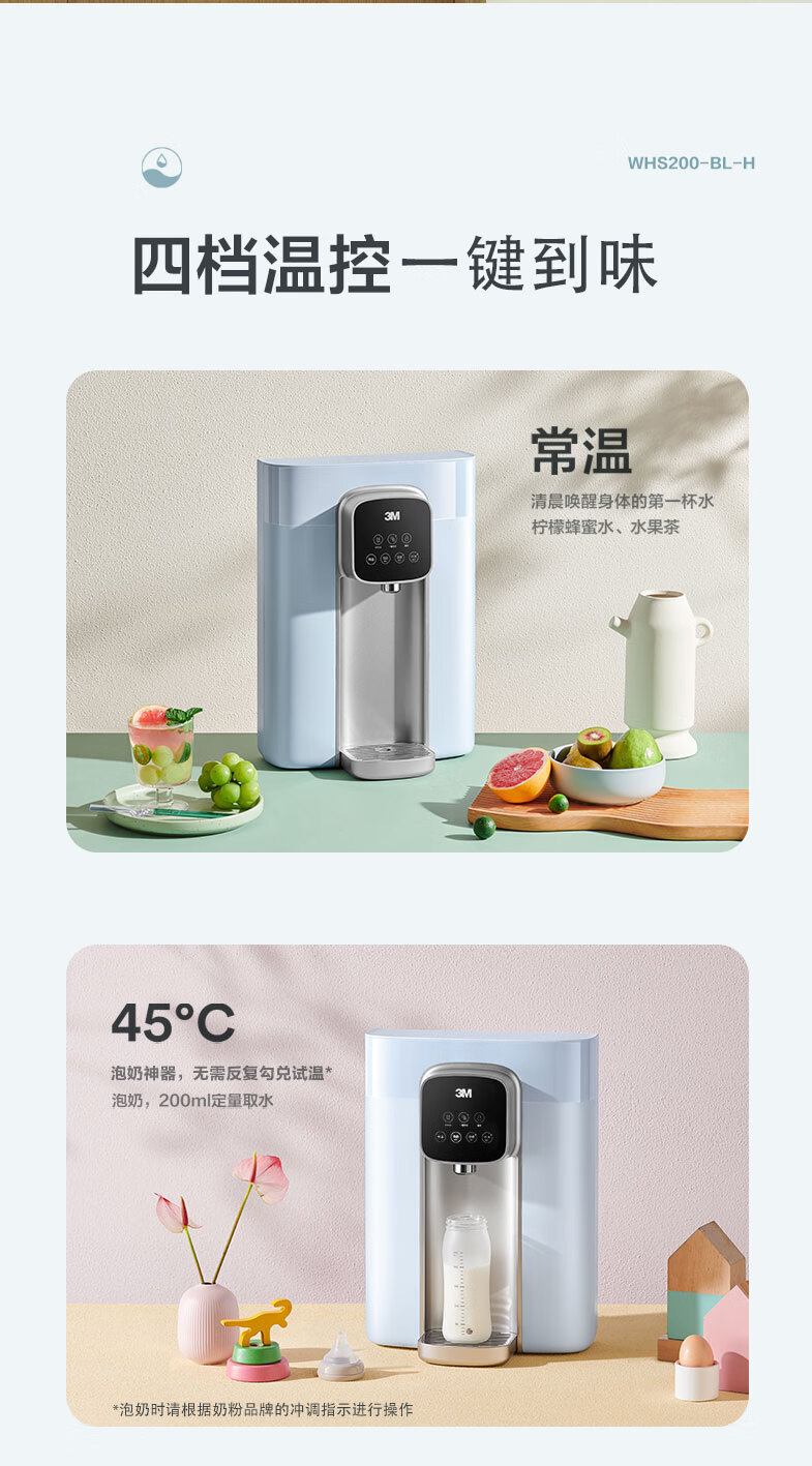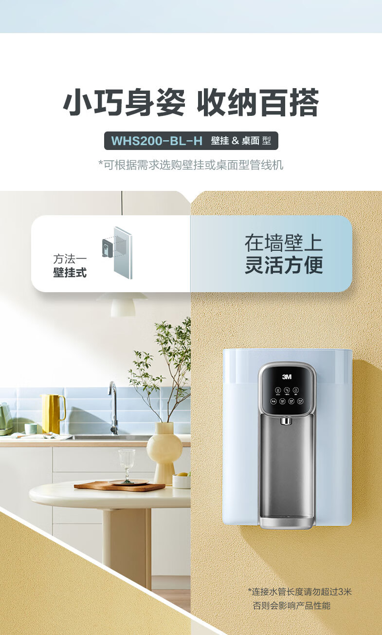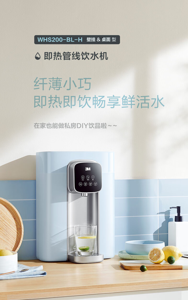 3M壁挂式一体机净水器直饮管线机饮水机多功能即热泡奶喝茶神器WHS200型饮水机 WHS200即热挂管线机