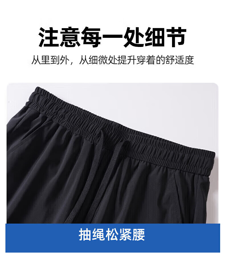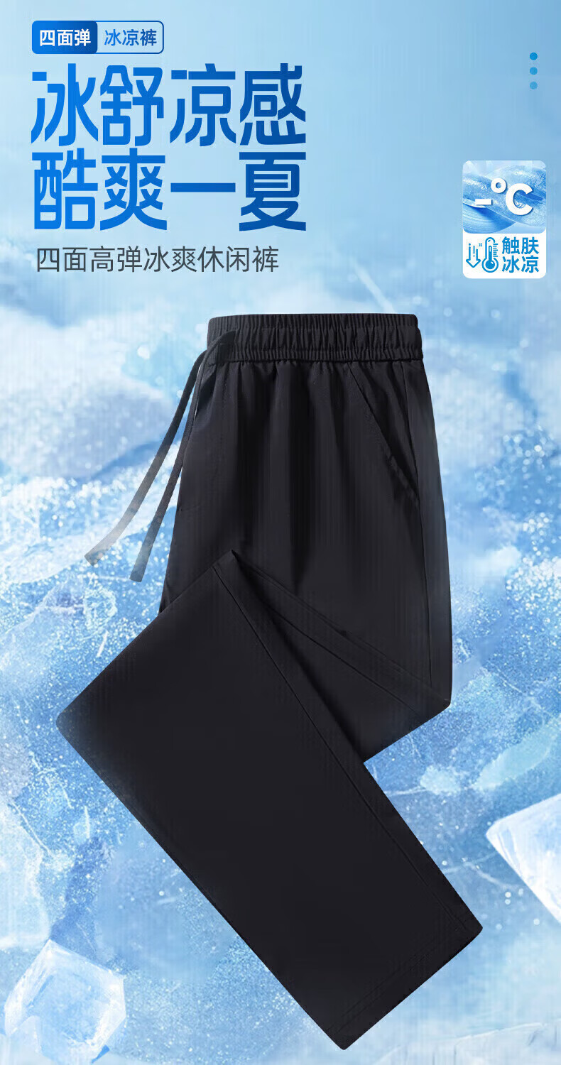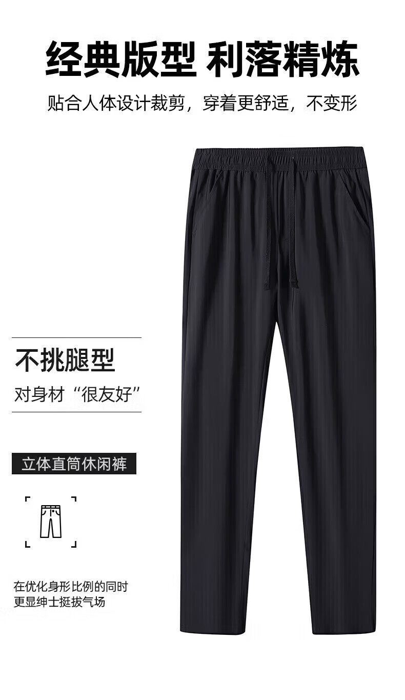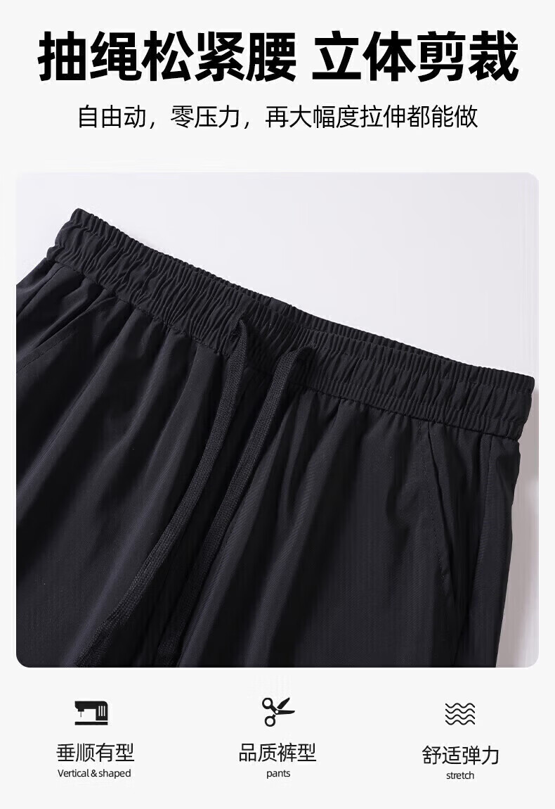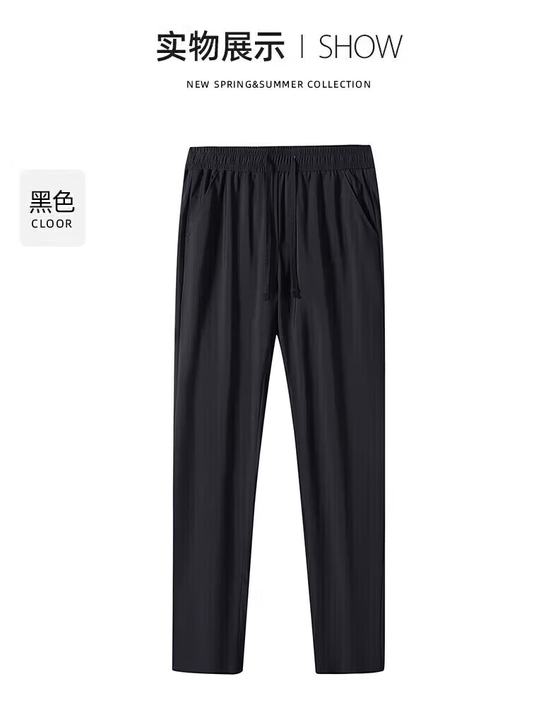 罗蒙(ROMON)冰丝速干休闲裤男夏季新款轻薄凉感透气纯色松紧腰宽松长裤子男 黑色【平脚】 2XL (185) 【建议155-170斤】