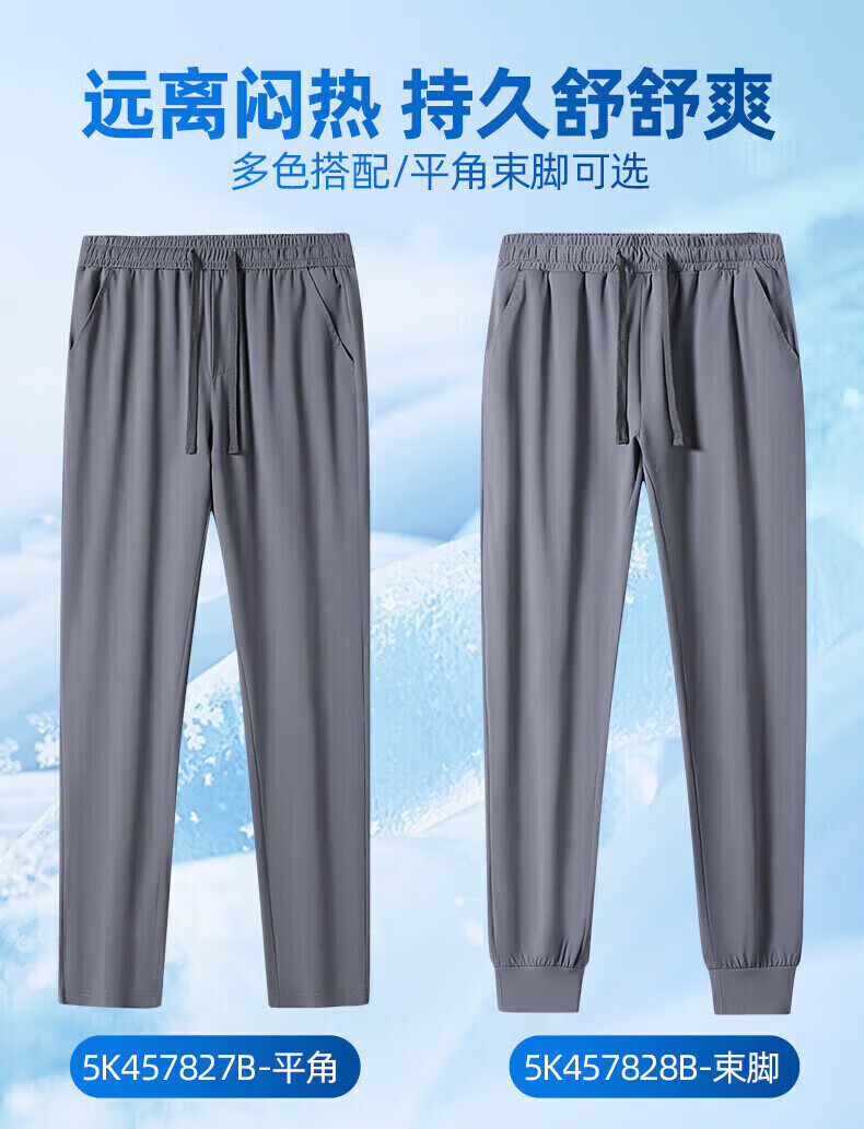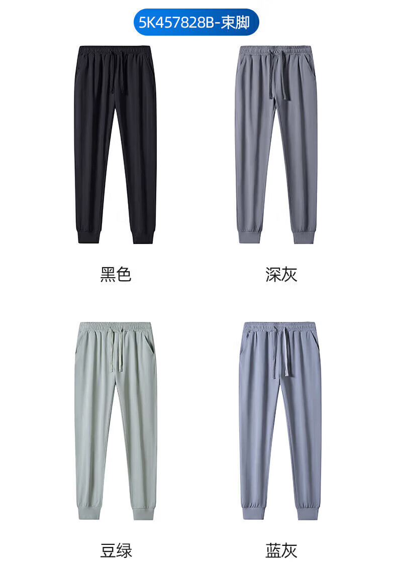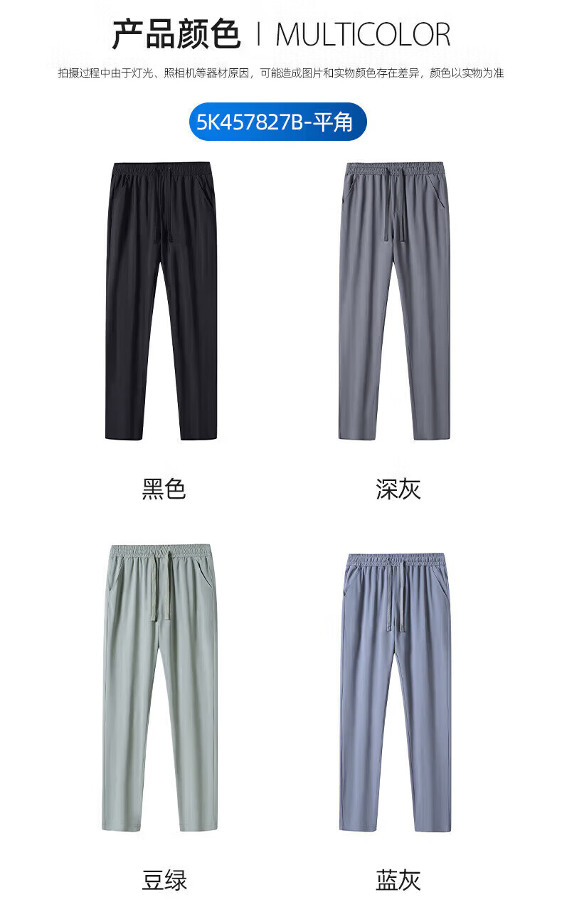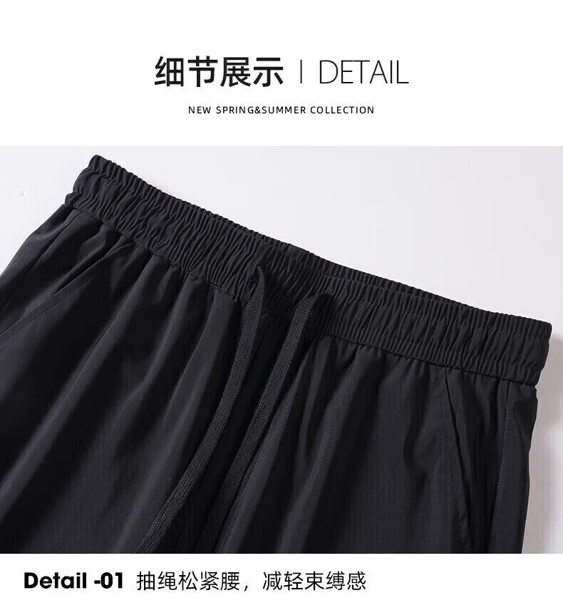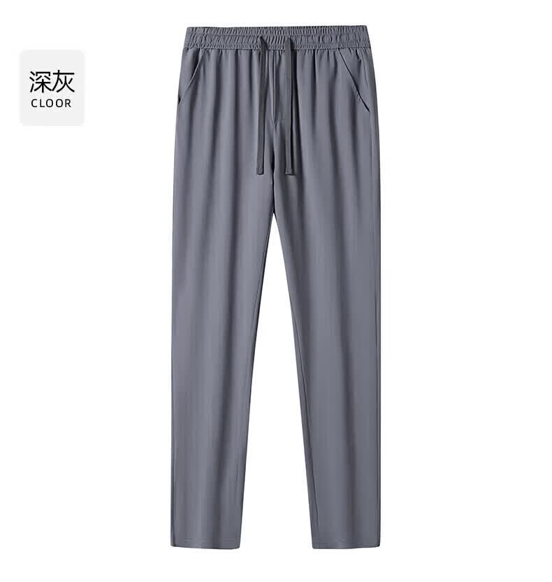 罗蒙(ROMON)冰丝速干休闲裤男夏季新款轻薄凉感透气纯色松紧腰宽松长裤子男 黑色【平脚】 2XL (185) 【建议155-170斤】