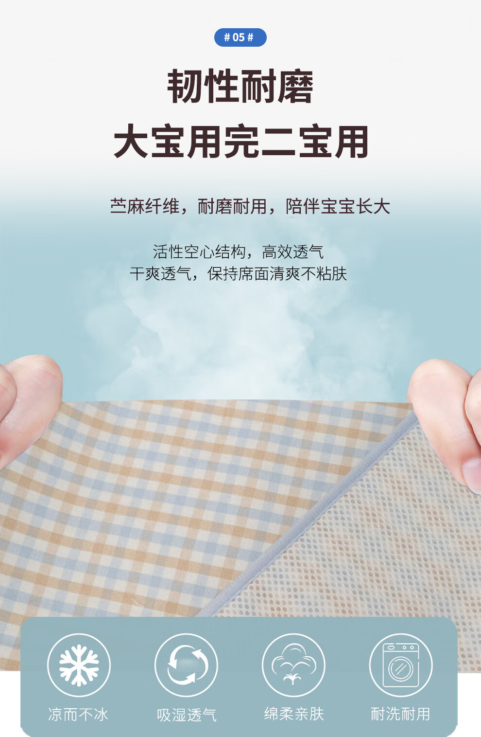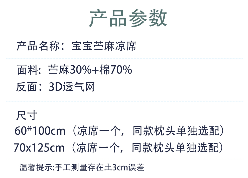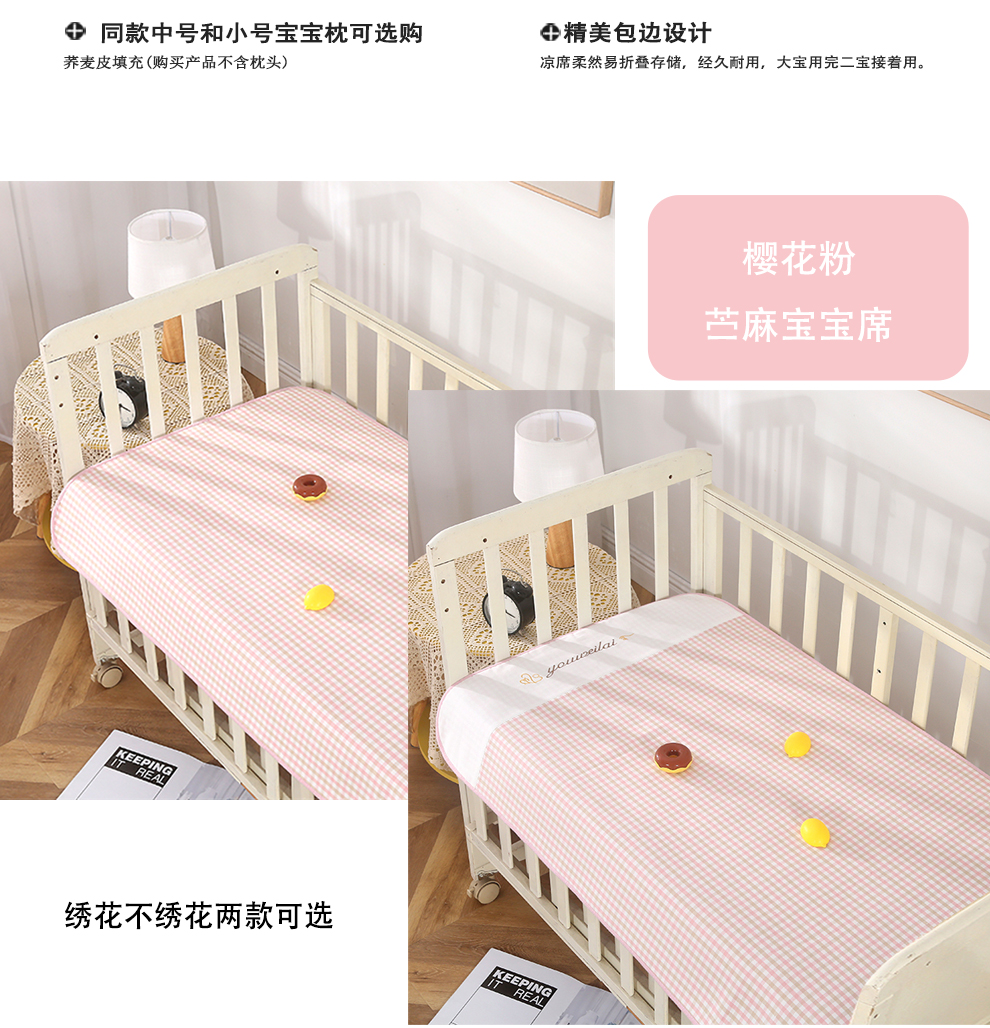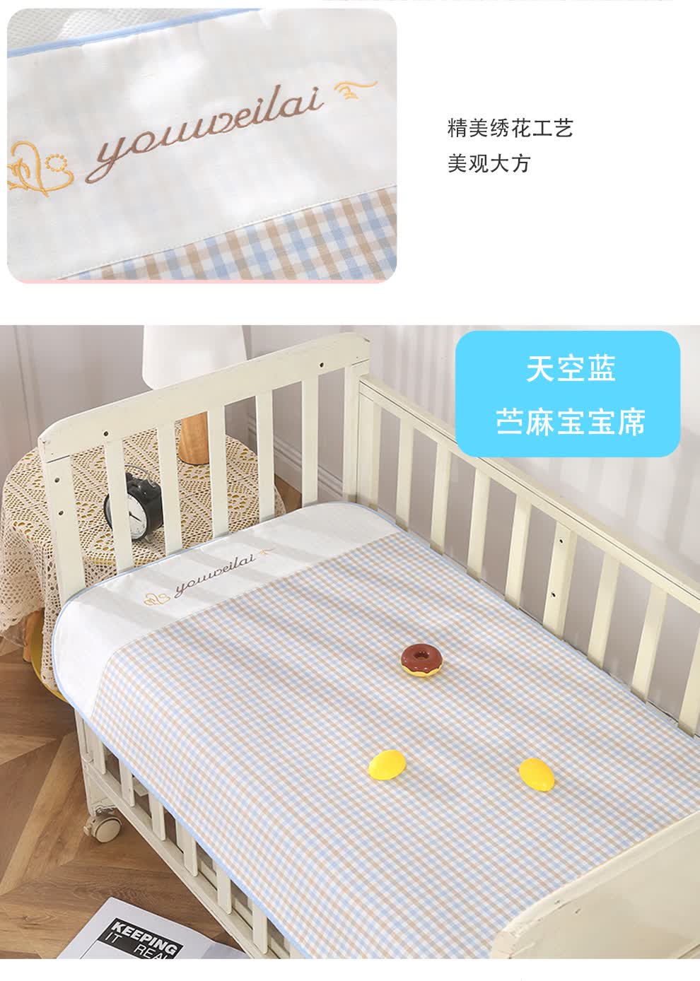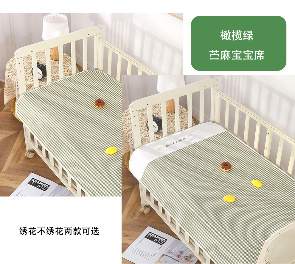 凉意婴幼儿苎麻凉席夏季新生宝宝用品童床凉席幼儿园午睡透气吸汗凉席 橄榄绿宝宝席 60*100cm