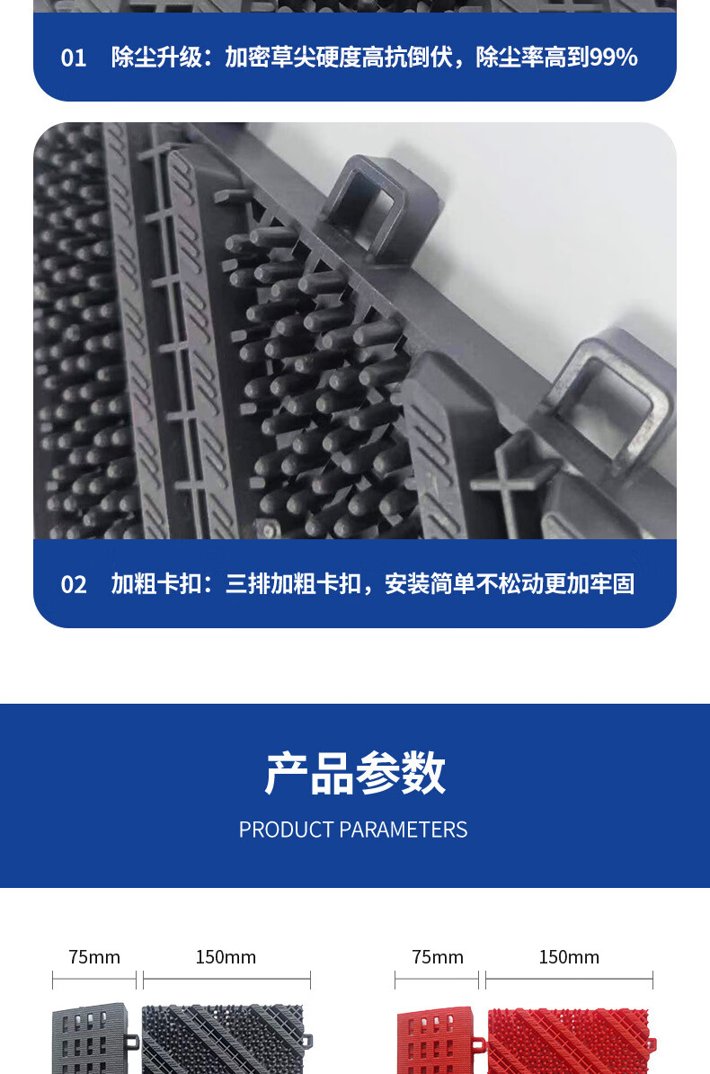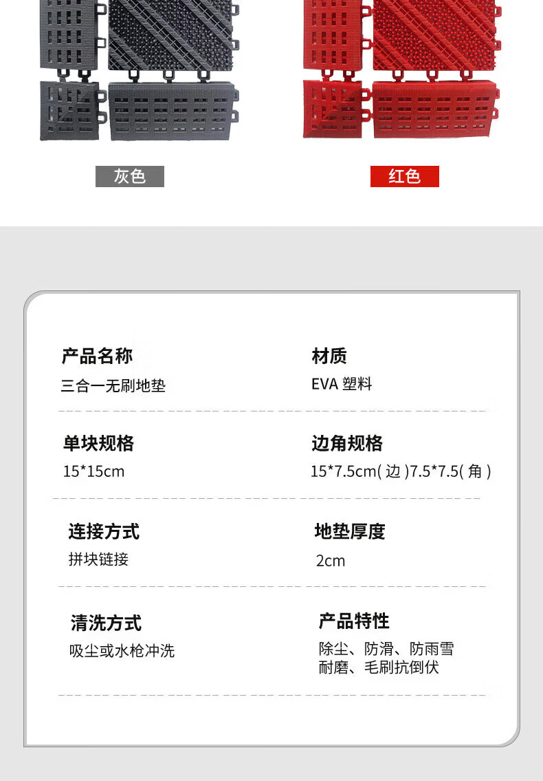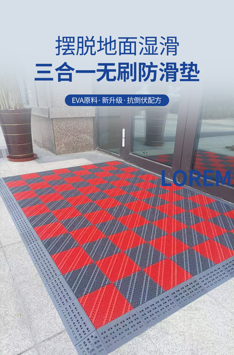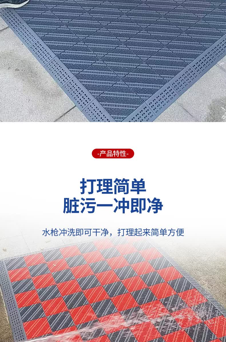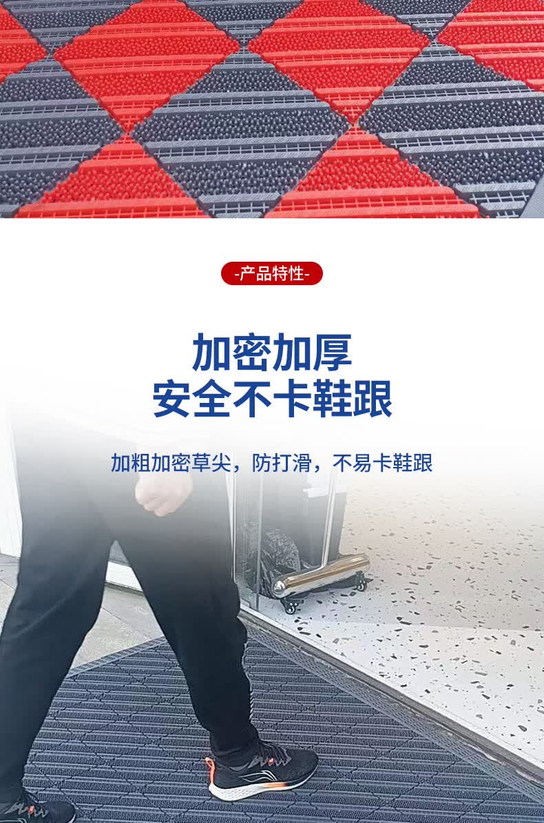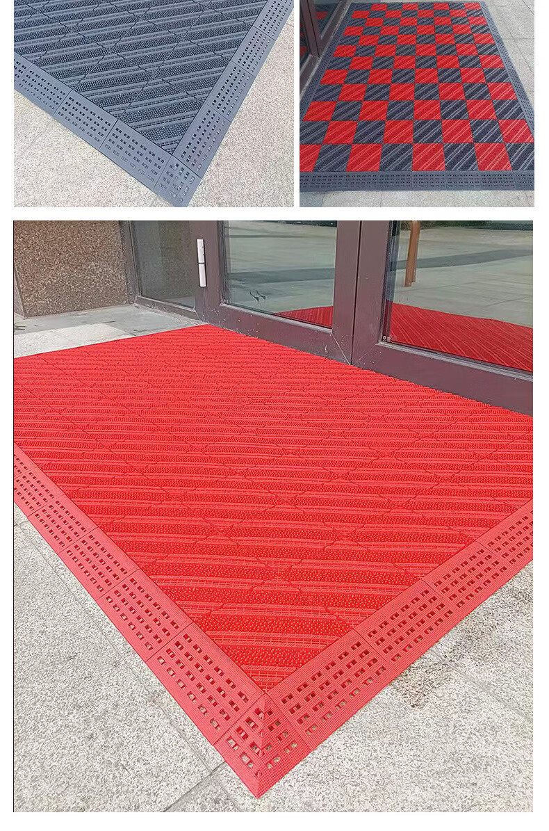 商用拼接地垫酒店大门口定制模块地毯入户蹭脚垫室外防滑拼接地垫 无刷-灰色 90cm*60cm +橡胶锤