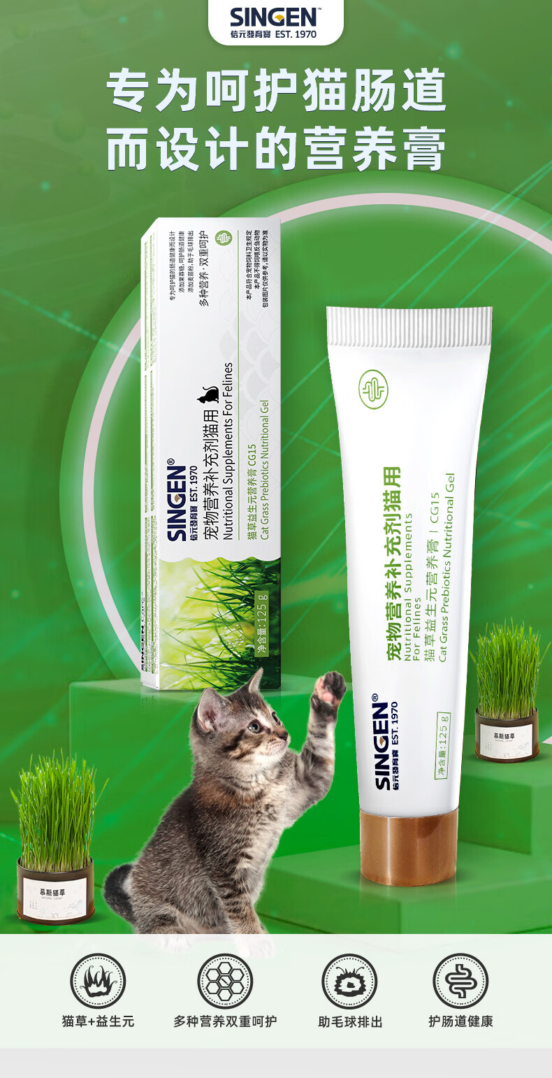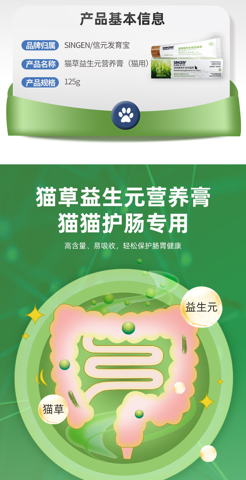 信元发育宝猫草益生元营养膏猫咪专用呵护调理肠胃健康温和化毛排毛美毛护肤 猫草益生元营养膏 125g*1支 CG15