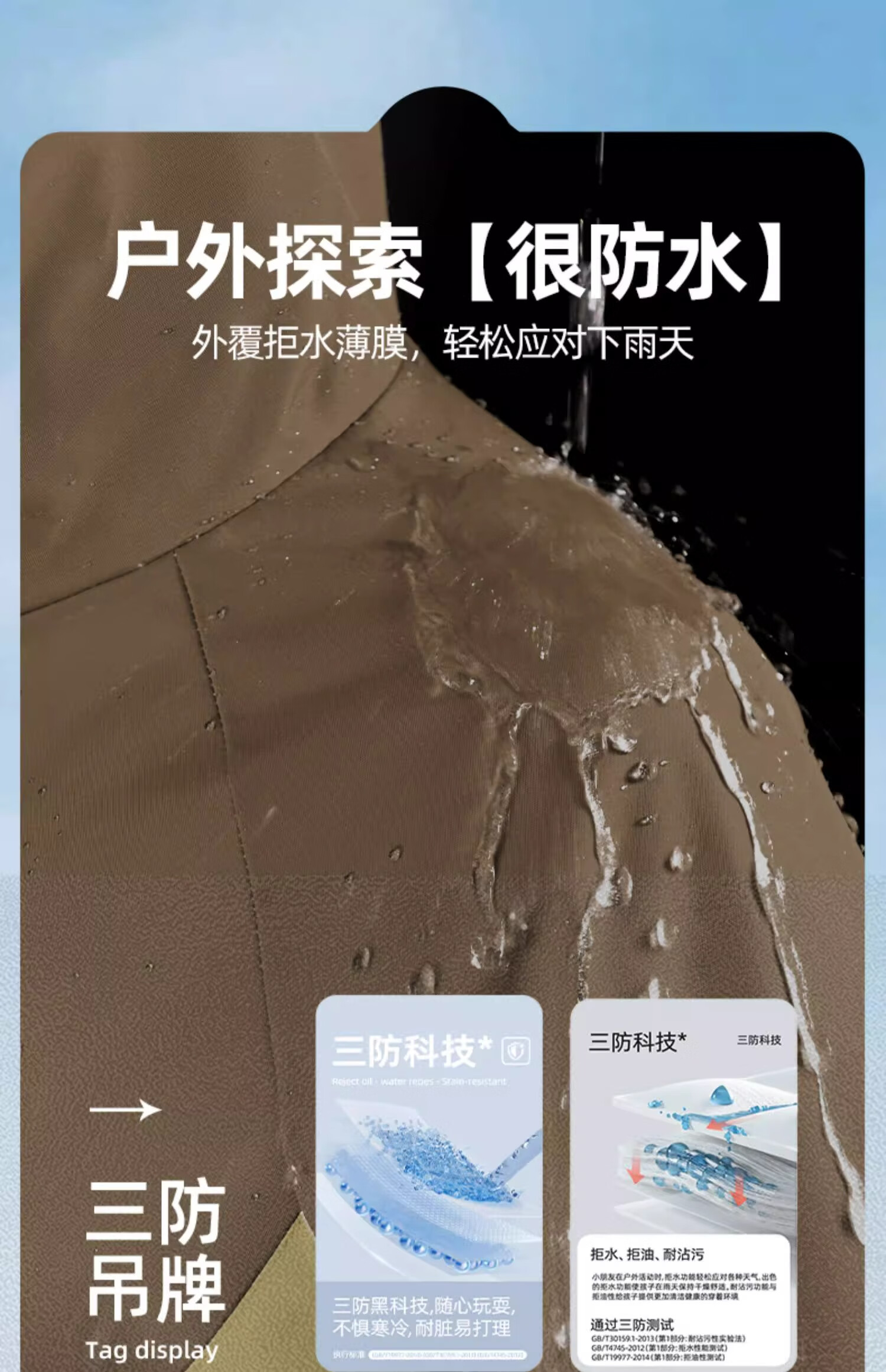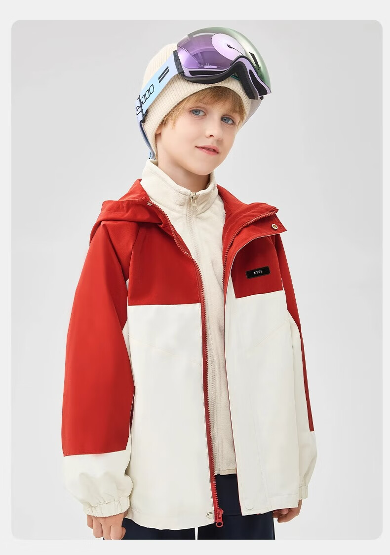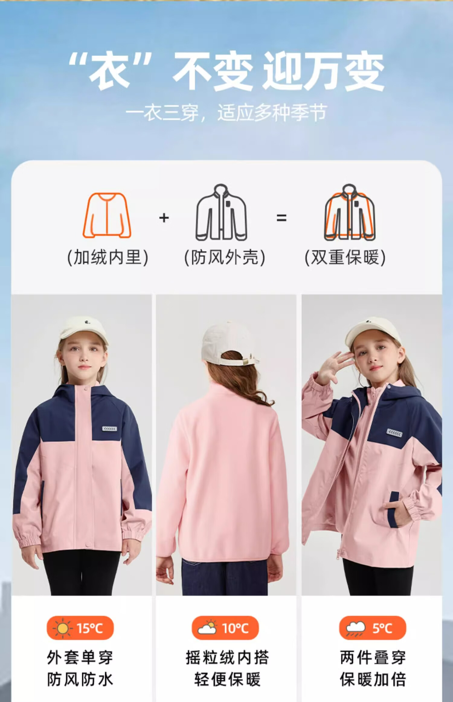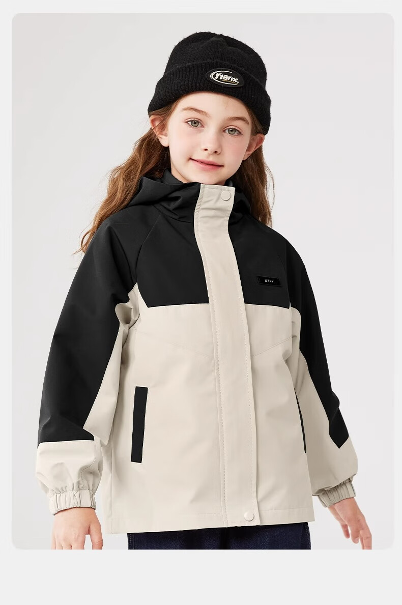 班纳班纳男童冲锋衣三合一2025新款儿童保暖童装秋冬男孩外套大童羽绒服 H通方形魔术贴K黑+纯色黑 160