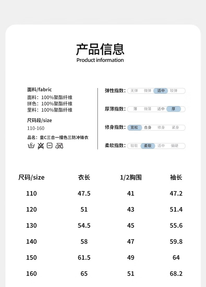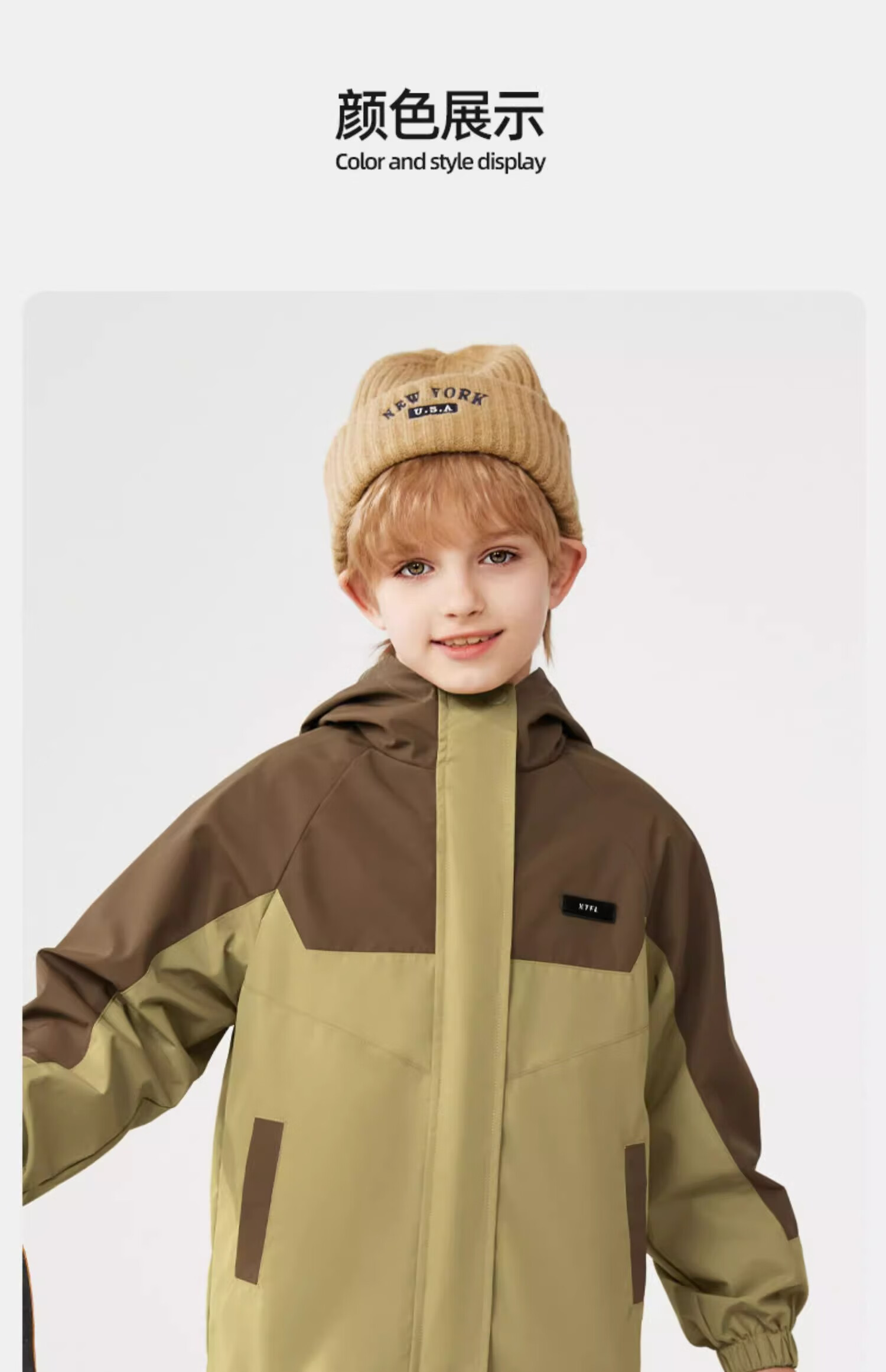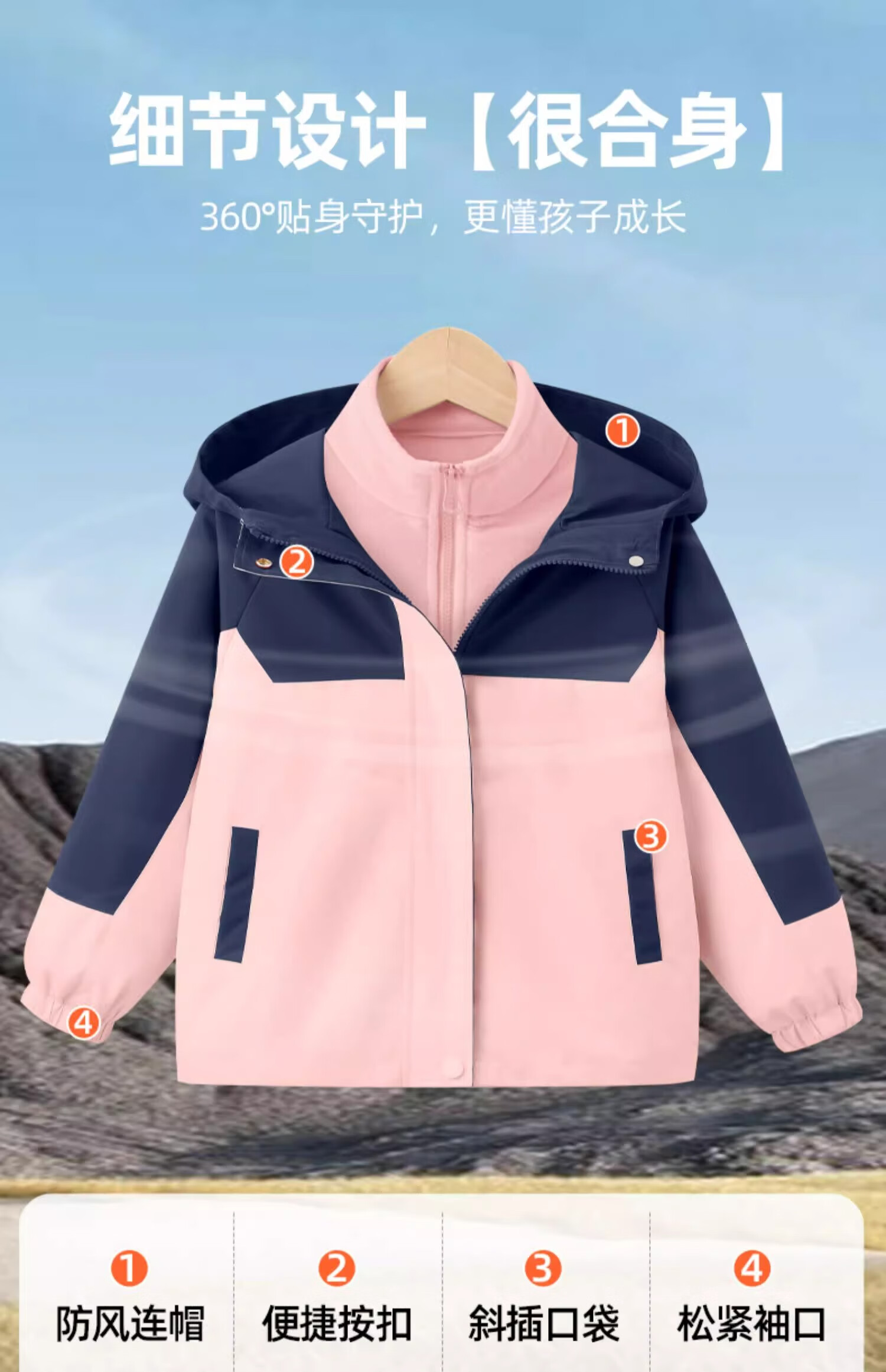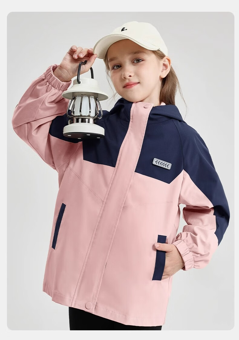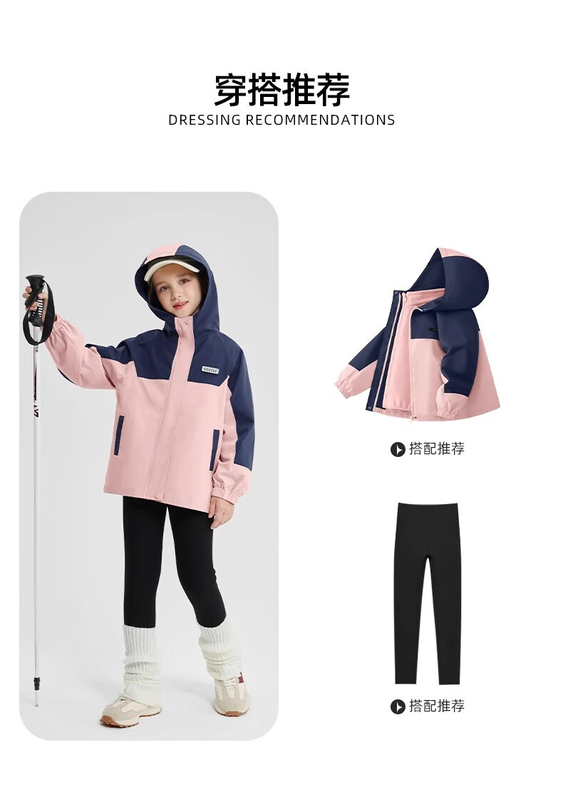 班纳班纳男童冲锋衣三合一2025新款儿童保暖童装秋冬男孩外套大童羽绒服 H通方形魔术贴K黑+纯色黑 160