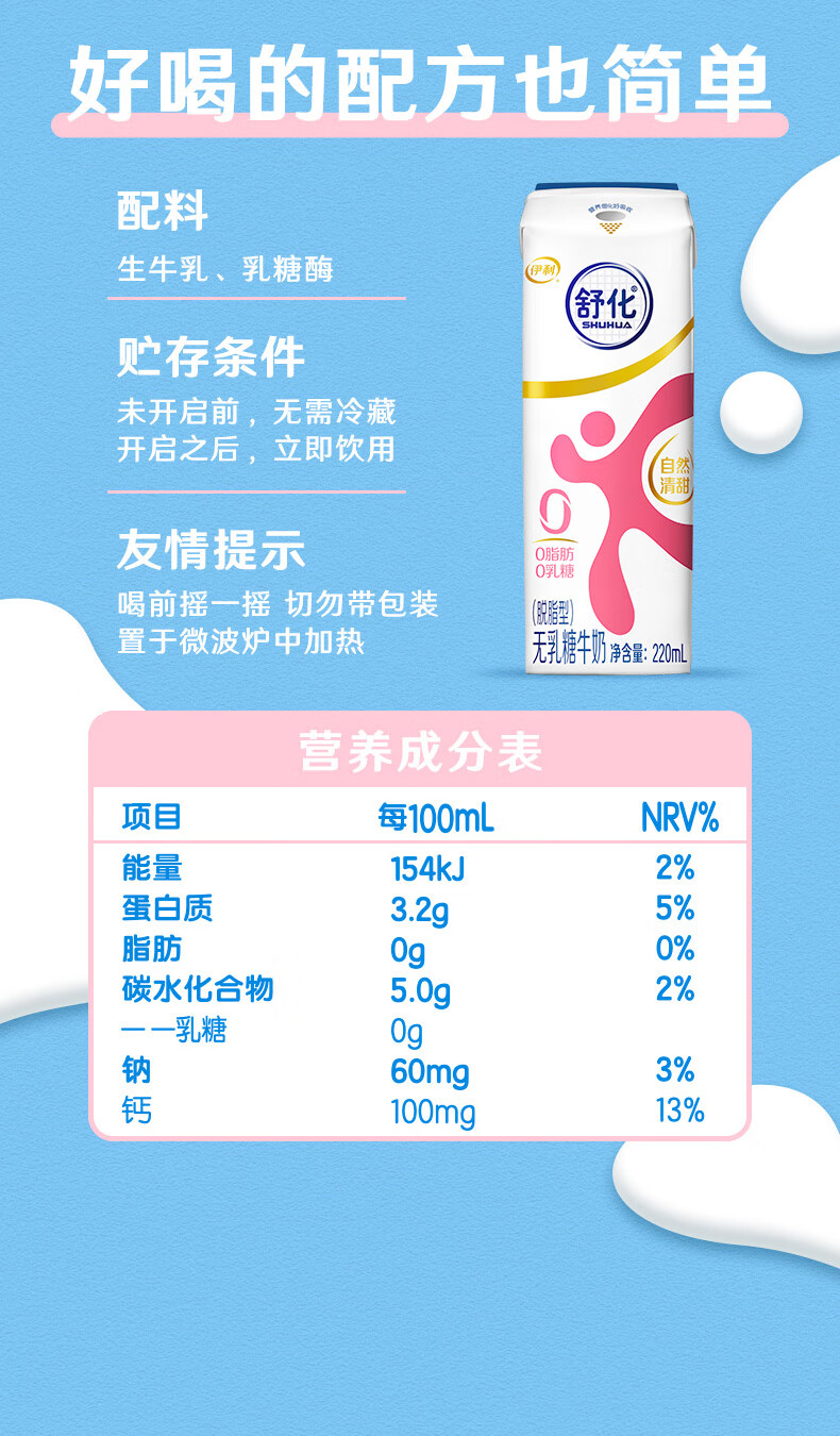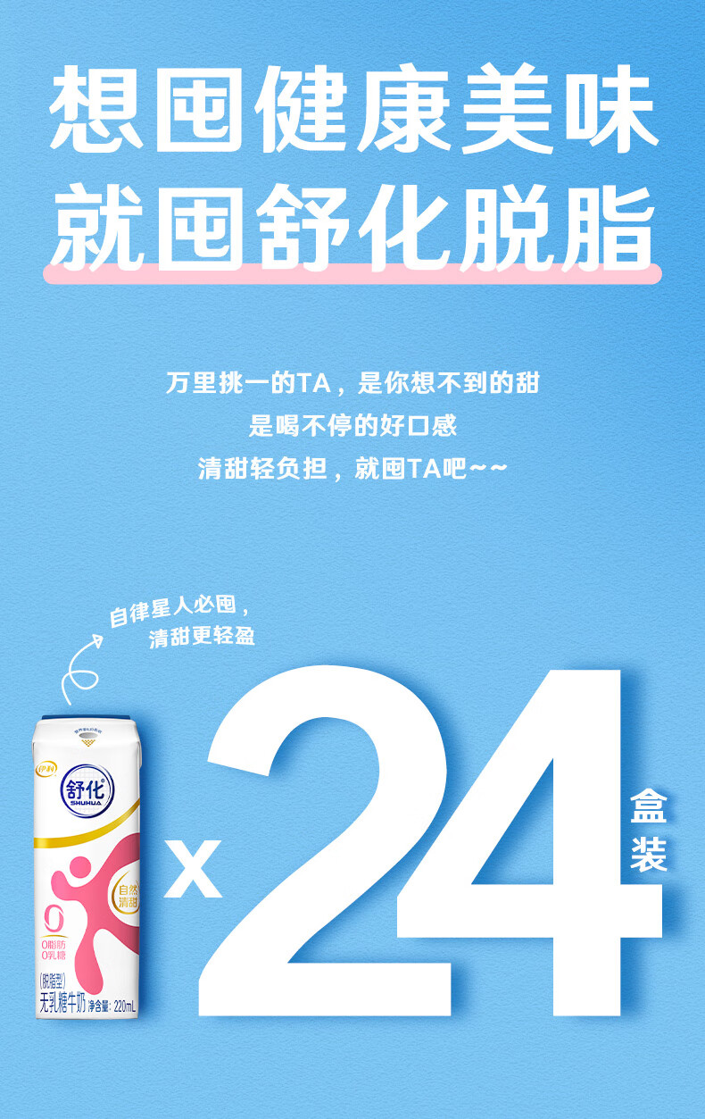 伊利舒化奶0乳糖牛奶脱脂220ml*24盒/箱 零乳糖 礼盒装 9月产