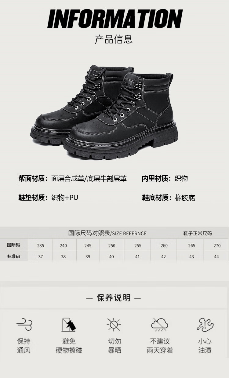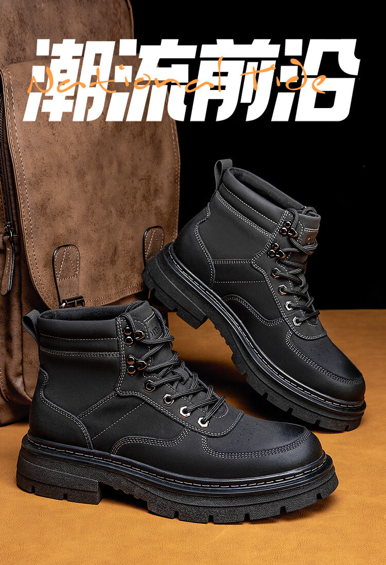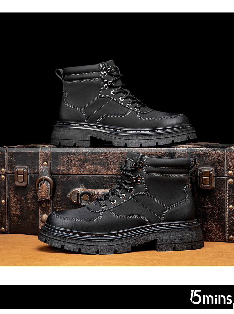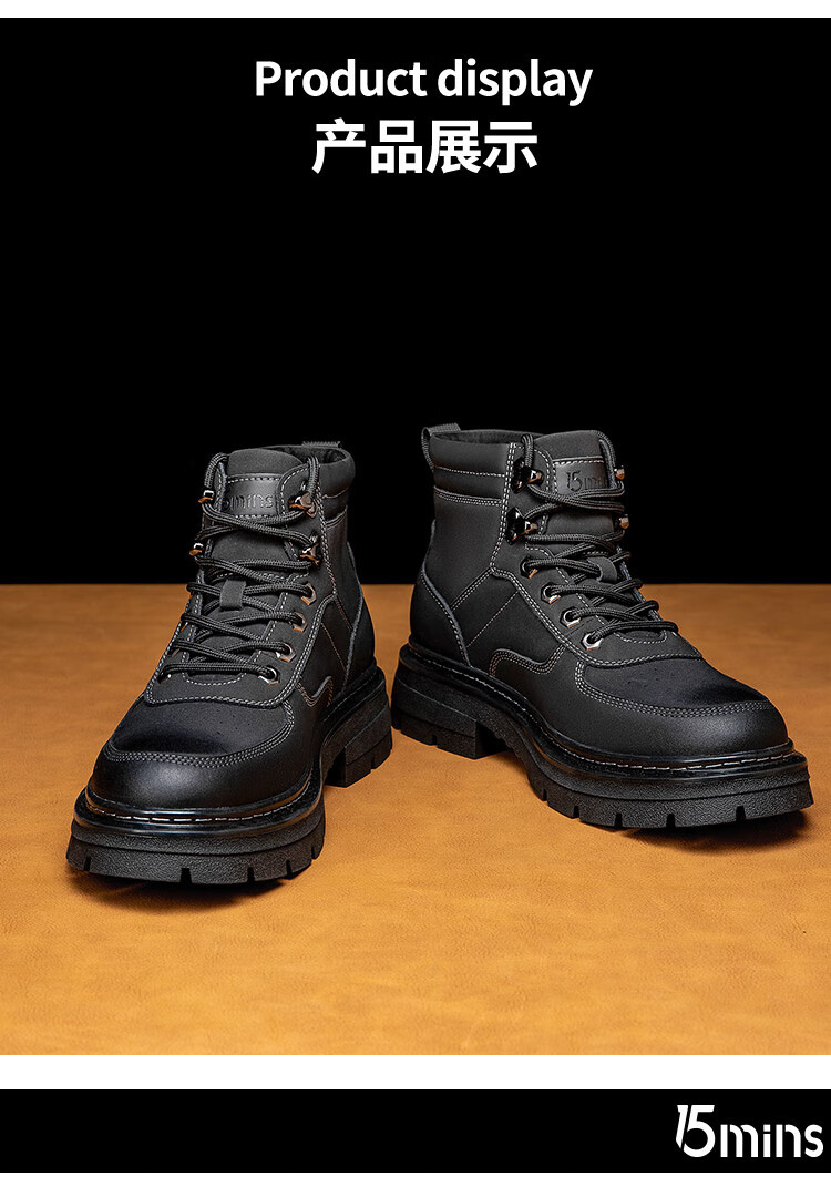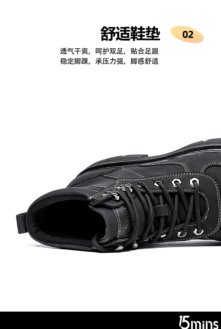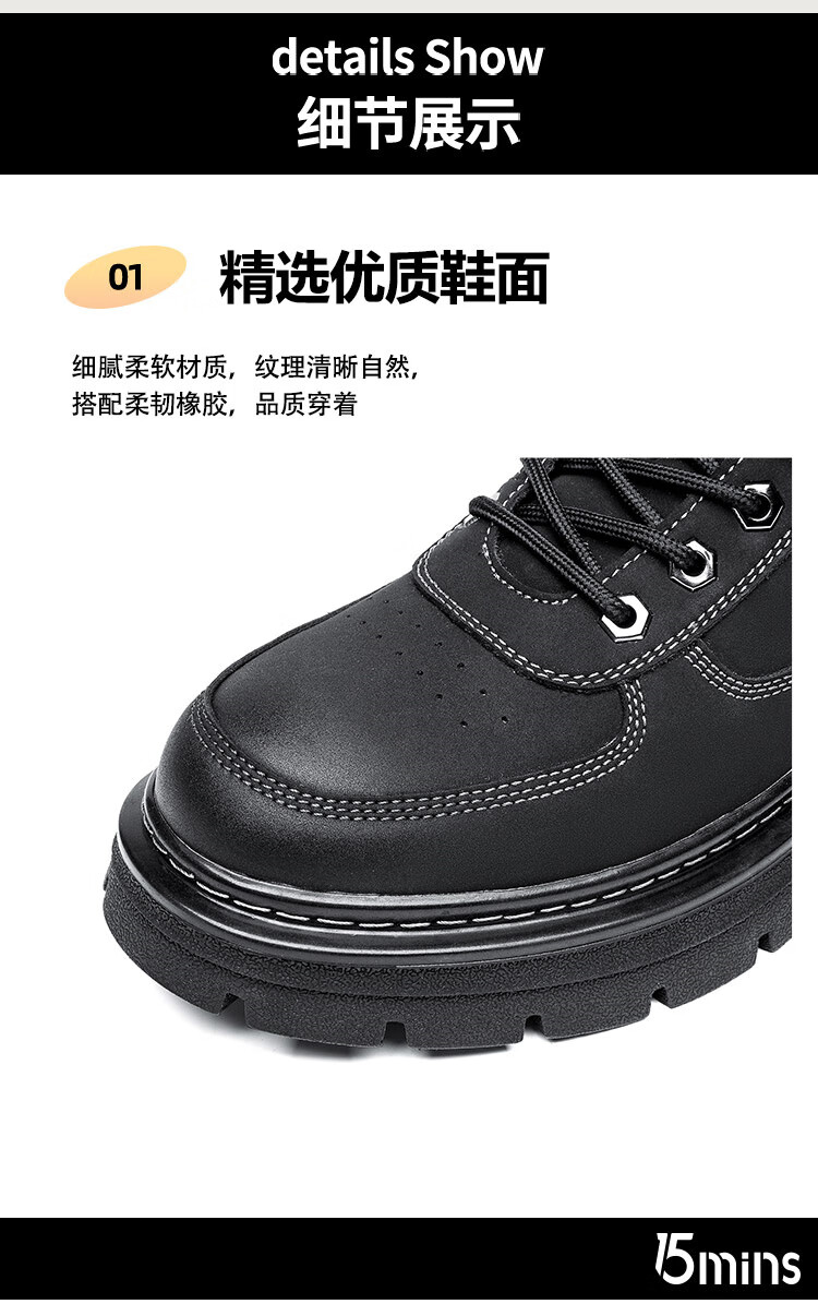 15分钟男士马丁靴时尚男靴舒适户外靴子皮靴男英伦工装靴 E1170 黑色 42