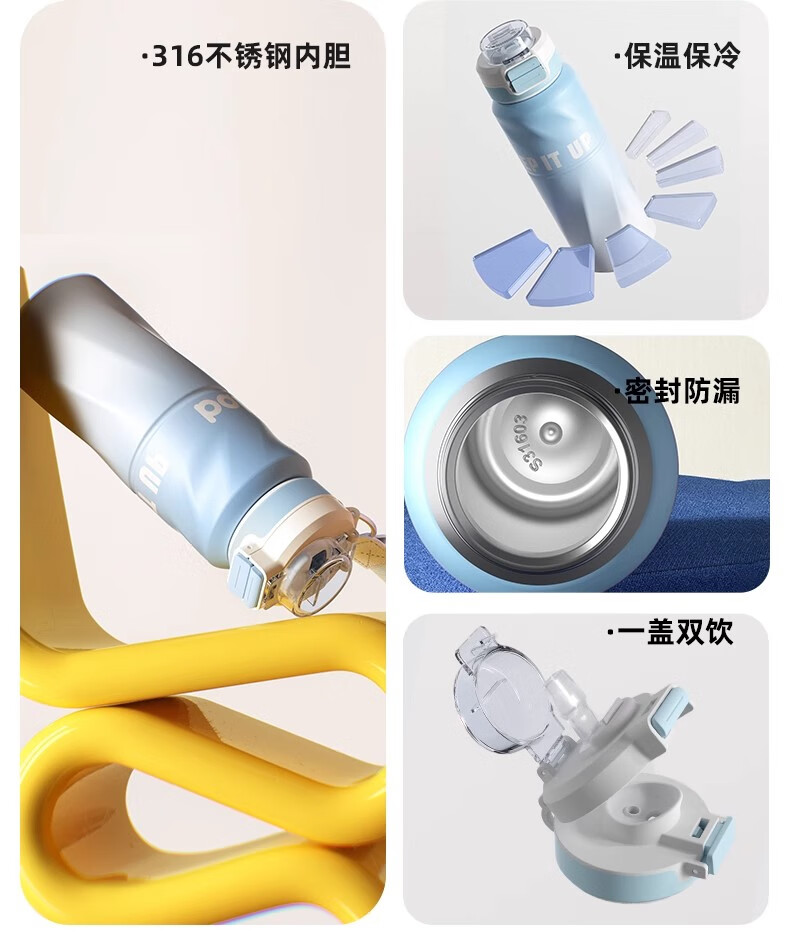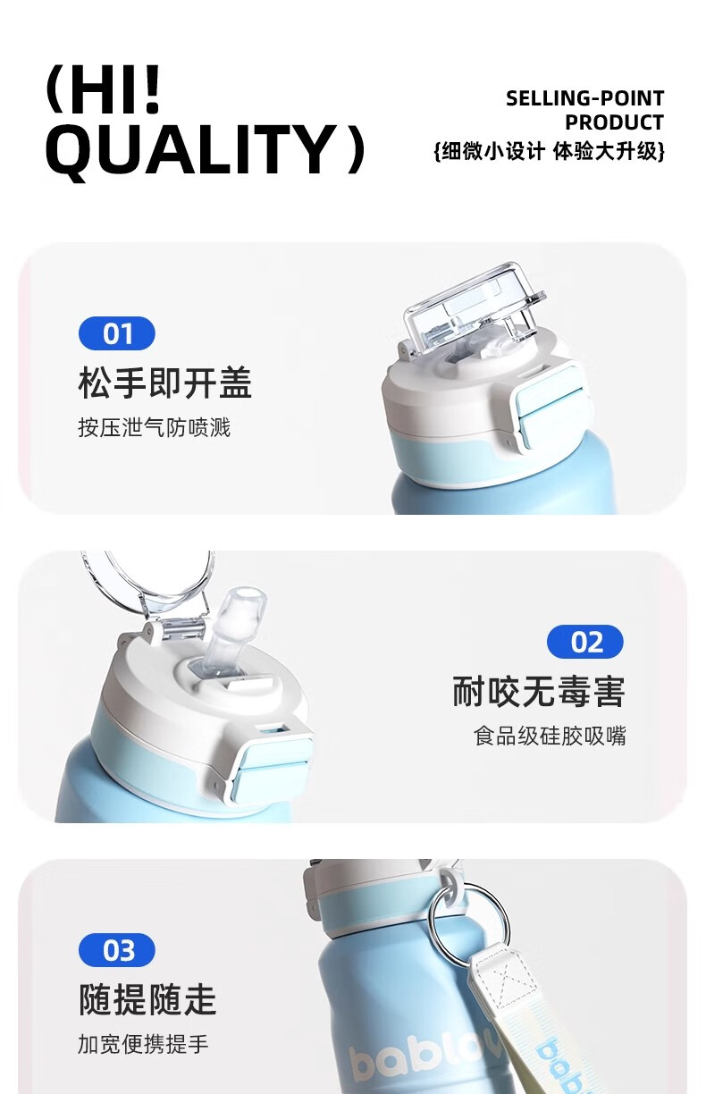 AILUKI日本保温杯大容量学生男女孩款儿童初高中上学校专用316运动吸管 团购 316不锈钢内胆