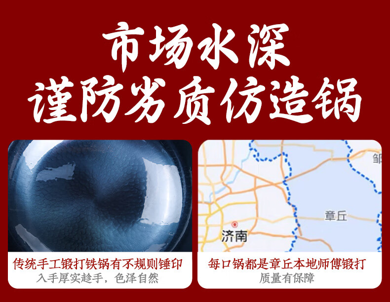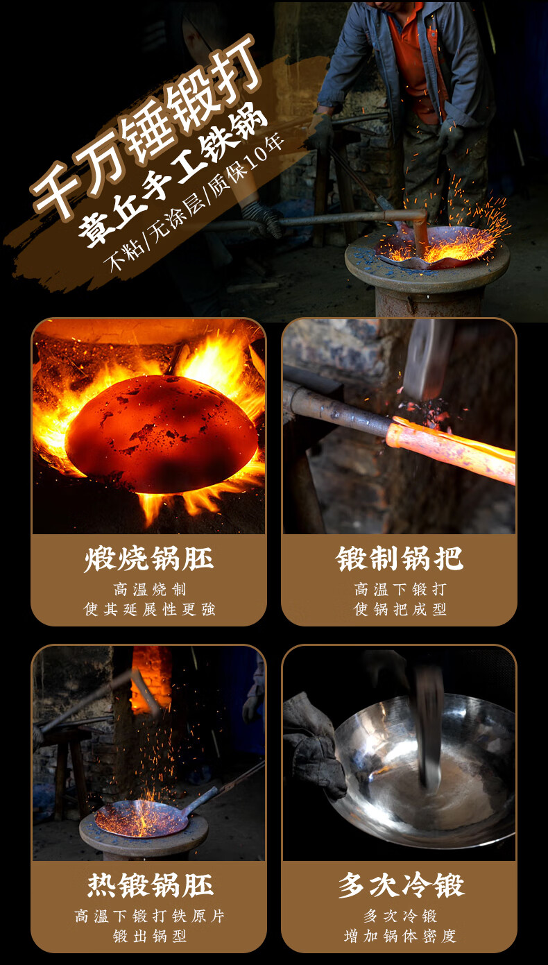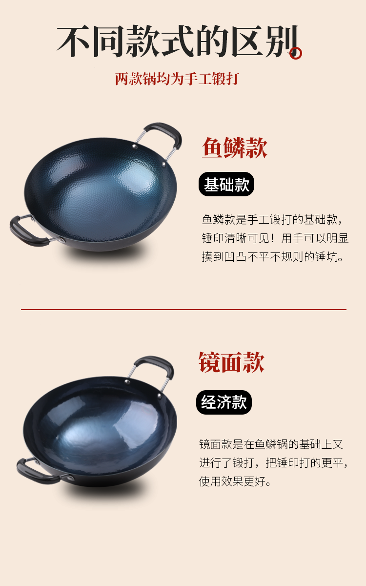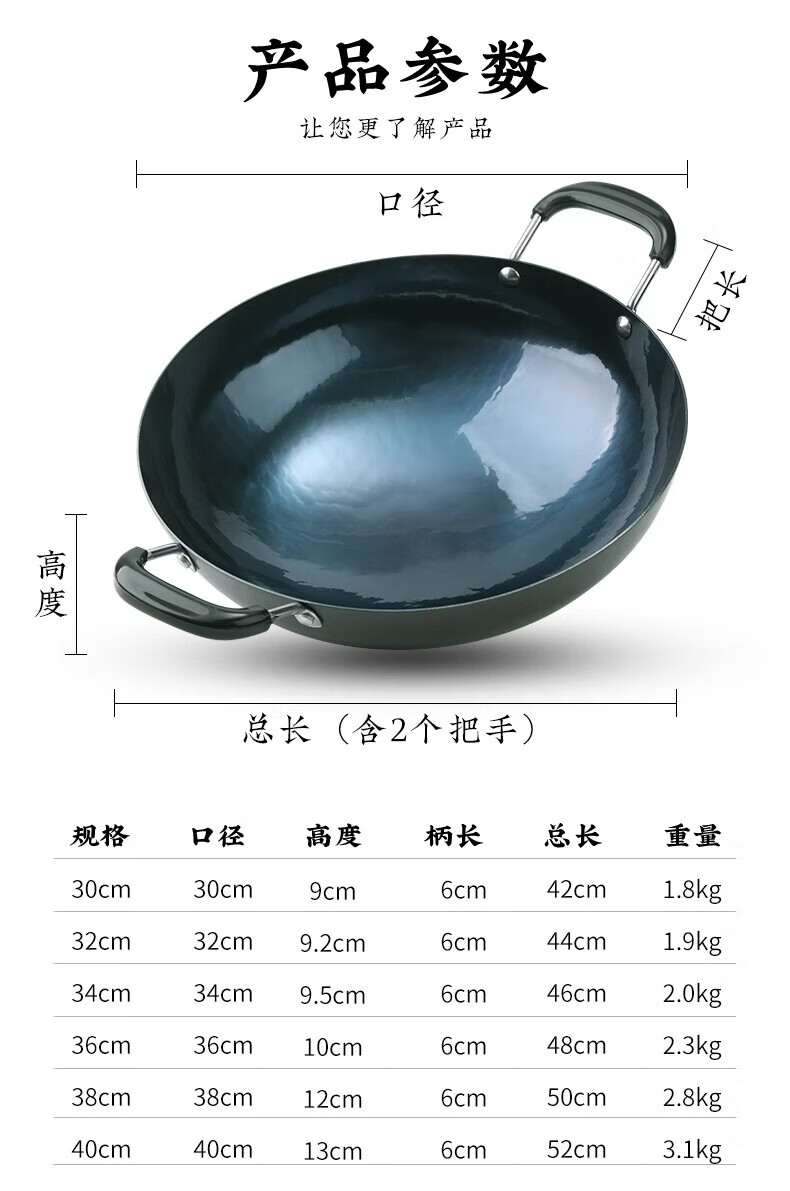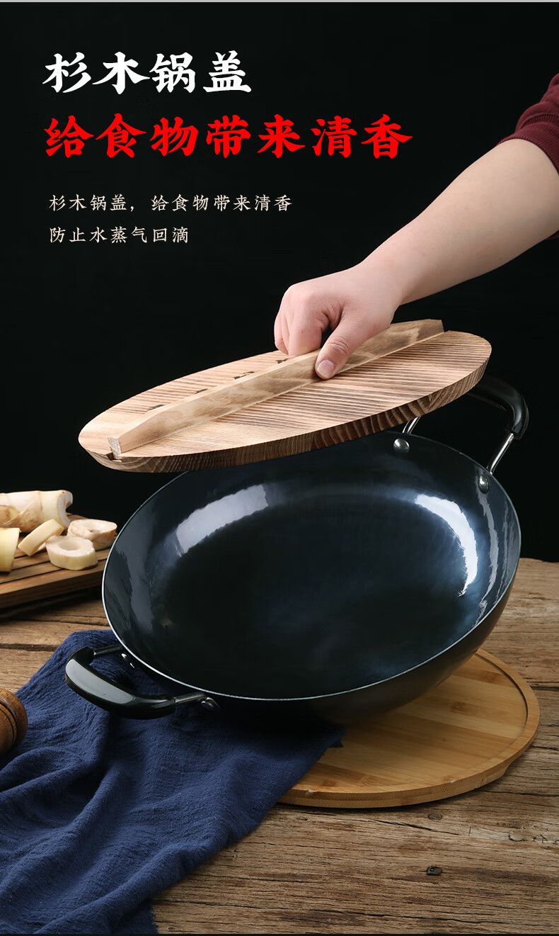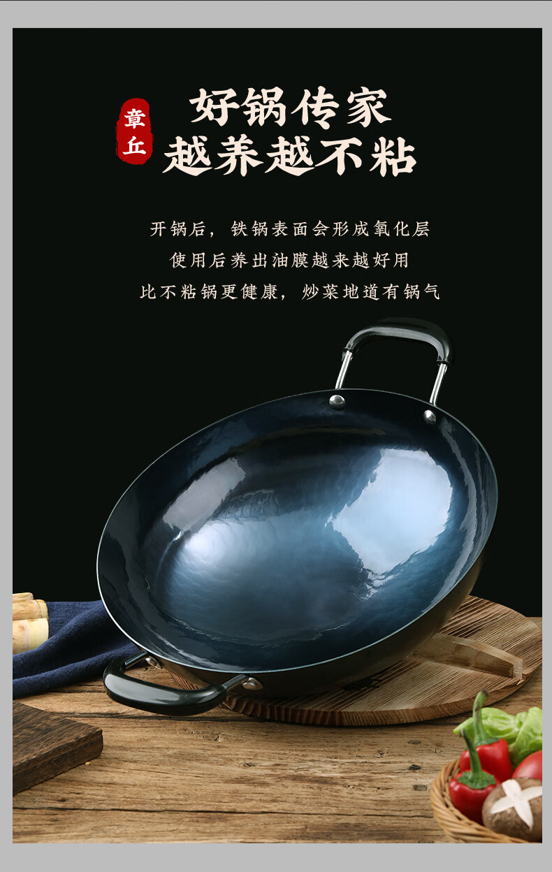 谭铁匠正宗山东章丘老式手工双耳大铁锅不易粘家用炒菜锅熟铁炒锅无涂层 双耳鱼鳞铁锅【已开锅】2-4人适用 32cm