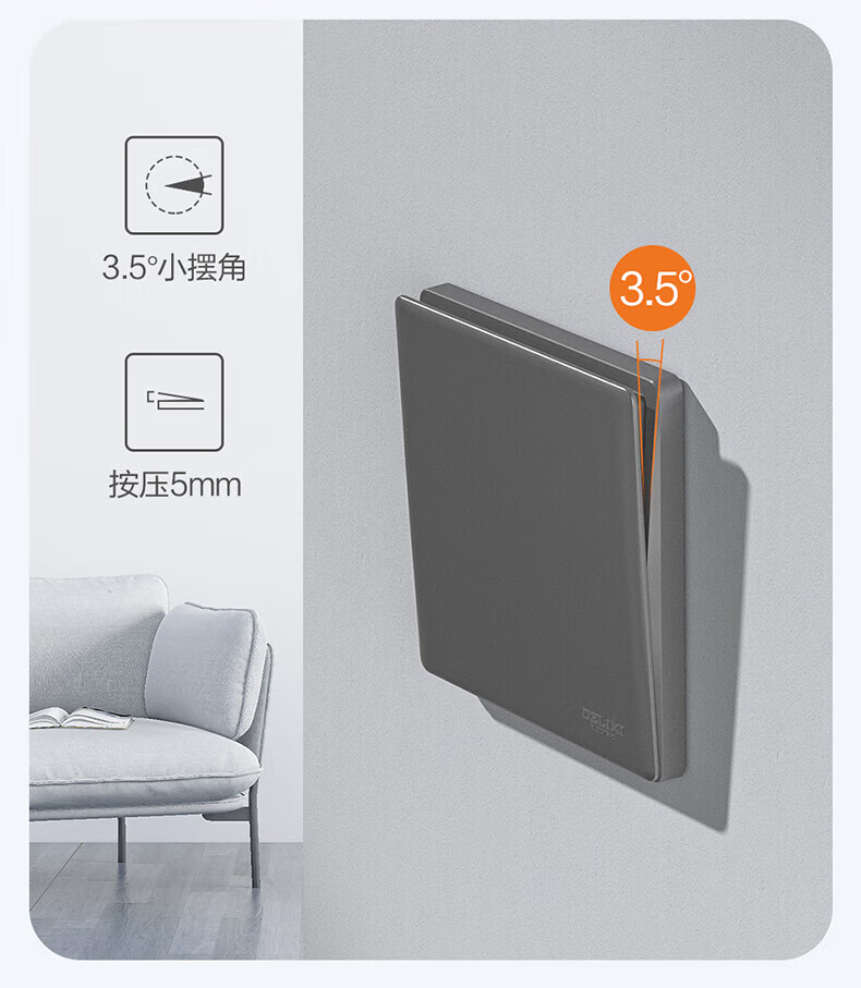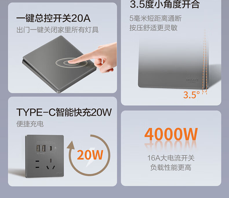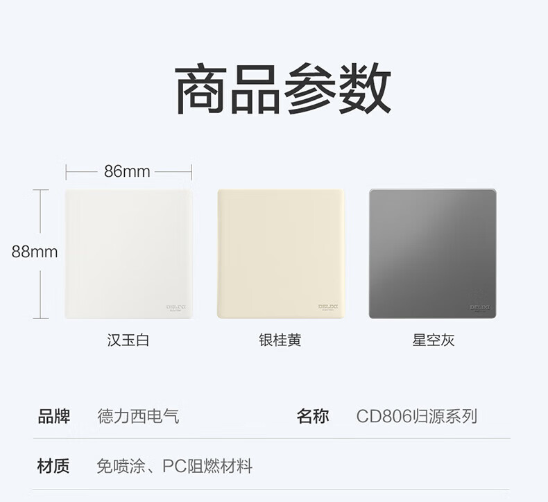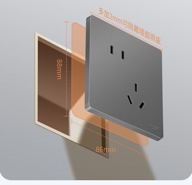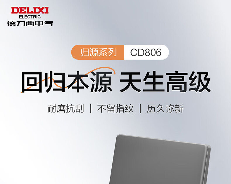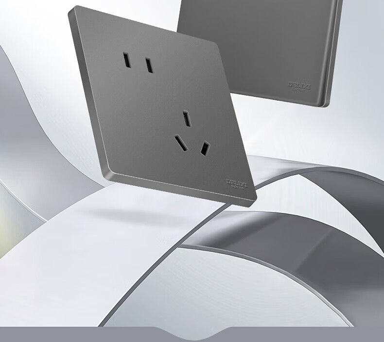 德力西(DELIXI)开关插座面板 哑光磨砂 86型墙壁电源插座 CD806星空灰 无框大板 三孔插座16A