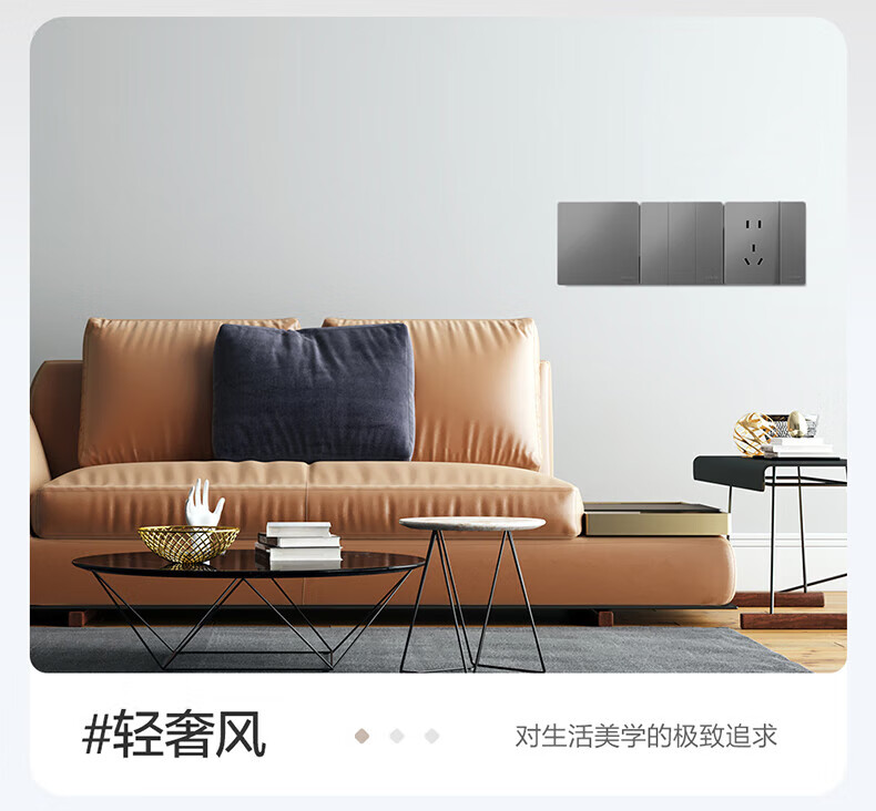 ABB开关插座面板 德典系列皓月灰 磨砂哑光奶油风 无边框 86型电源 斜五孔插座