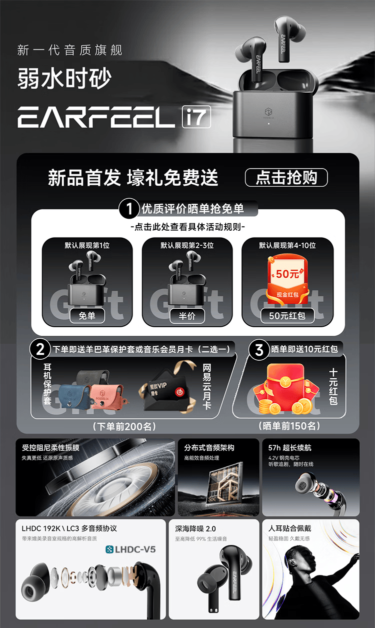 弱水时砂【重磅新品】琉璃Ultra无线蓝牙耳机琉璃X升级款入耳运动耳机抗风噪主动降噪HiFi音质超长续航学生 星云灰|深海级降噪+旗舰HiFi音质
