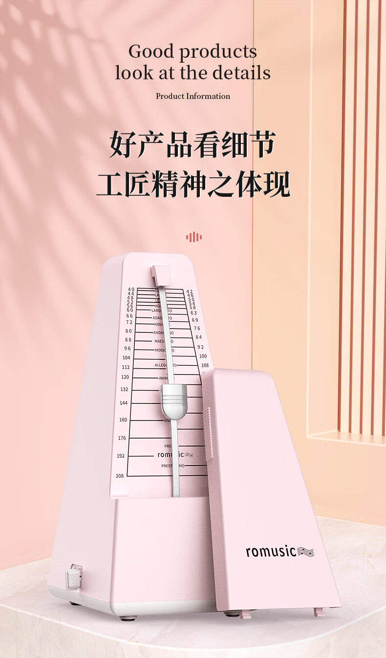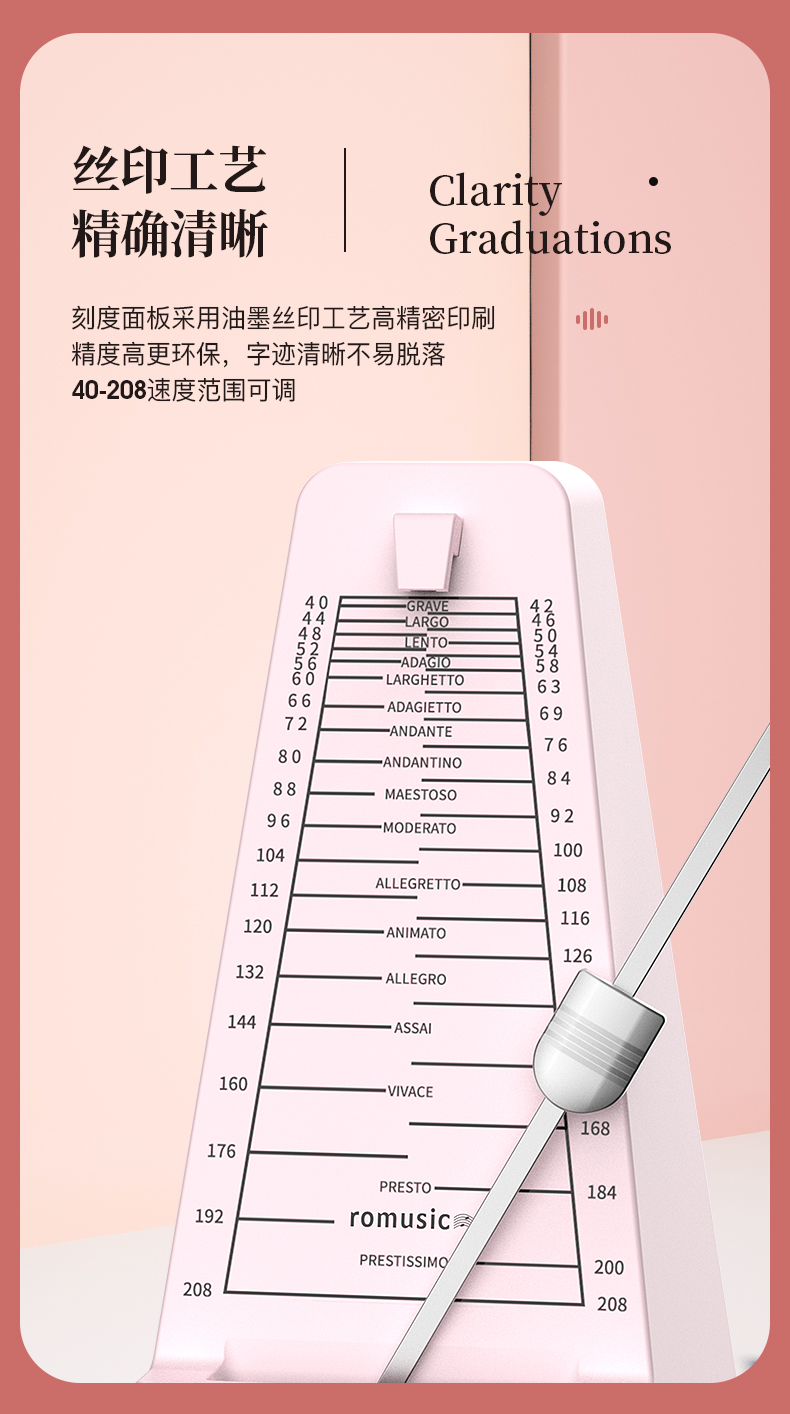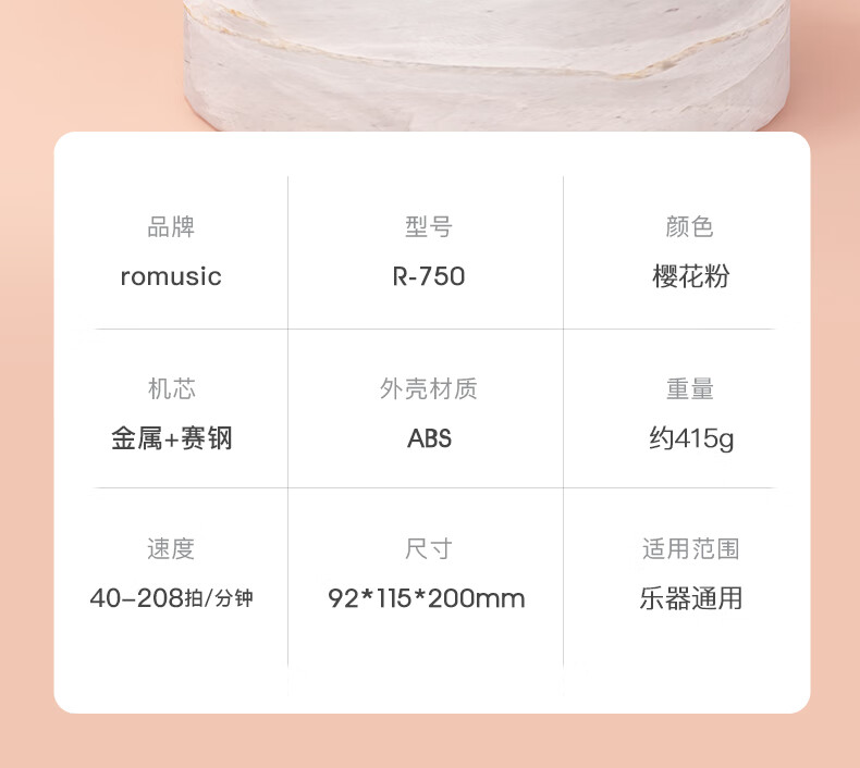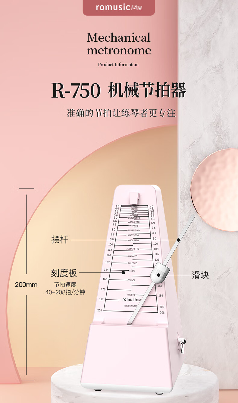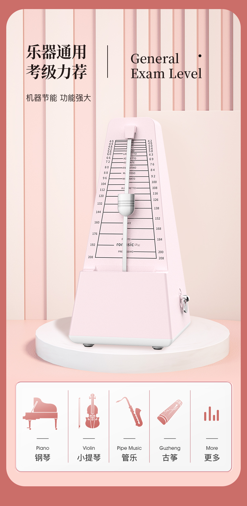 romusic机械节拍器 钢琴小提琴吉他古筝调音器通用节奏节拍器 R-750粉色