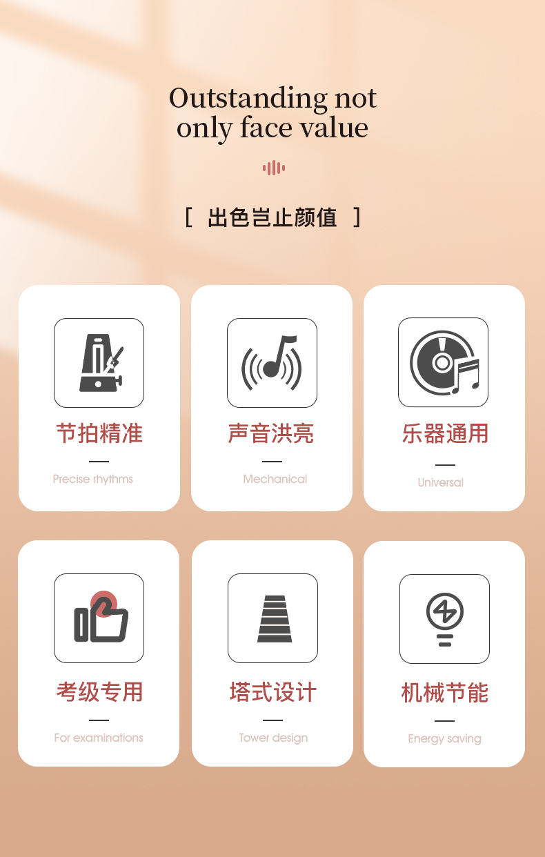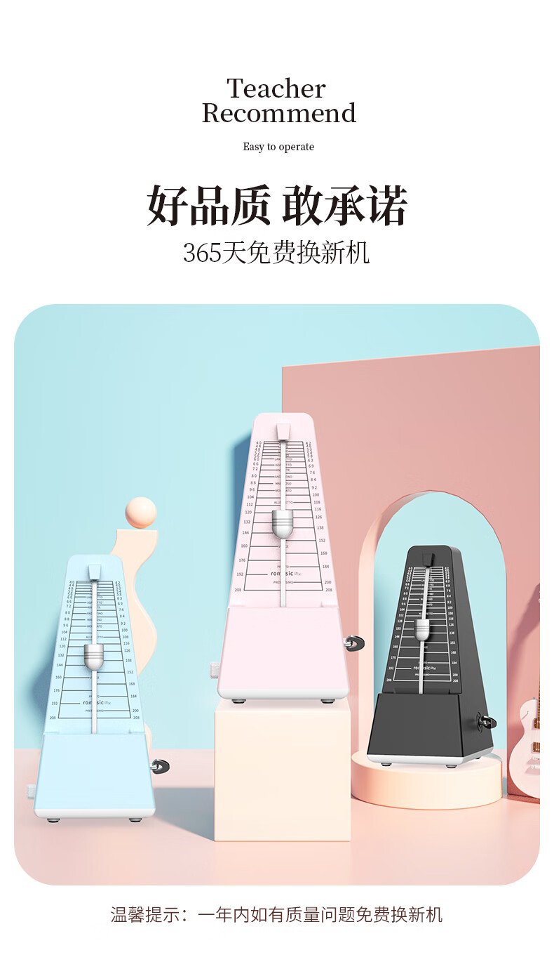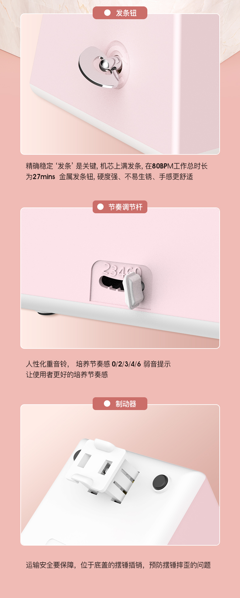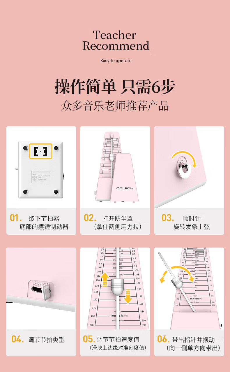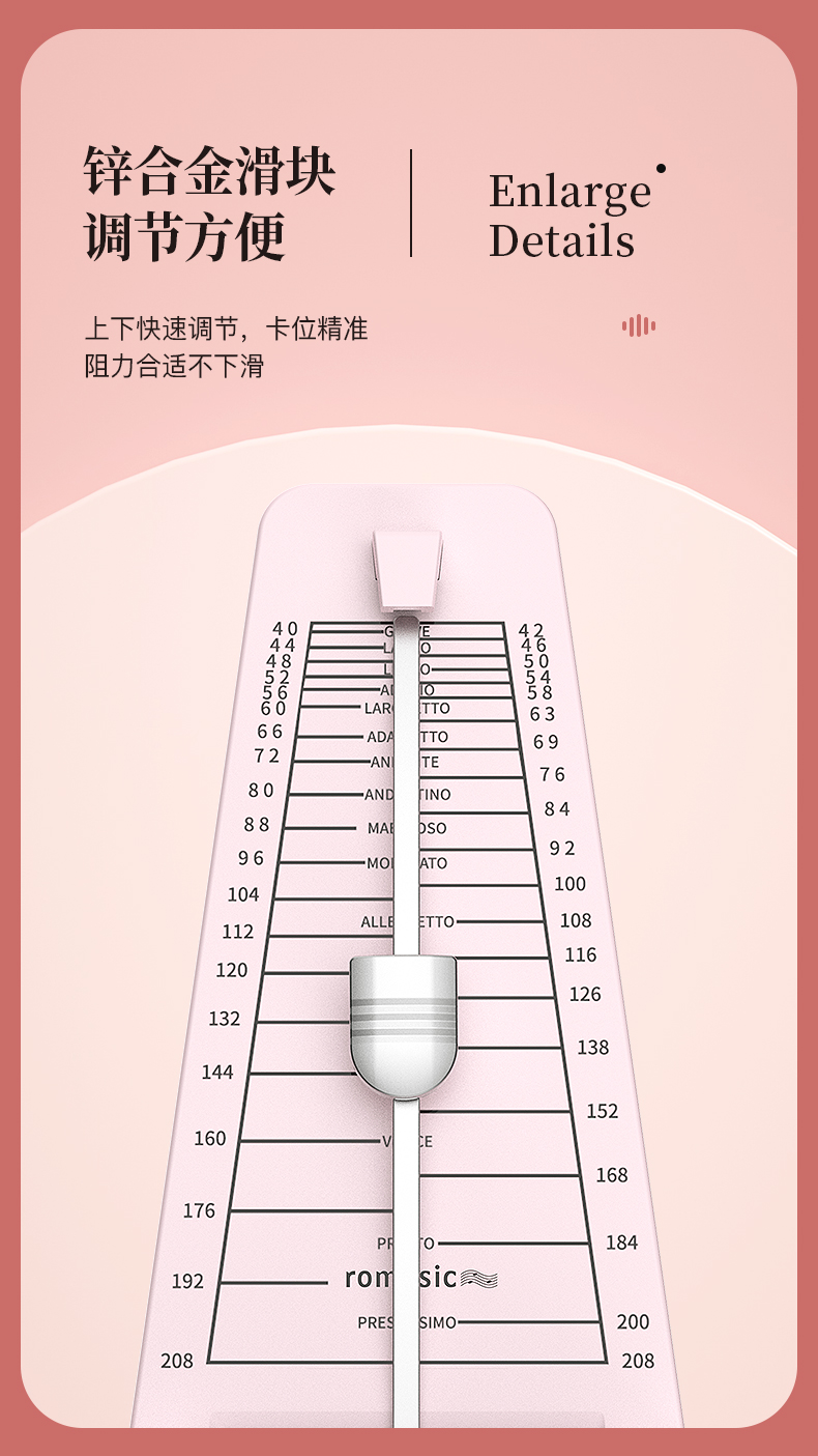 romusic机械节拍器 钢琴小提琴吉他古筝调音器通用节奏节拍器 R-750粉色