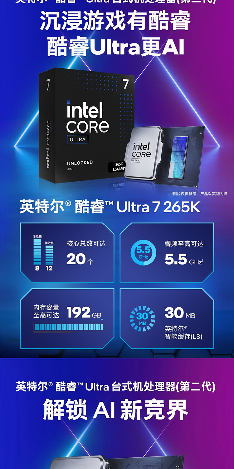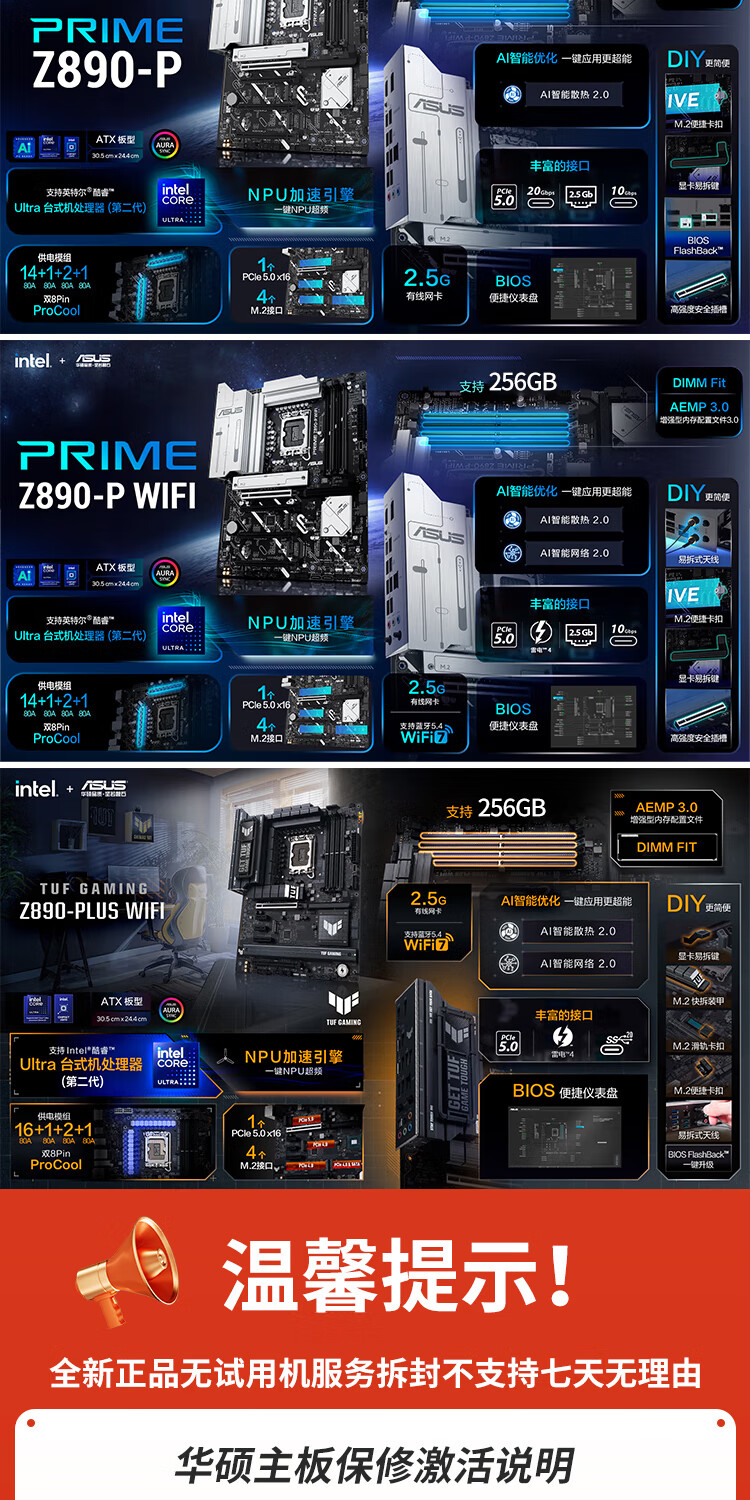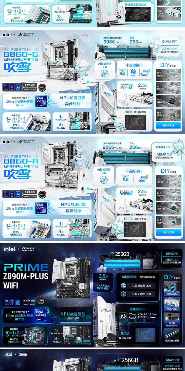 华硕主板搭 Intel Ultra 7 265K板u套装 Ultra 5 245K/9 285K Z890/B860主板CPU套装 ROG Z890-A GAMING WIFI S Intel盒装 Ultra 7 265K