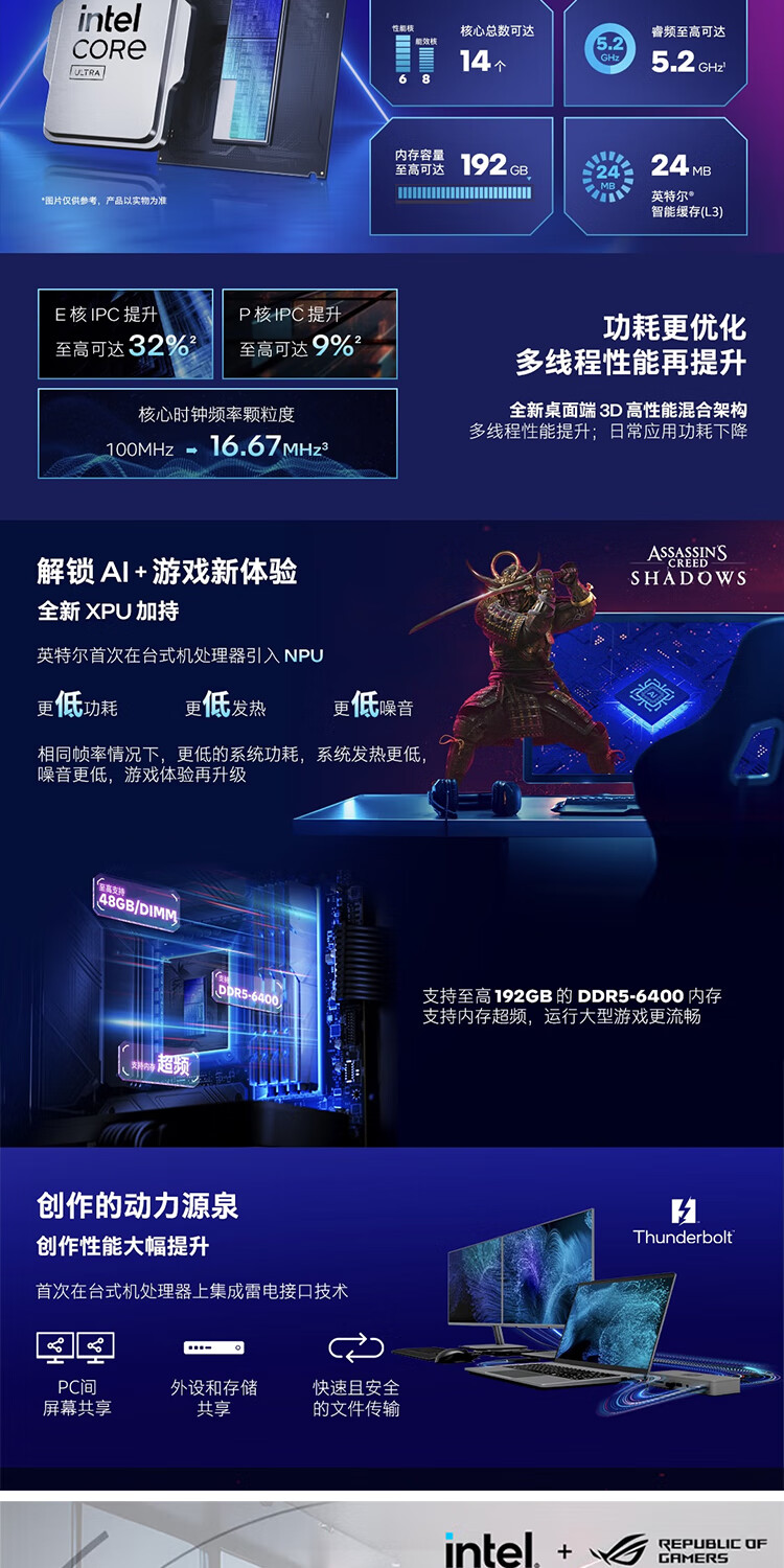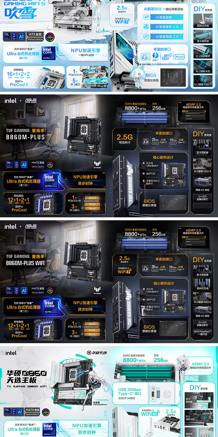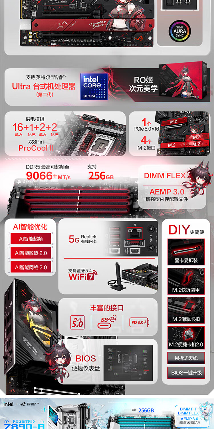 华硕主板搭 Intel Ultra 7 265K板u套装 Ultra 5 245K/9 285K Z890/B860主板CPU套装 ROG Z890-A GAMING WIFI S Intel盒装 Ultra 7 265K