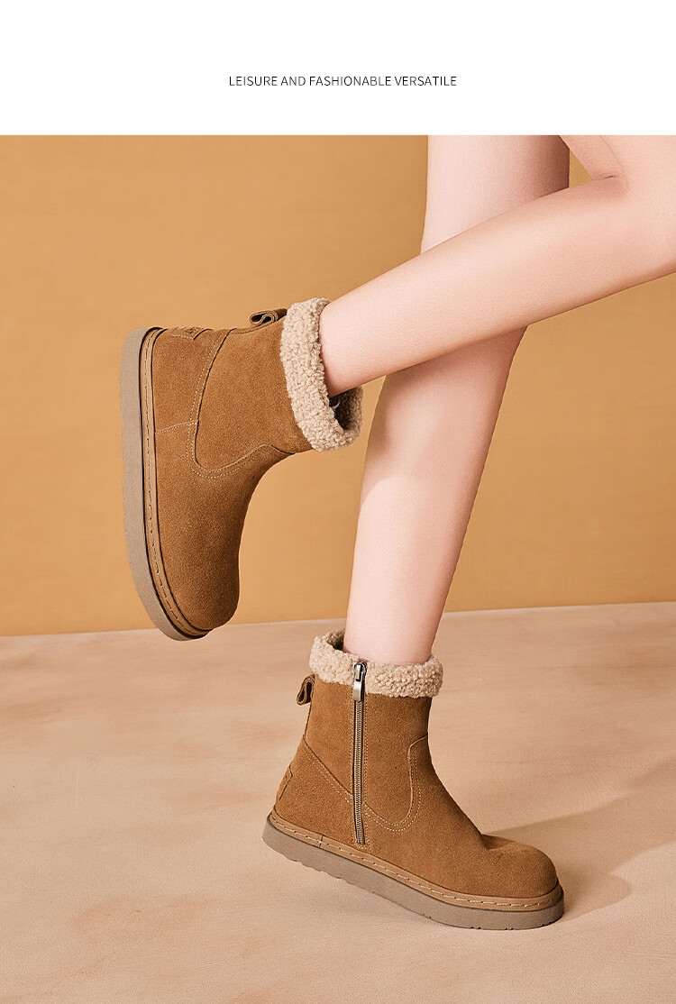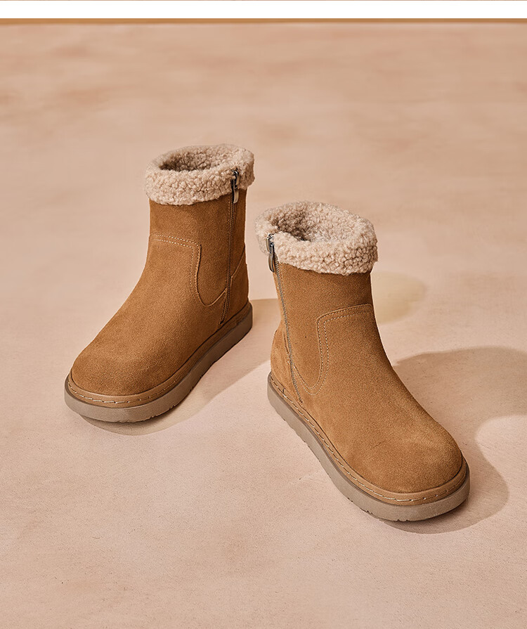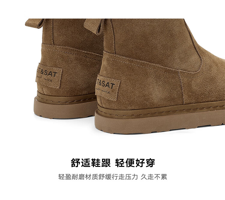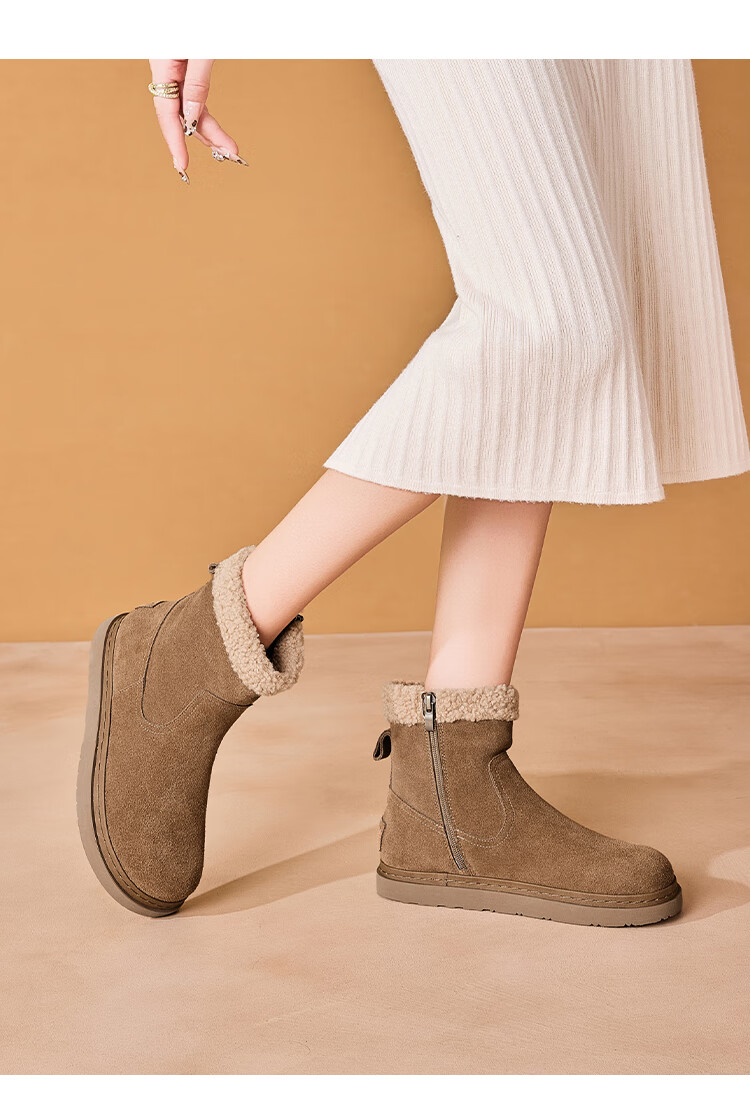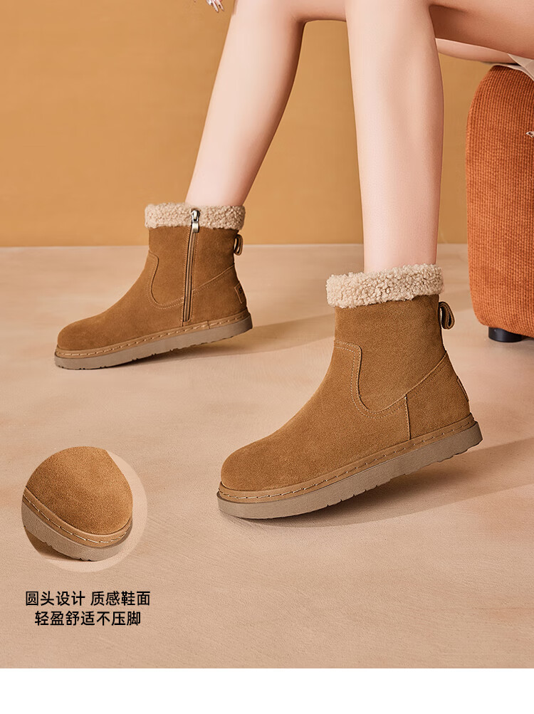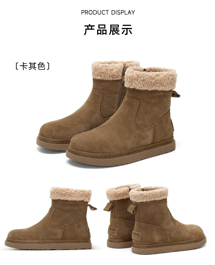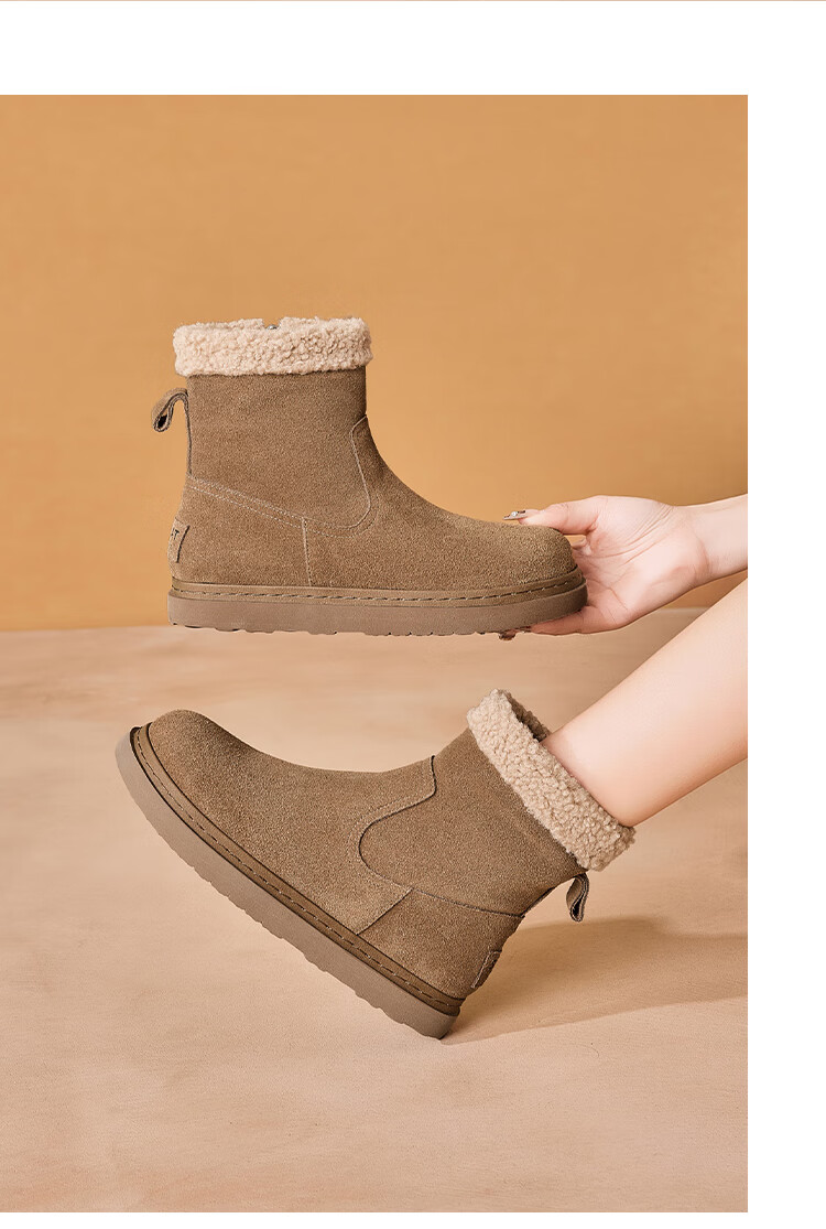 星期六厚底加绒雪地靴女2025年冬季新款加厚毛保暖绒里棉鞋户外保暖短靴 卡其色 【厚绒保暖】 38