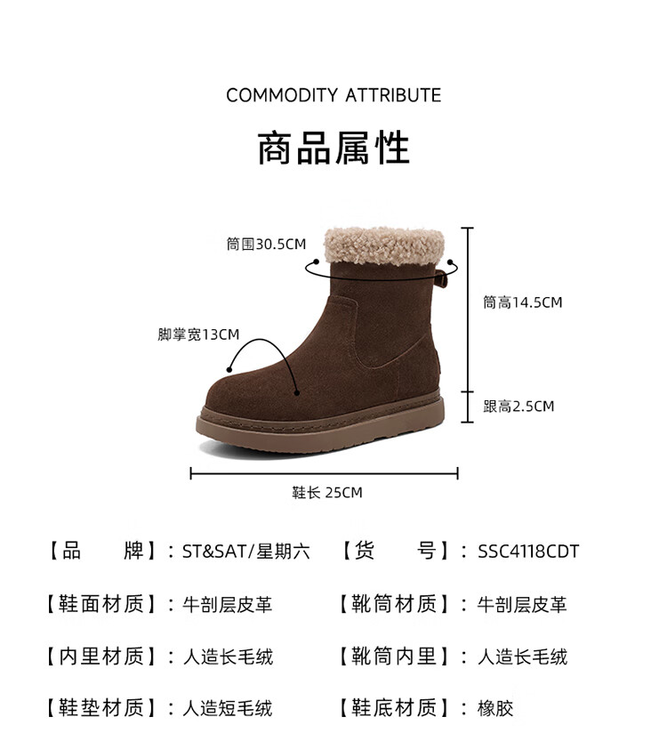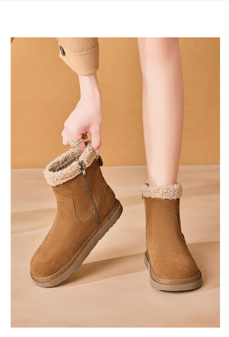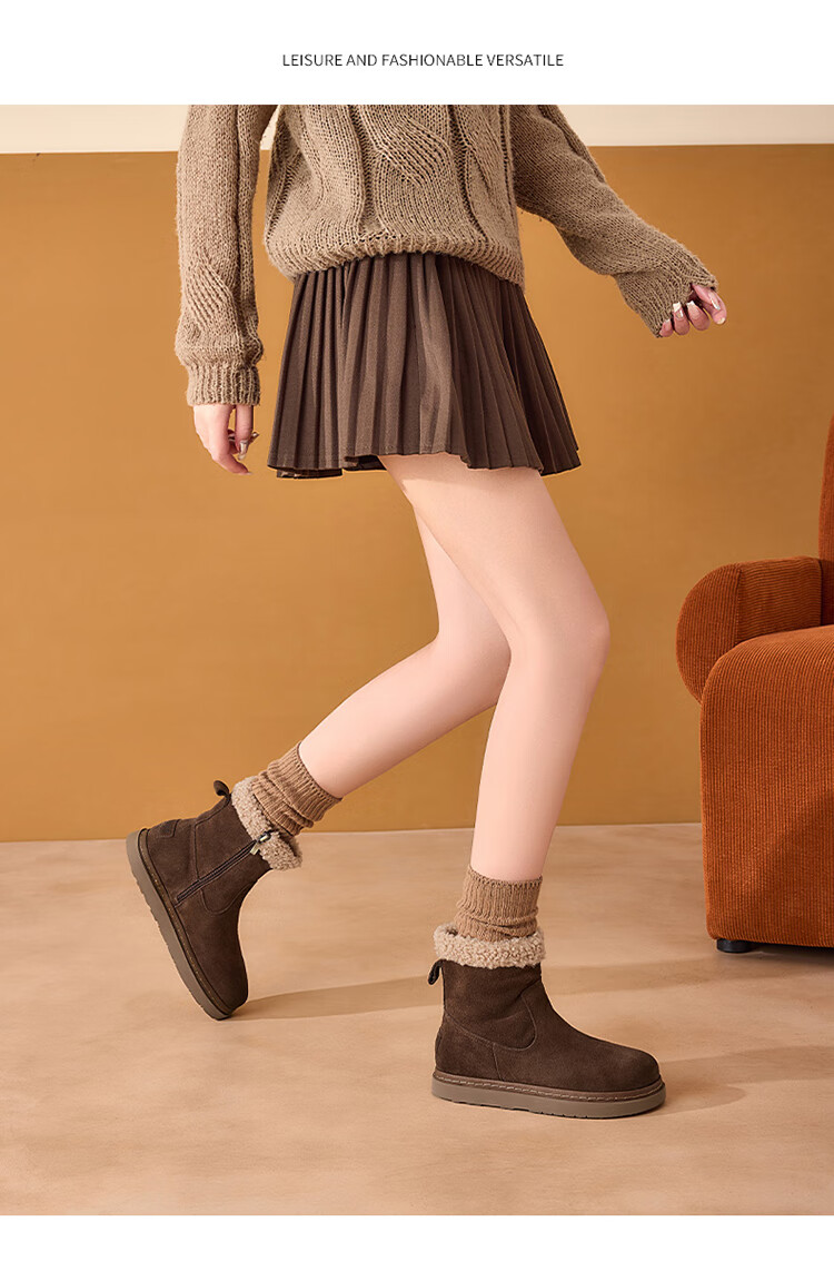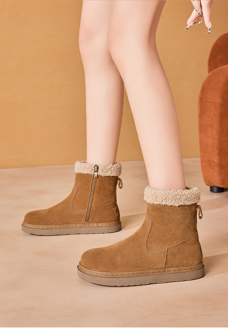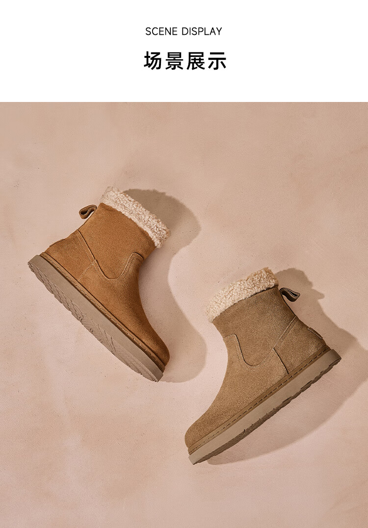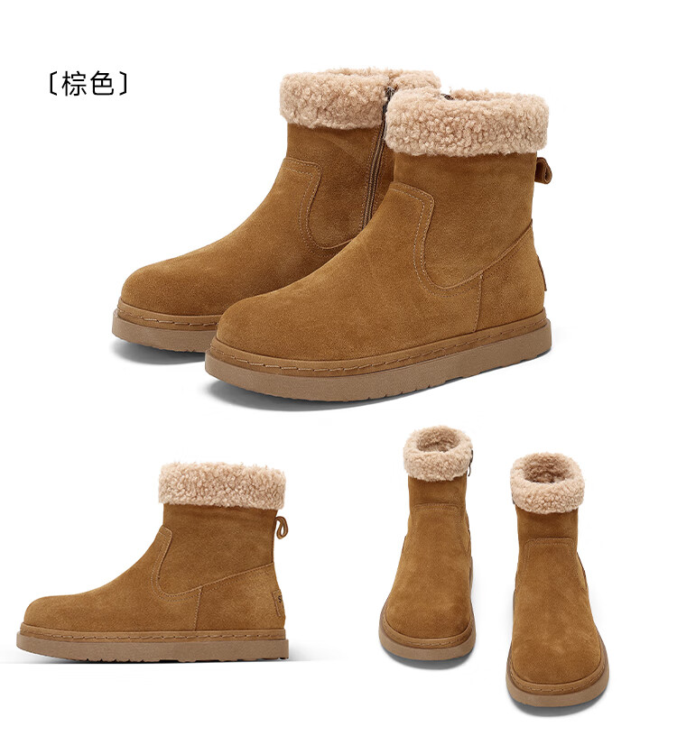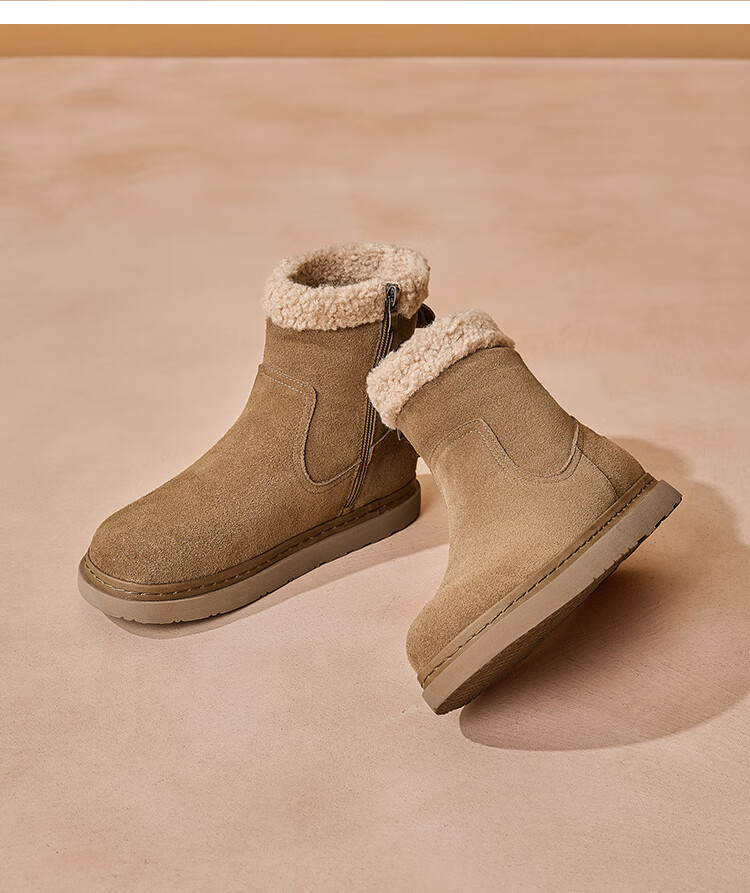 星期六厚底加绒雪地靴女2025年冬季新款加厚毛保暖绒里棉鞋户外保暖短靴 卡其色 【厚绒保暖】 38