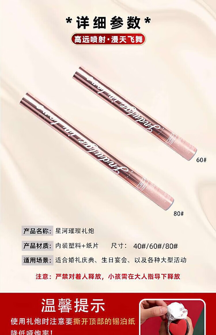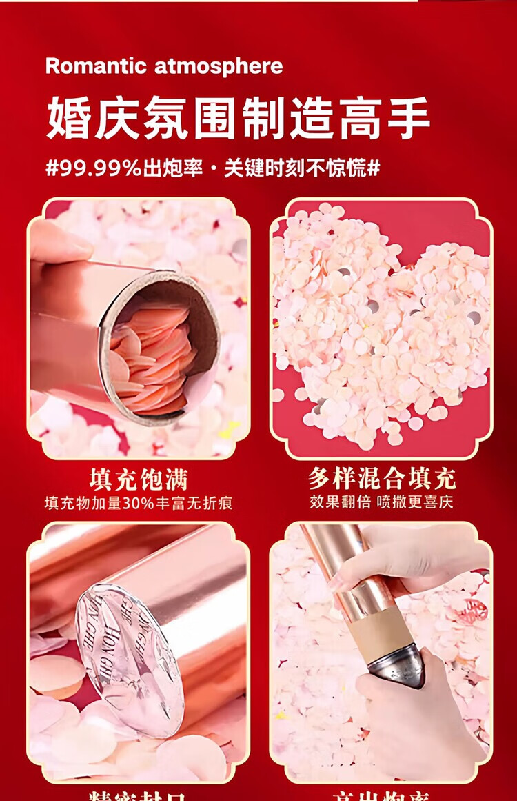 OYKTN璀璨星河礼炮礼花结婚庆典生日派对聚会开业礼花筒花瓣手持喷花筒 璀璨星河浪漫粉60#粉爱心 4根